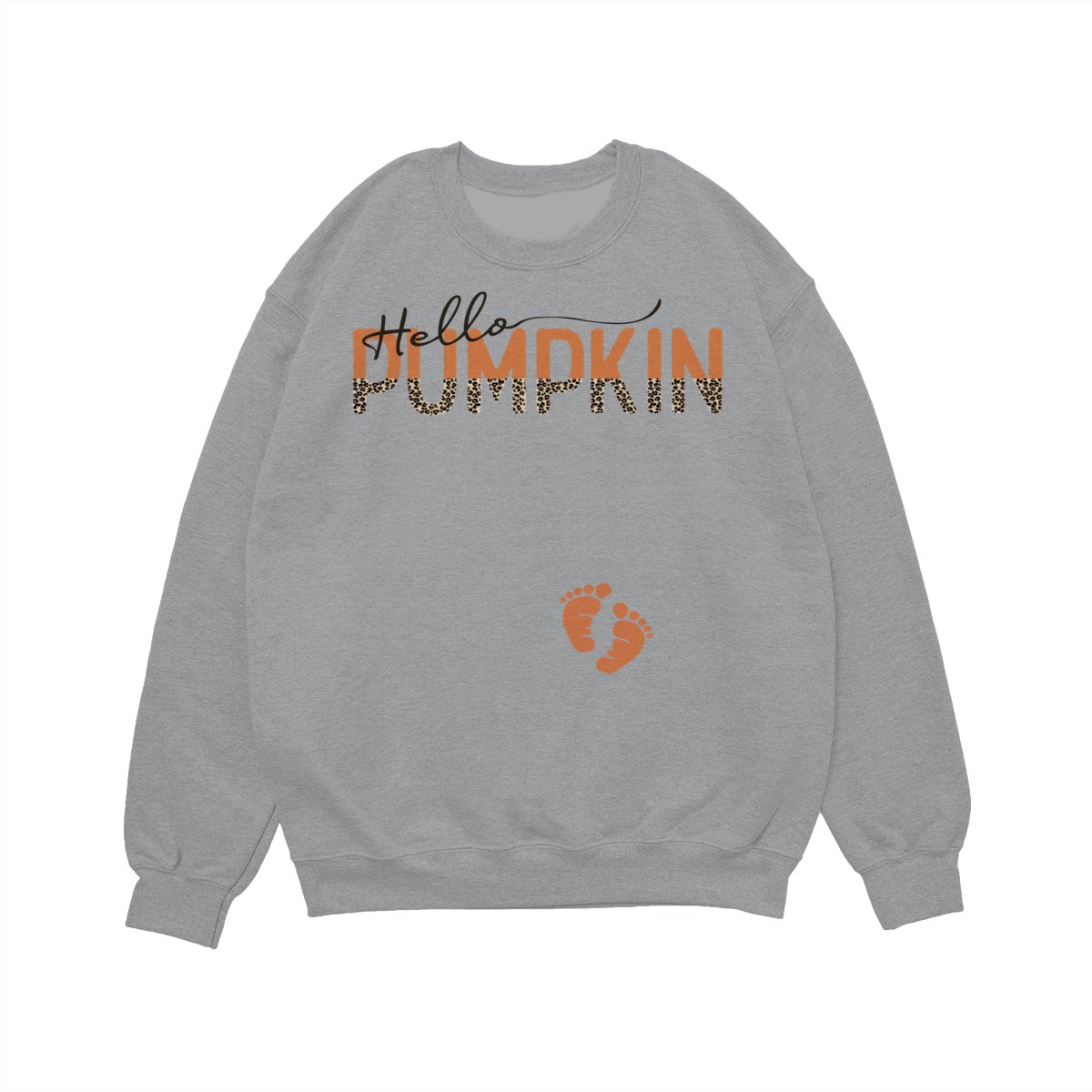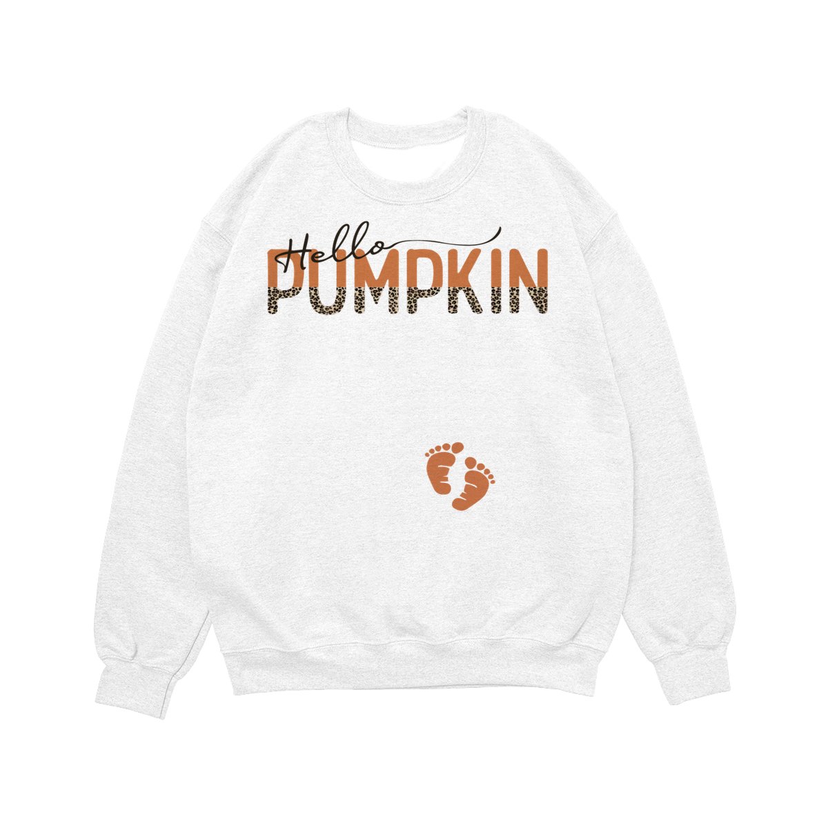 Hello Pumpkin Pregnancy TShirt – Hello Pumpkin Pregnancy Announcement Sweatshirt – Fall Pregnancy Sweaters – Fall Pregnancy Shirt, Pullover Light