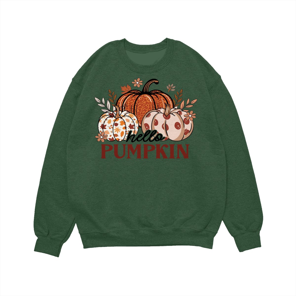 Hello Pumpkin Shirt – Sweatshirt – Hoodie, Fall Vibes T-Shirt, Boho Floral Fall Tee, Hey There Pumpkin, Autumn Pumpkin Gifts, Retro Fall, Full Colors