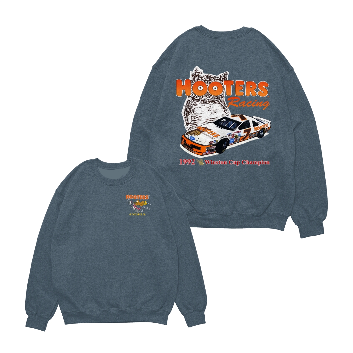 Hooters Racing Shirt – Retro Design Featuring 1992 Winston Cup Champion NASCAR Car and Owl, Unisex Tops, Menswear