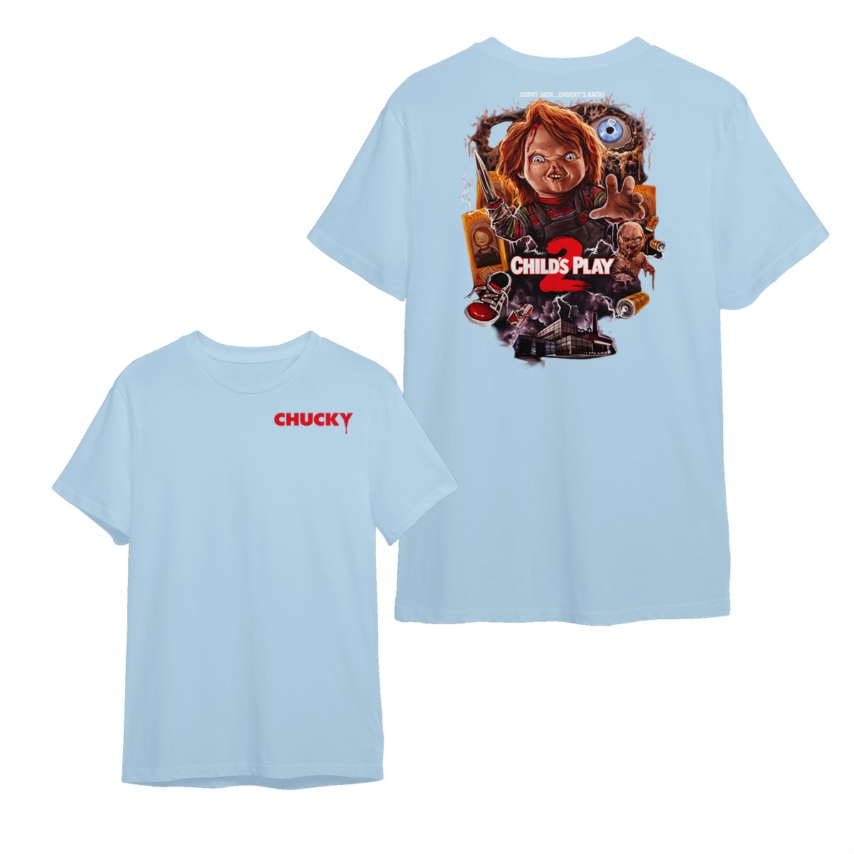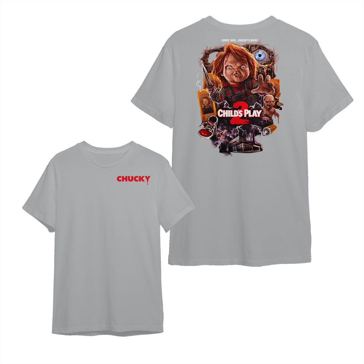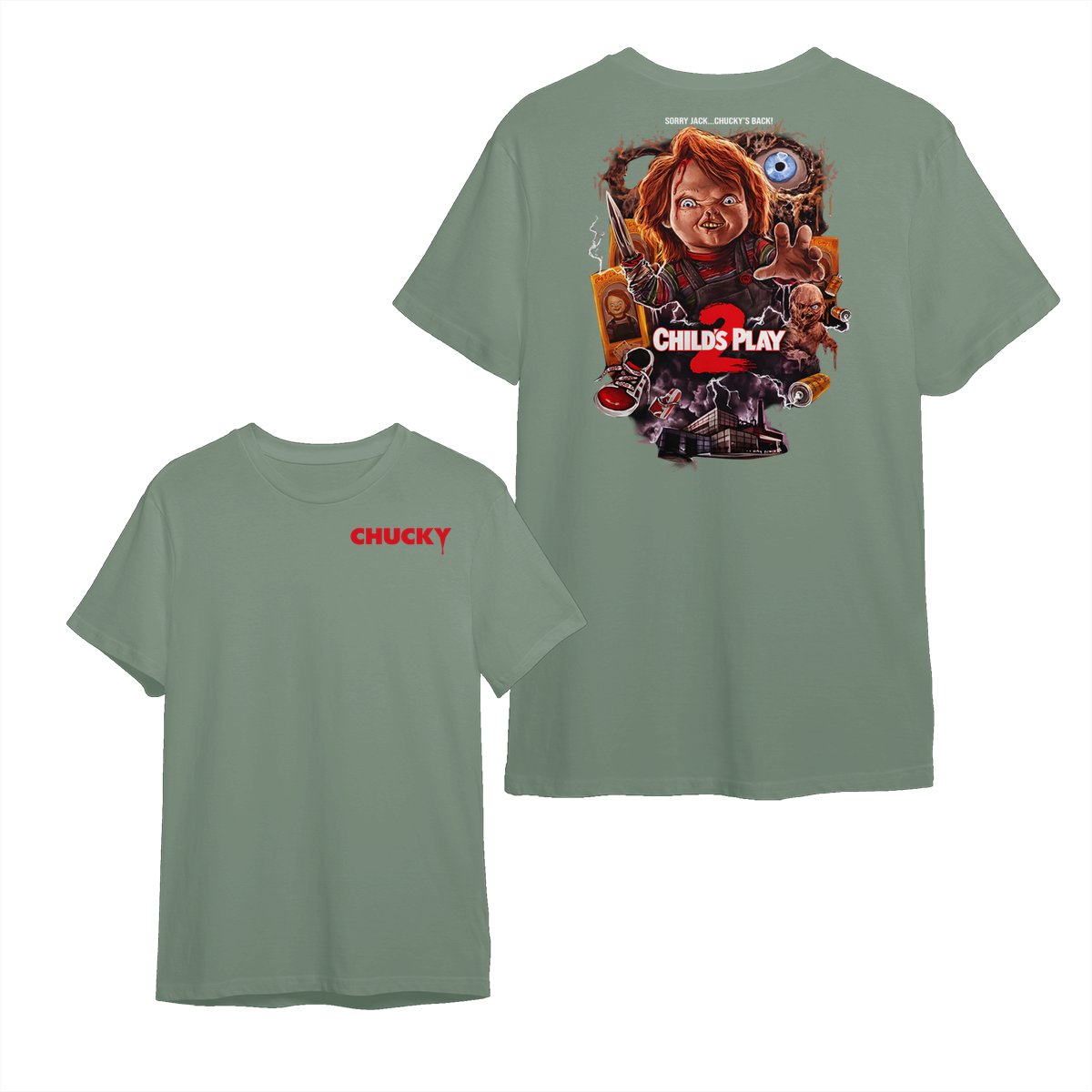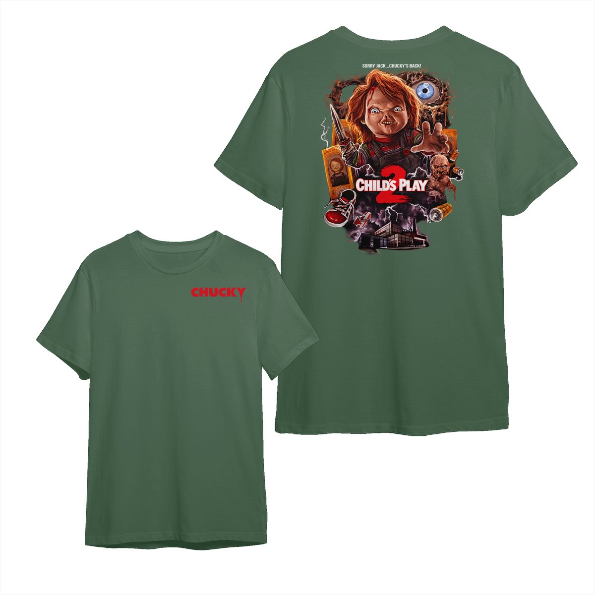 Horror Characters 2 Sided T-Shirt, Chucky Child’s Play2 Apprel, The Killer’s Back Shirt, 100% Cotton Classic, Gift For Him & Her