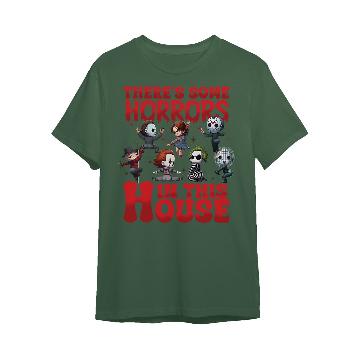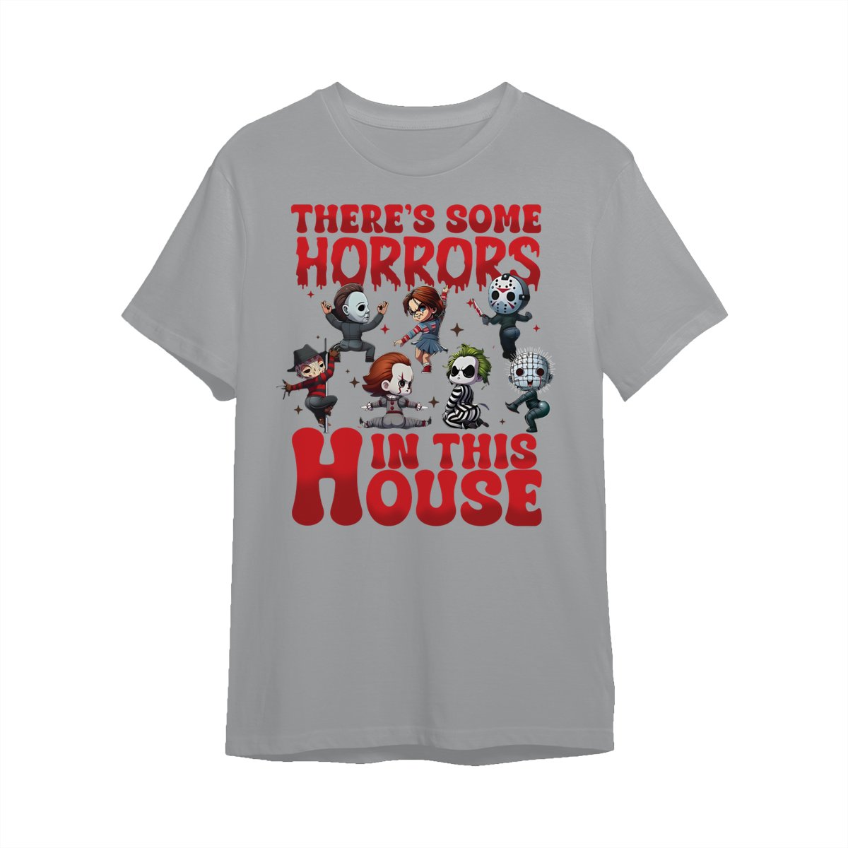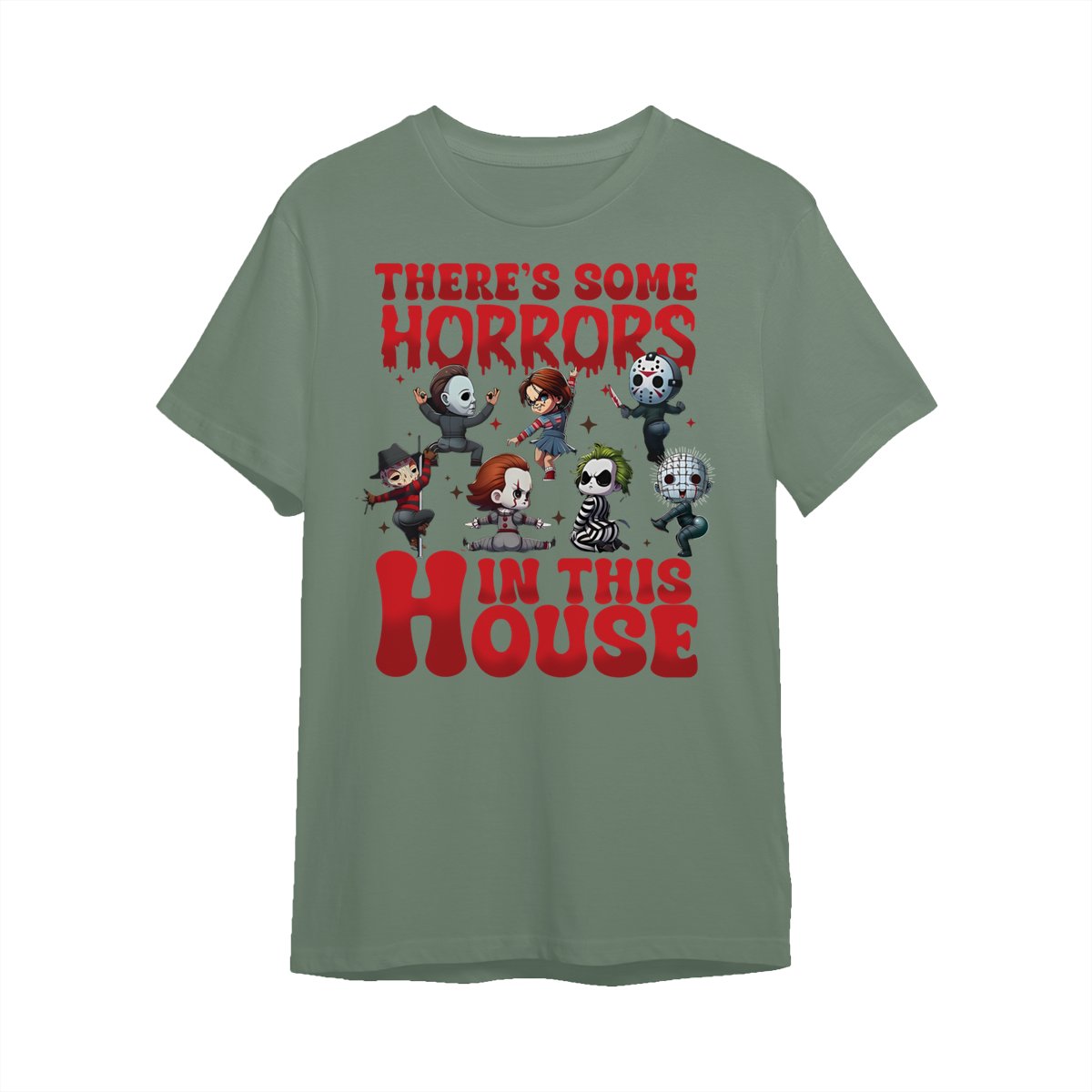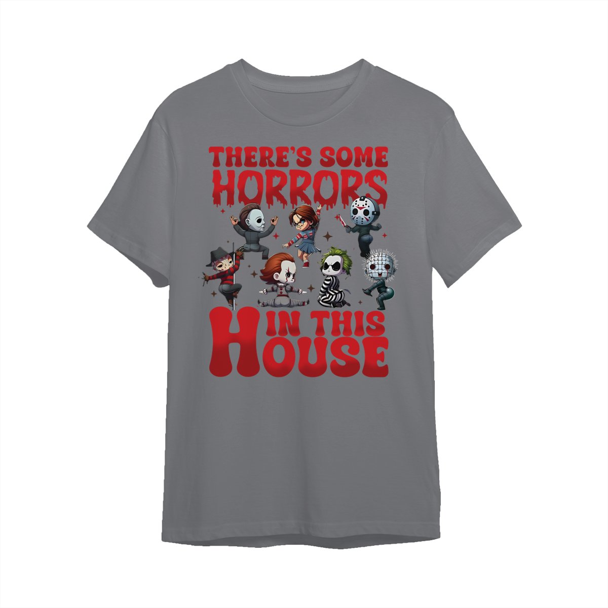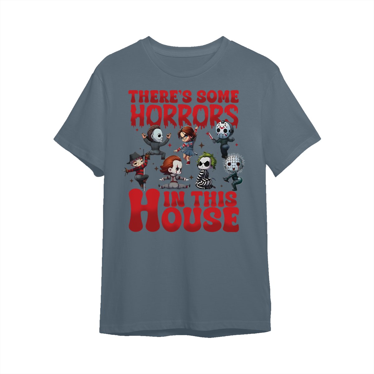Horror Characters In The House Shirt Halloween Sweatshirt Horror Movies Top Womenswear Comfort Fit Cotton Gift With Check Collars Cotton Summer T Shirt Graphic Tee