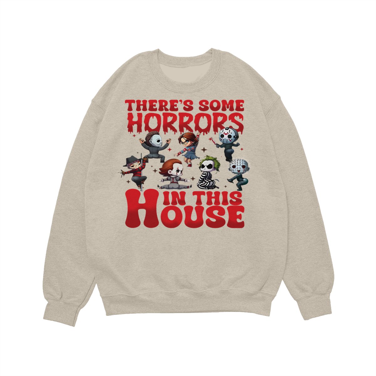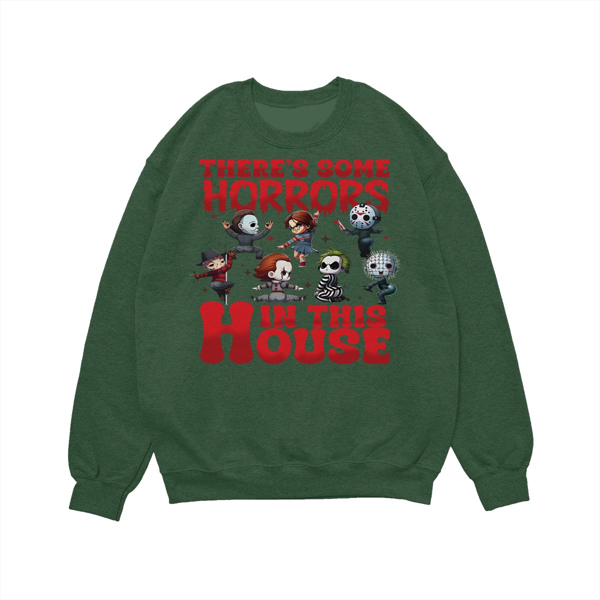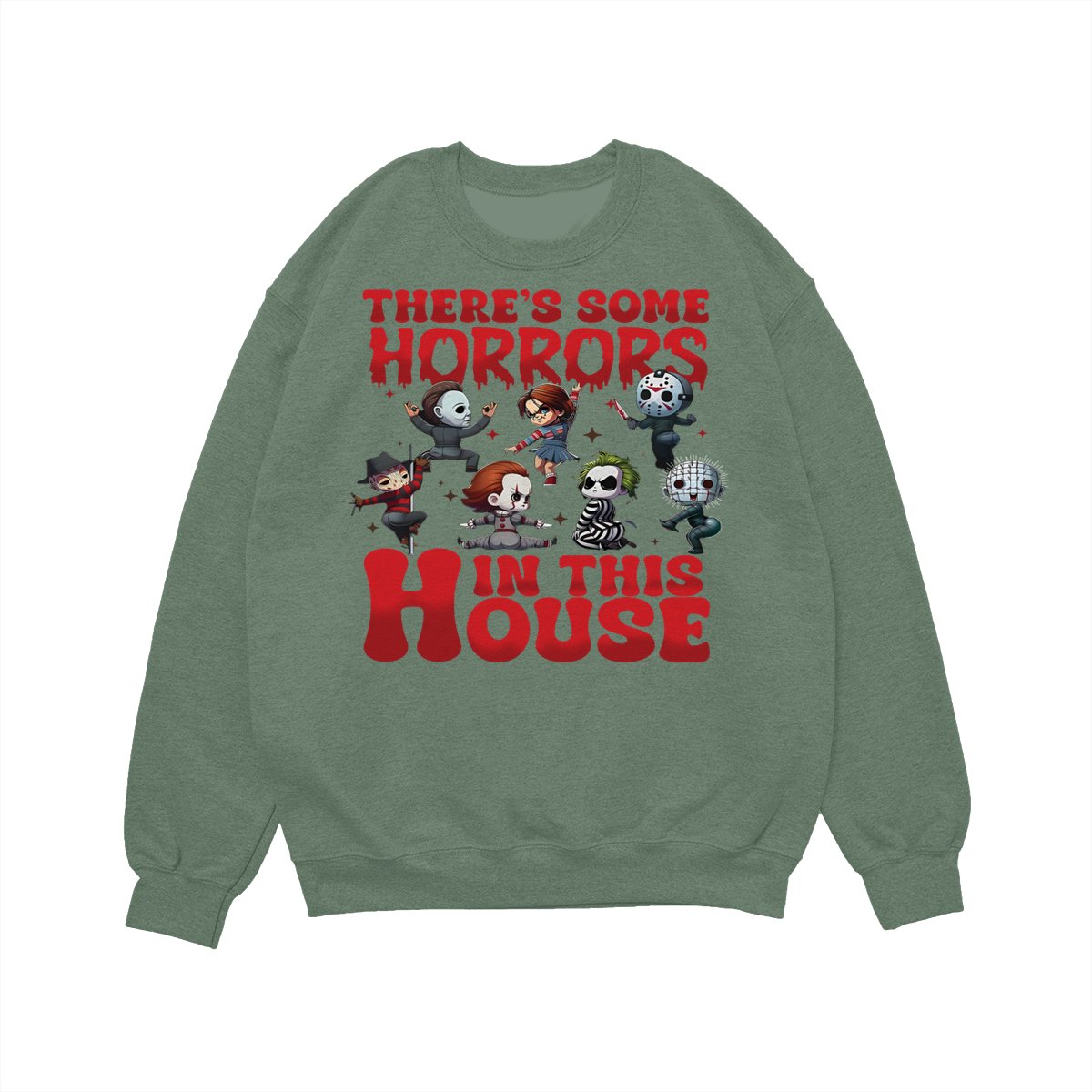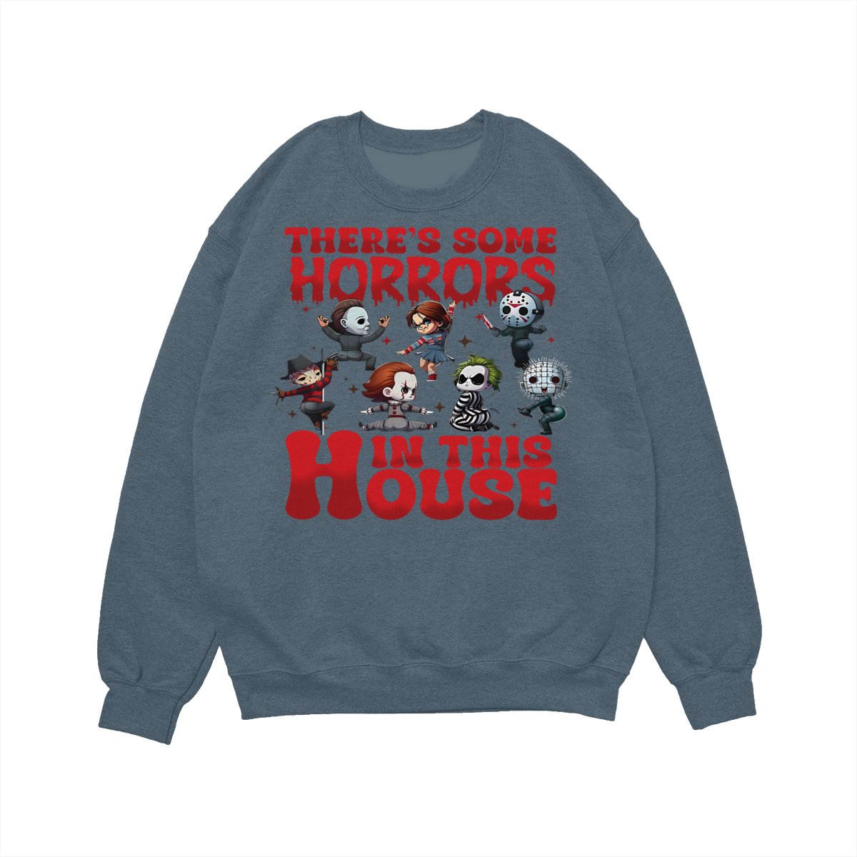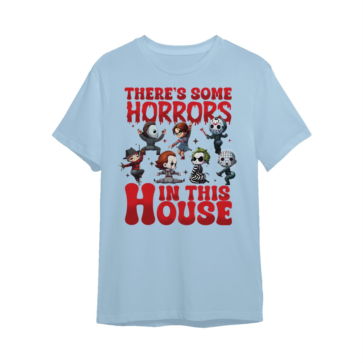 Horror Characters In The House Shirt Halloween Sweatshirt Horror Movies Top Womenswear Comfort Fit Cotton Gift With Check Collars Cotton Summer T Shirt Graphic Tee