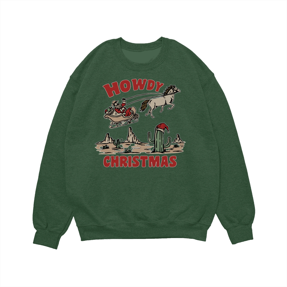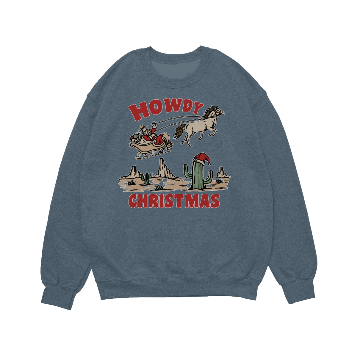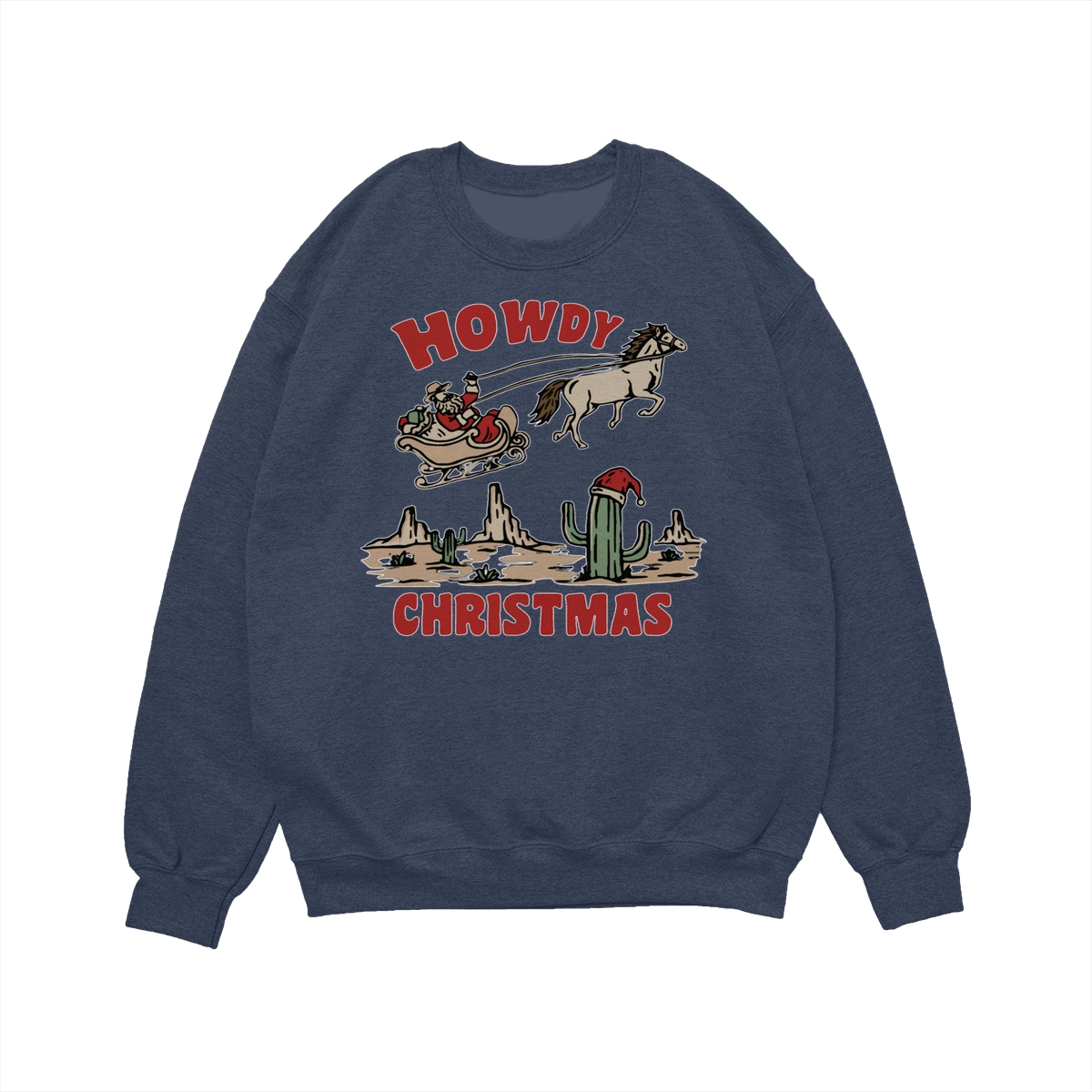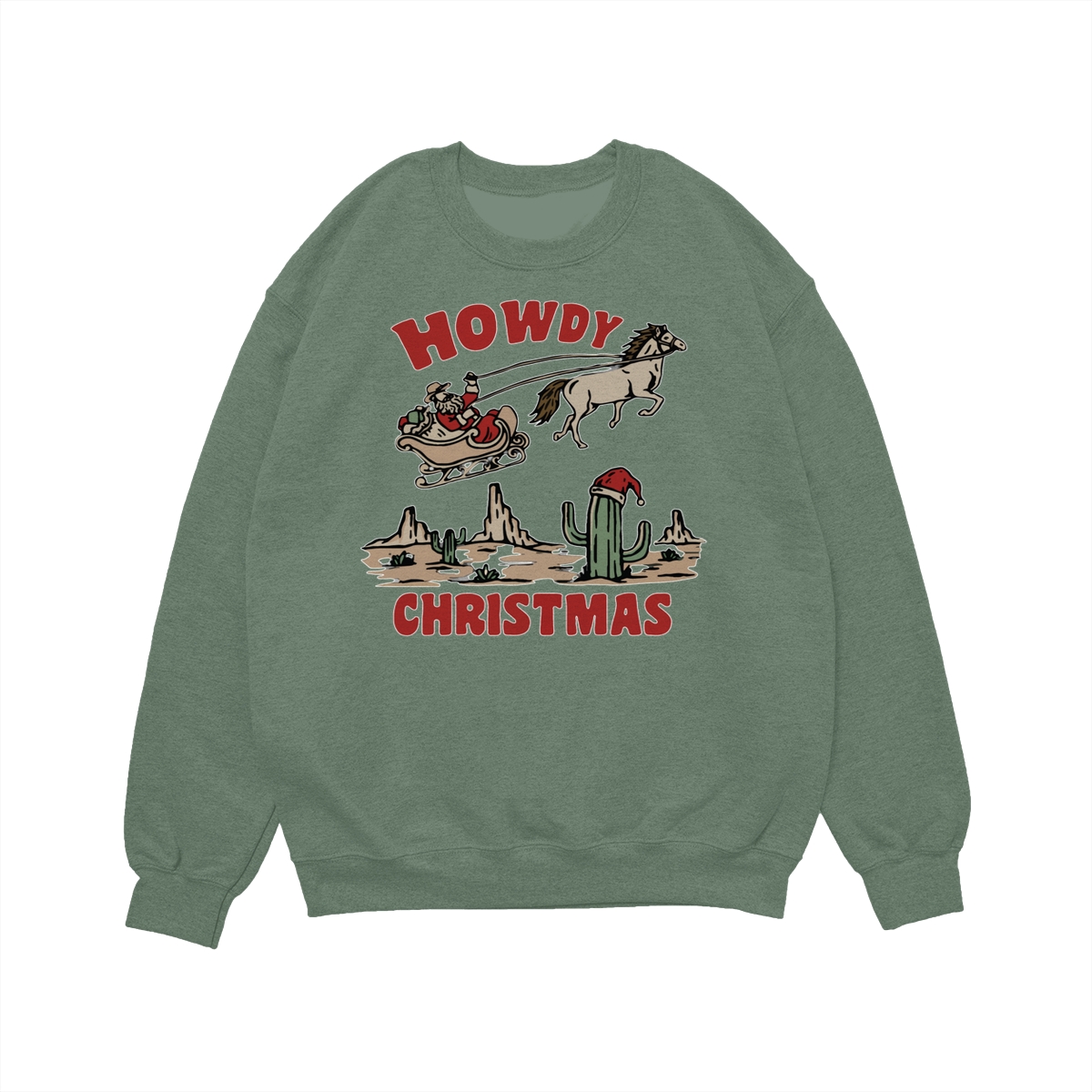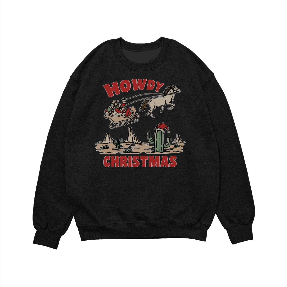 Howdy Christmas Sweatshirt – Cowboy Santa Riding Horse Sleigh in Desert Scene – Western Holiday Pullover & Funny Christmas Gift for Men and Women