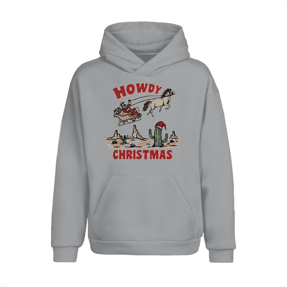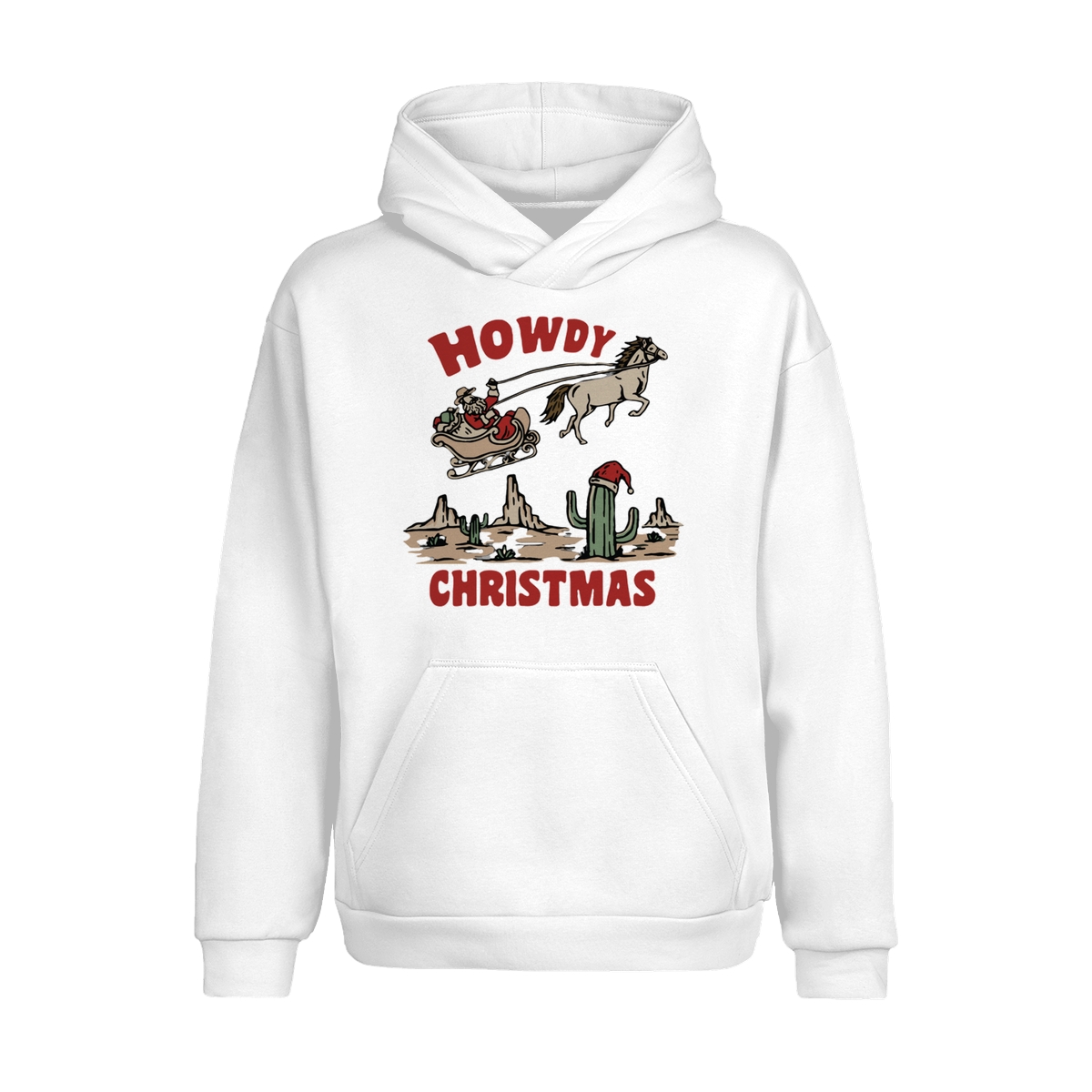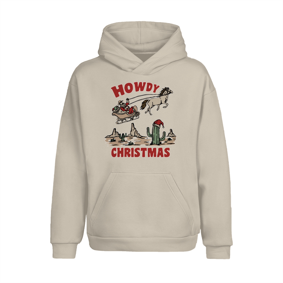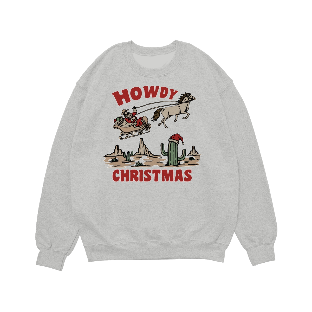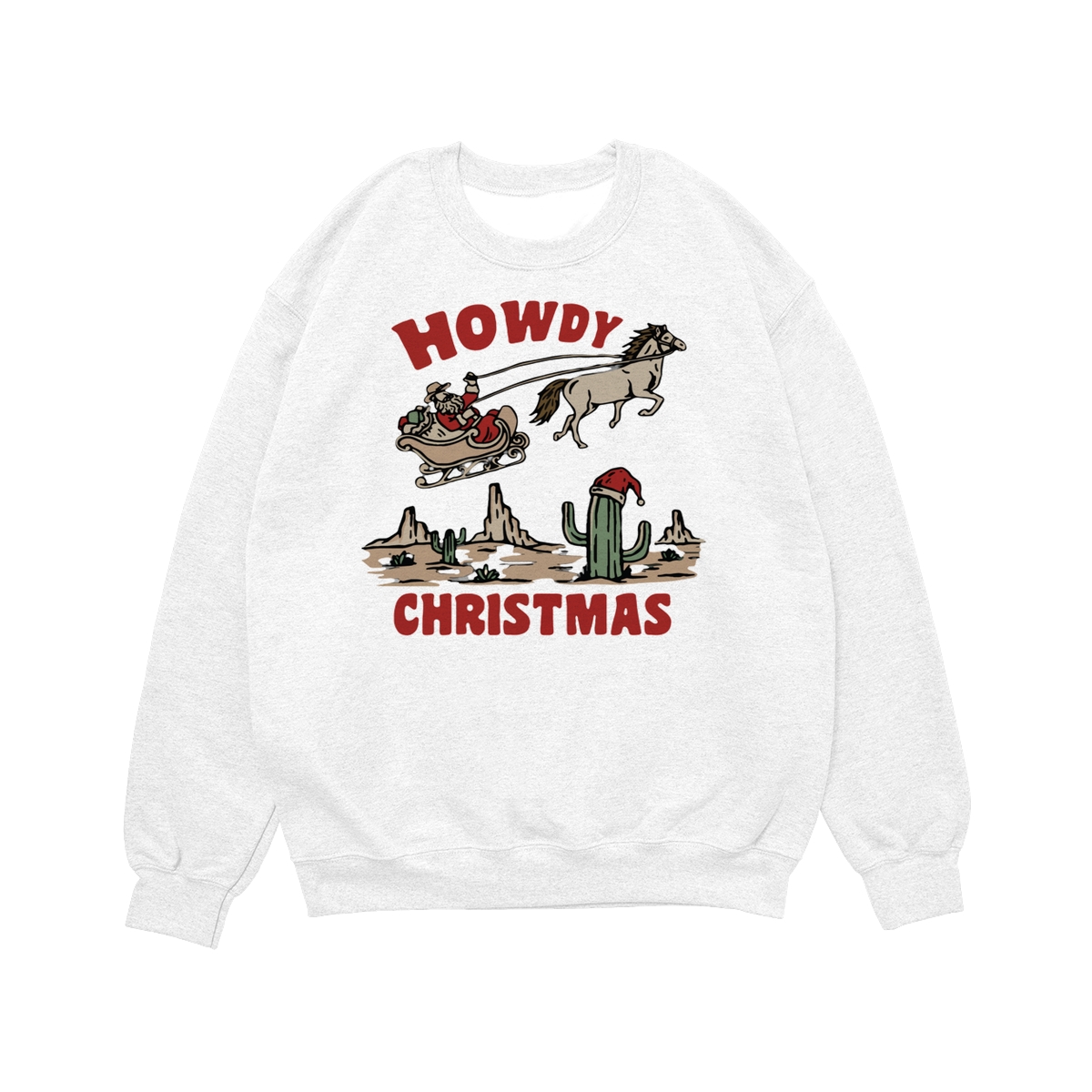 Howdy Christmas Sweatshirt – Cowboy Santa Riding Horse Sleigh in Desert Scene – Western Holiday Pullover & Funny Christmas Gift for Men and Women