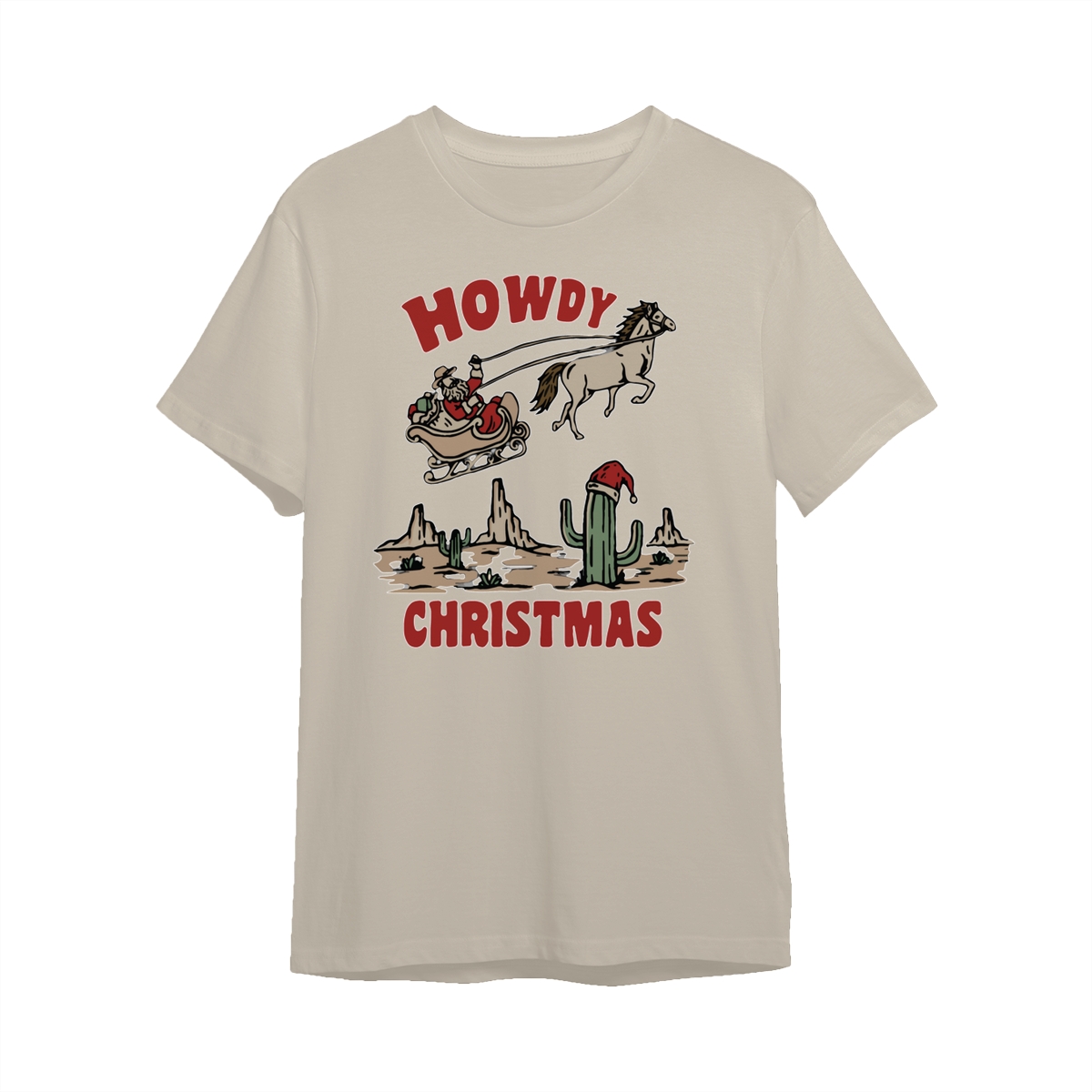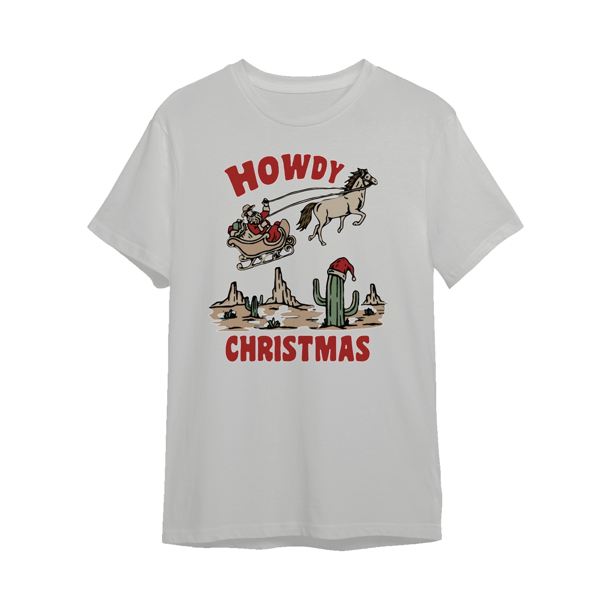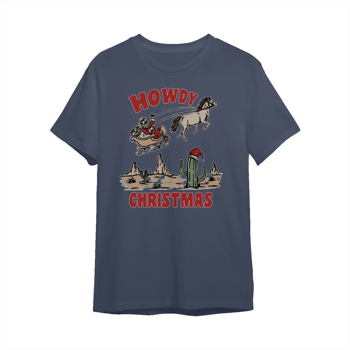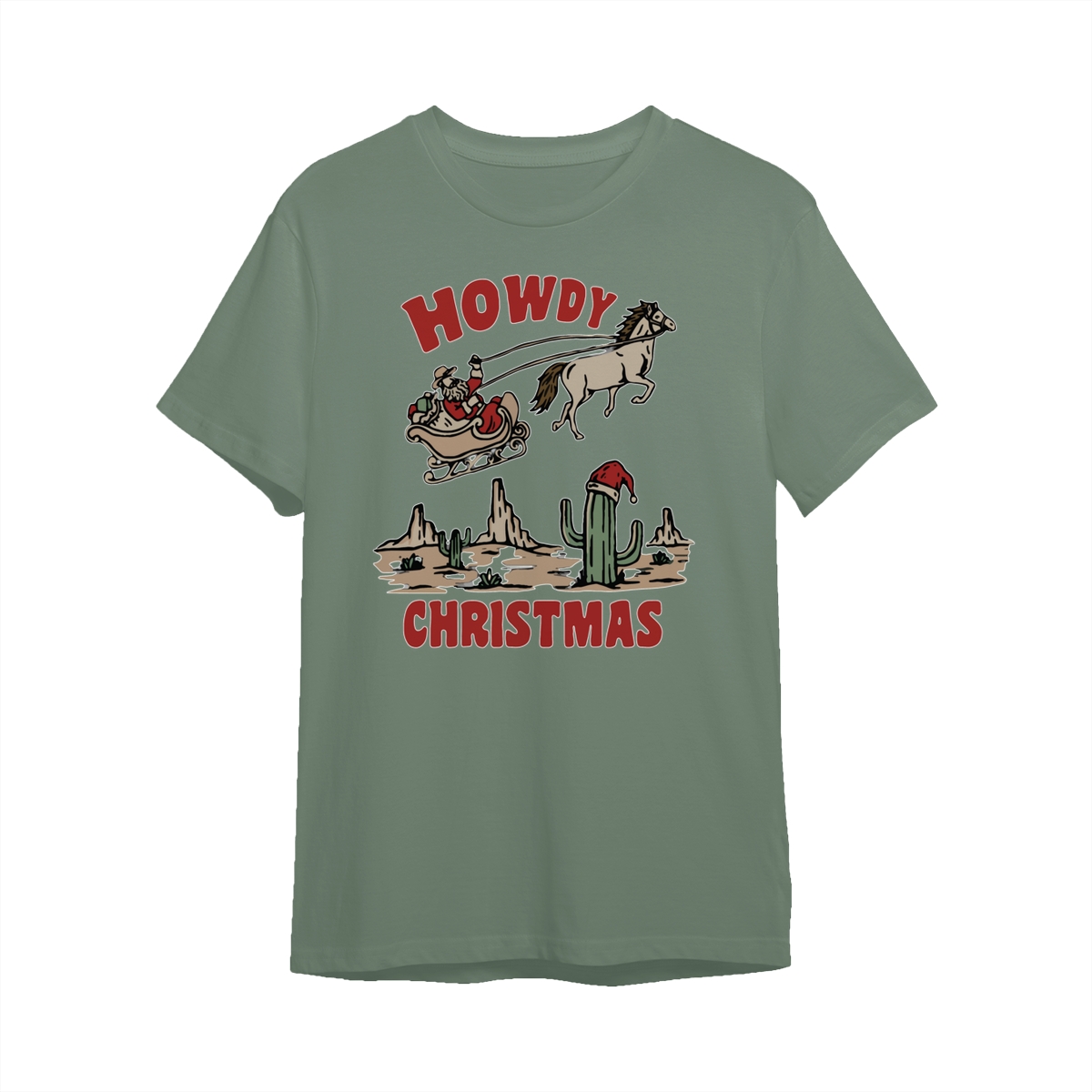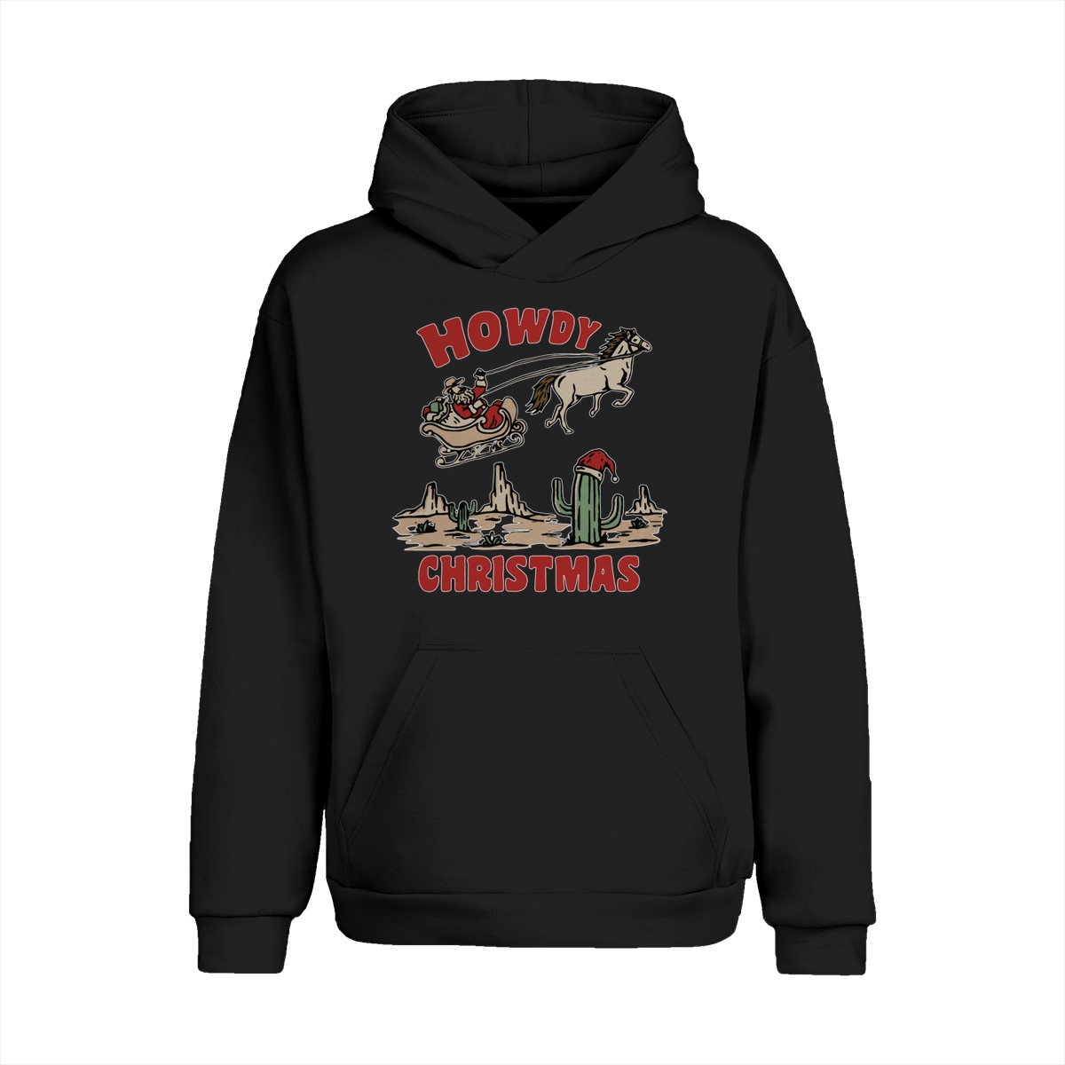 Howdy Christmas Sweatshirt – Cowboy Santa Riding Horse Sleigh in Desert Scene – Western Holiday Pullover & Funny Christmas Gift for Men and Women