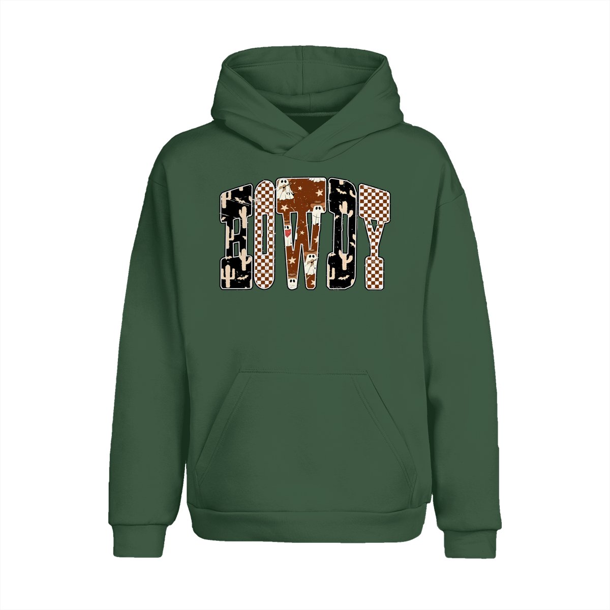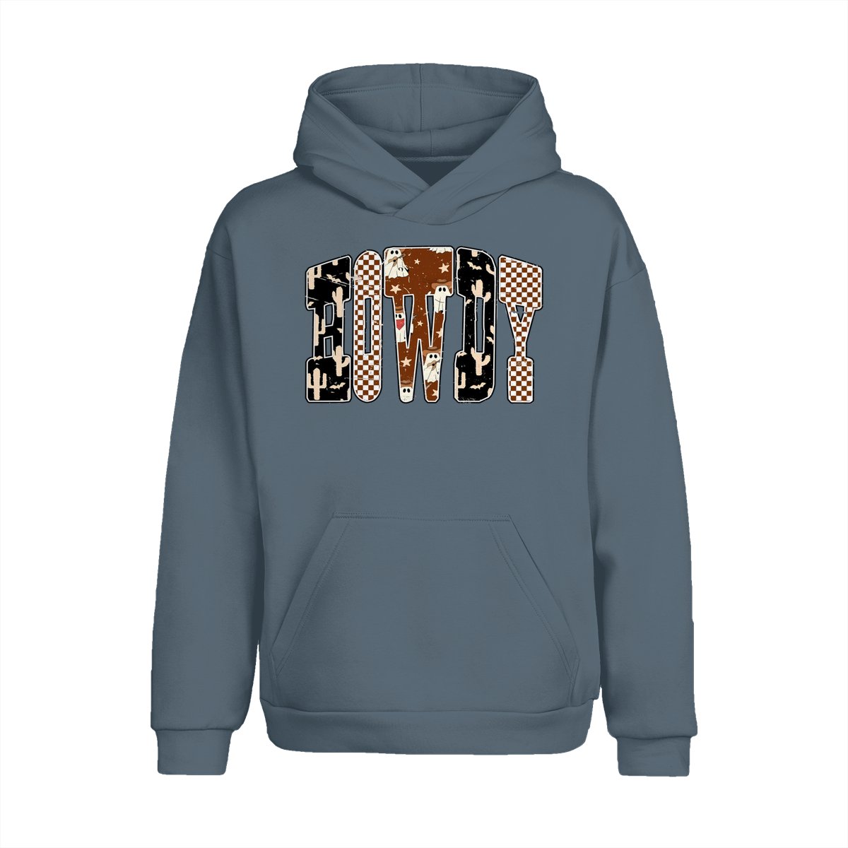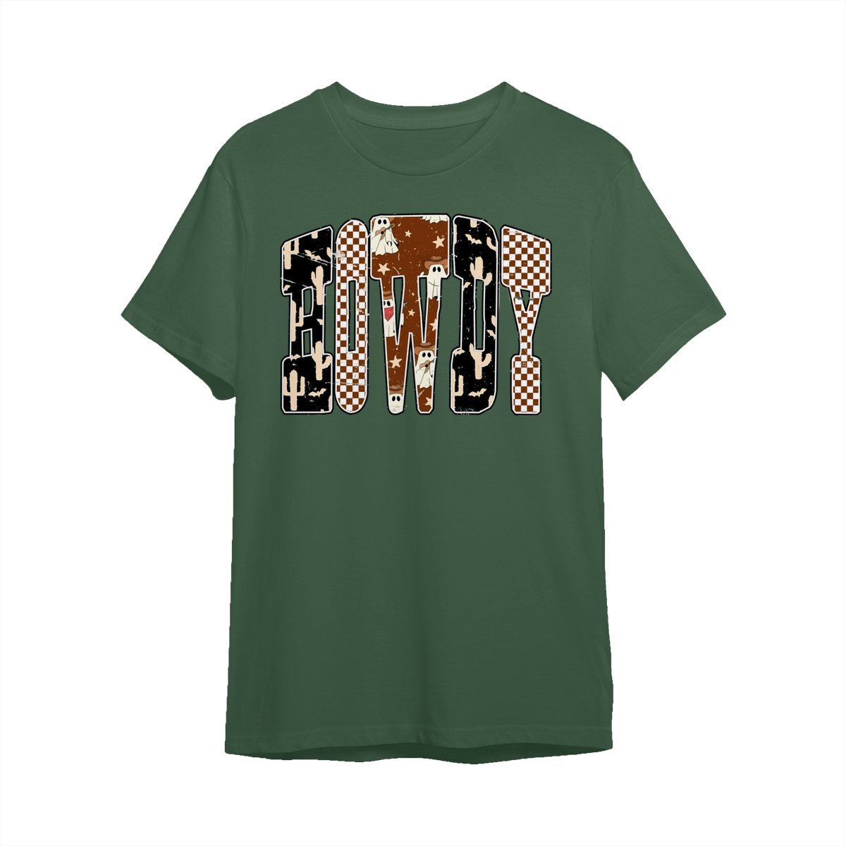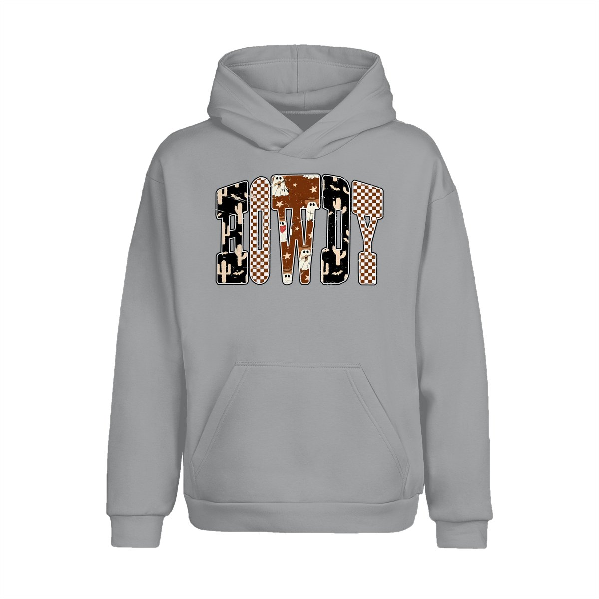 Howdy Shirt, Western Ghost Halloween Pullover, Cowboy Checkered Fall Letters, Rustic Spooky Autumn Sweater