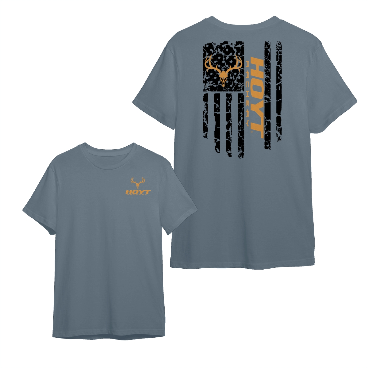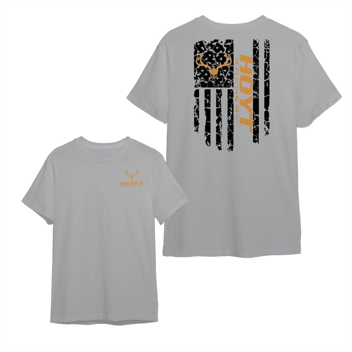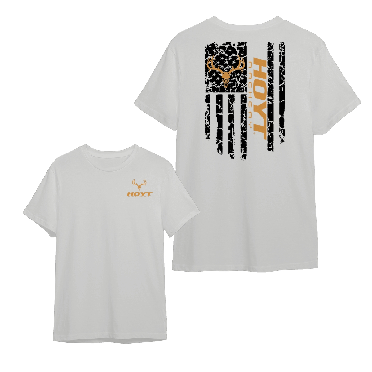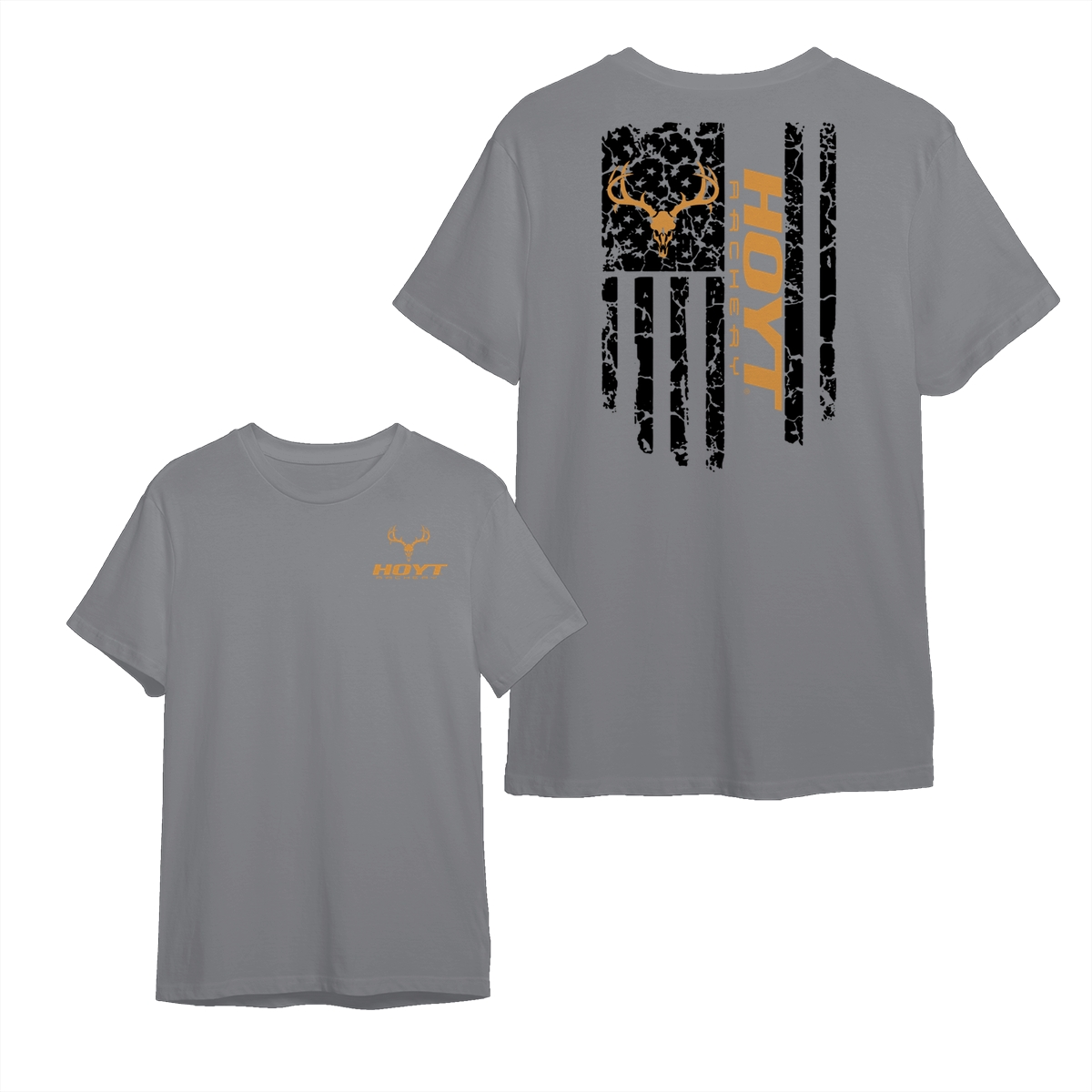 Hoyt Archery Flag Hoodie Shirt Sweater – American Hunting Style, Skull Antler Graphic, Unisex Outdoor Outfit, Bowhunter Gear, Patriotic Huntwear for Fall Season