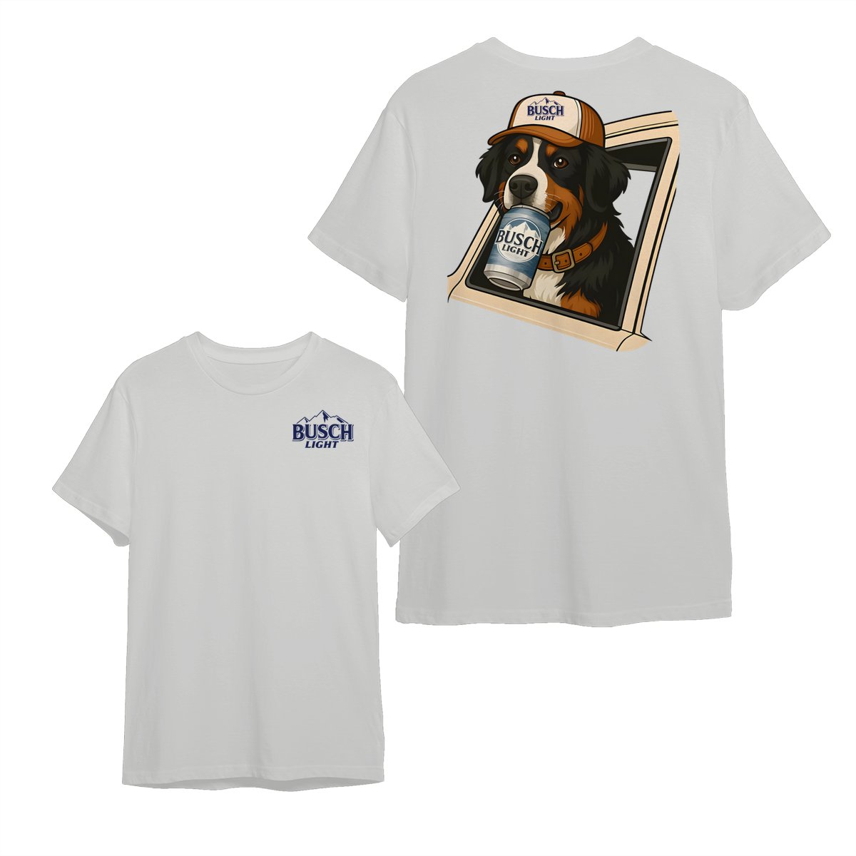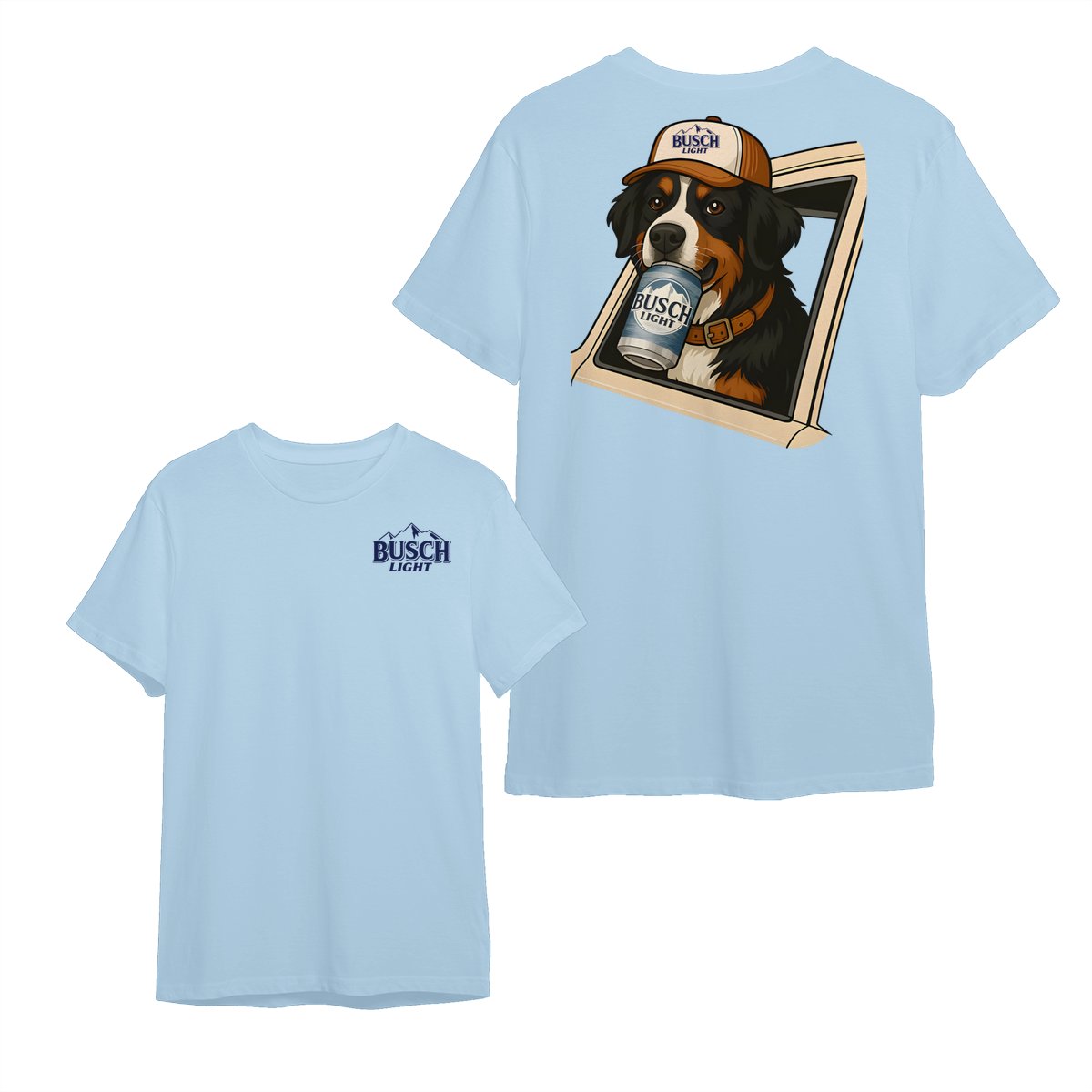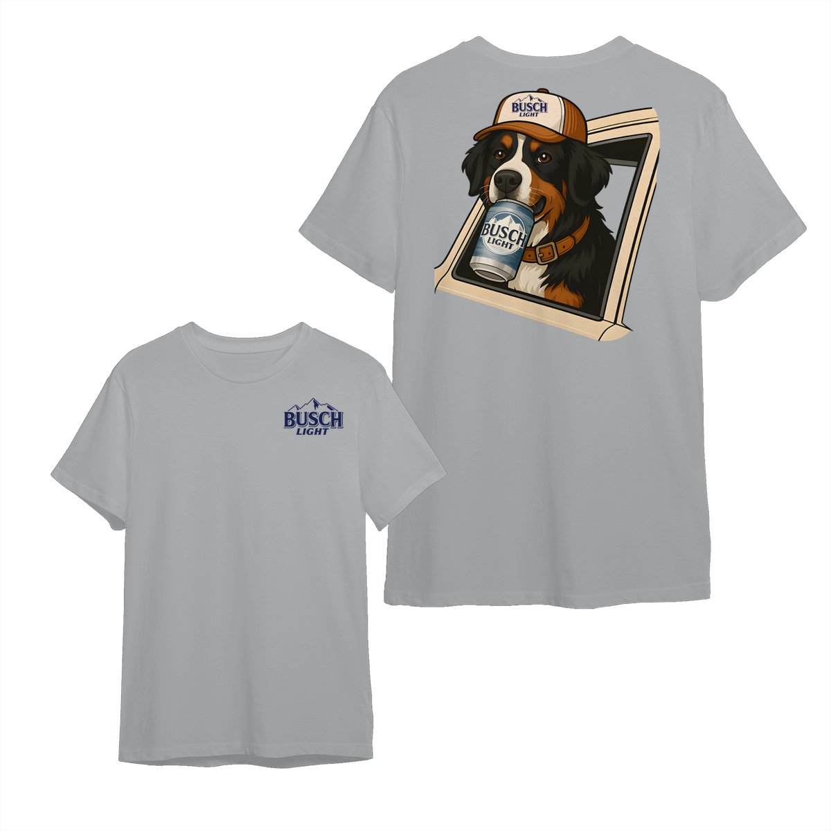 Hunting Club Dog Unisex T-Shirt, Funny Dog with Beer Cotton Tee, Busch Light Beer Shirt, Bernese Moutain Busch Light, Full Colors, For Men and Women