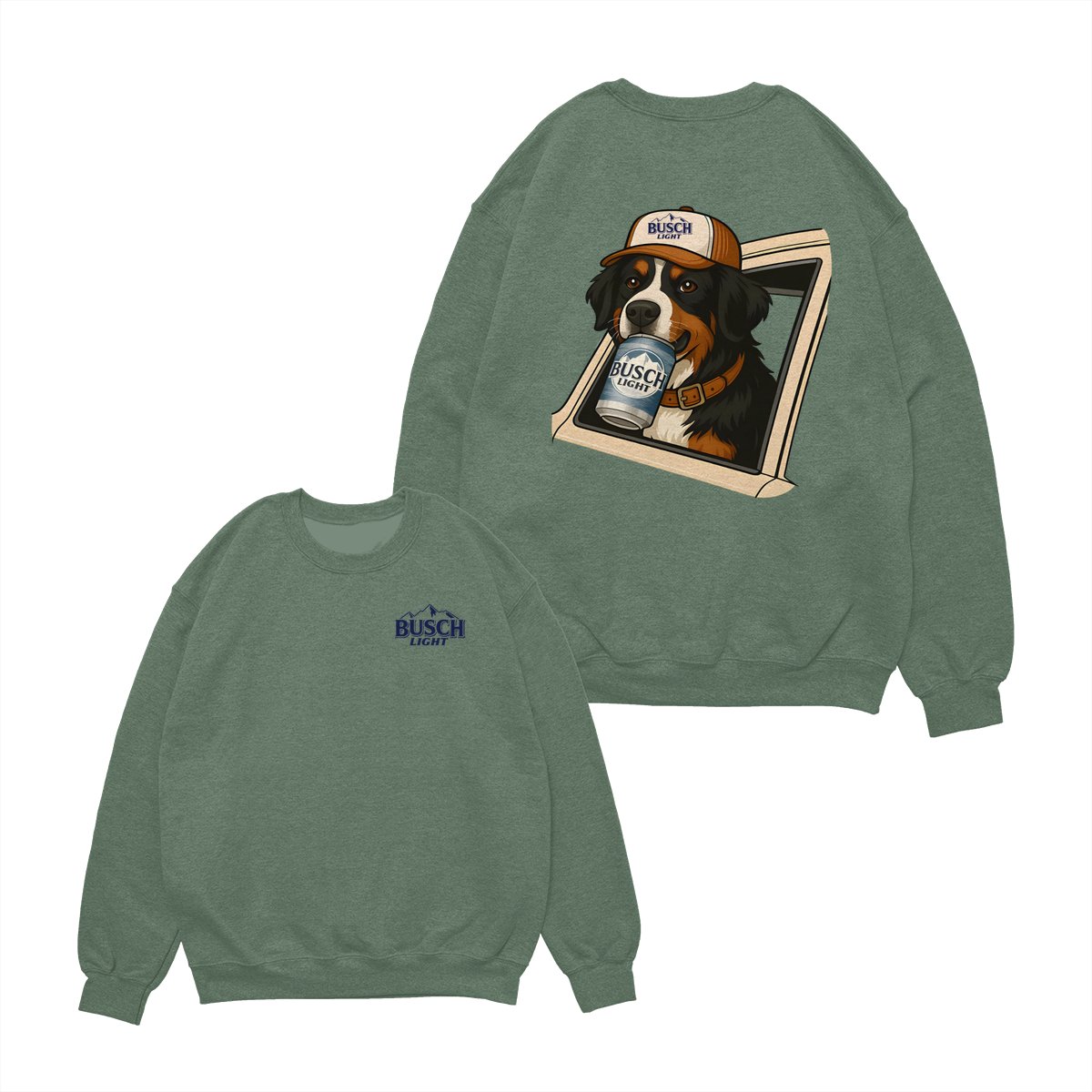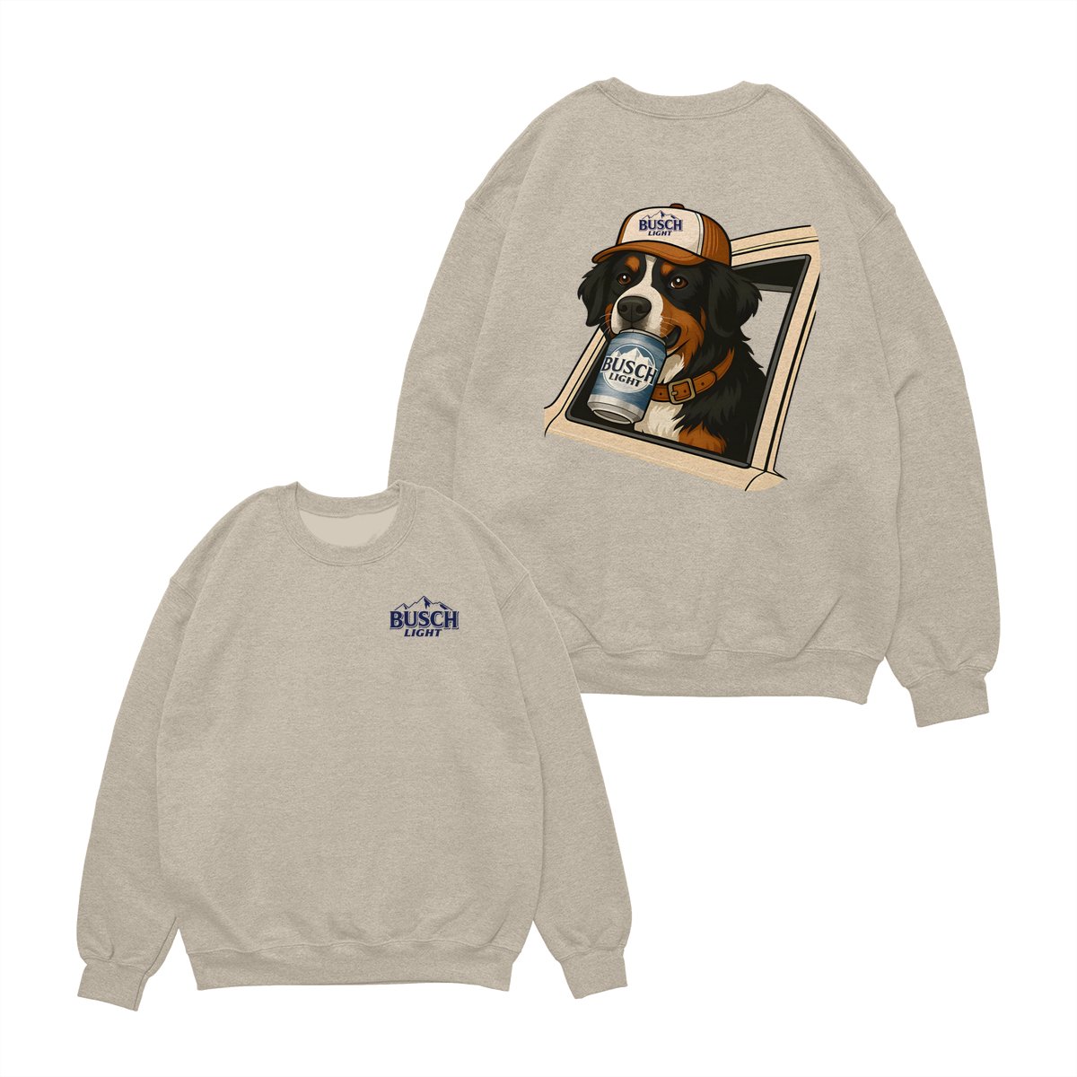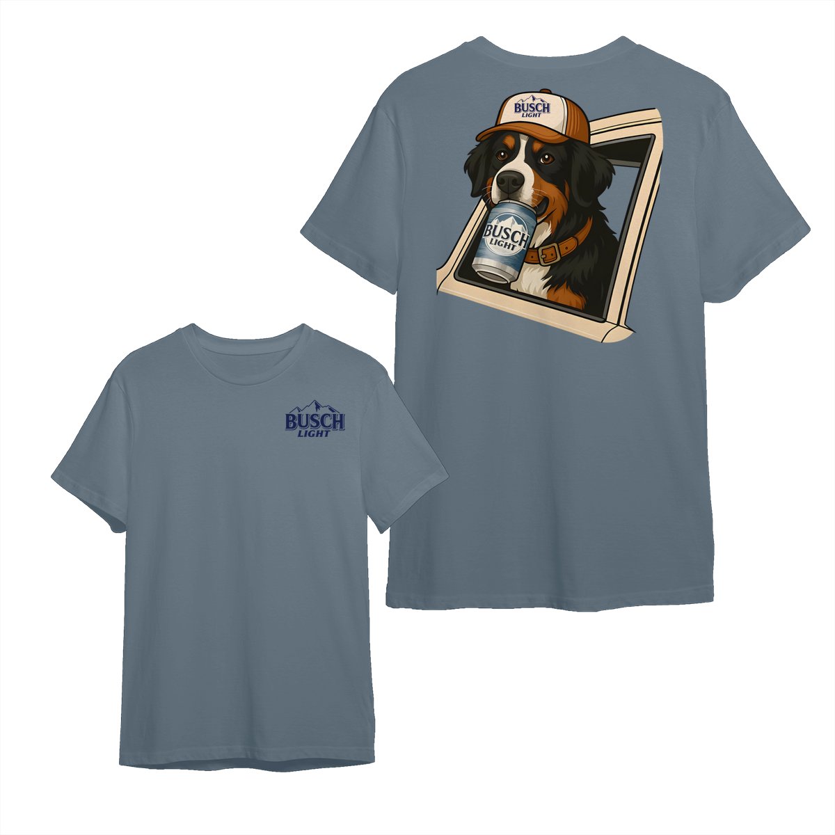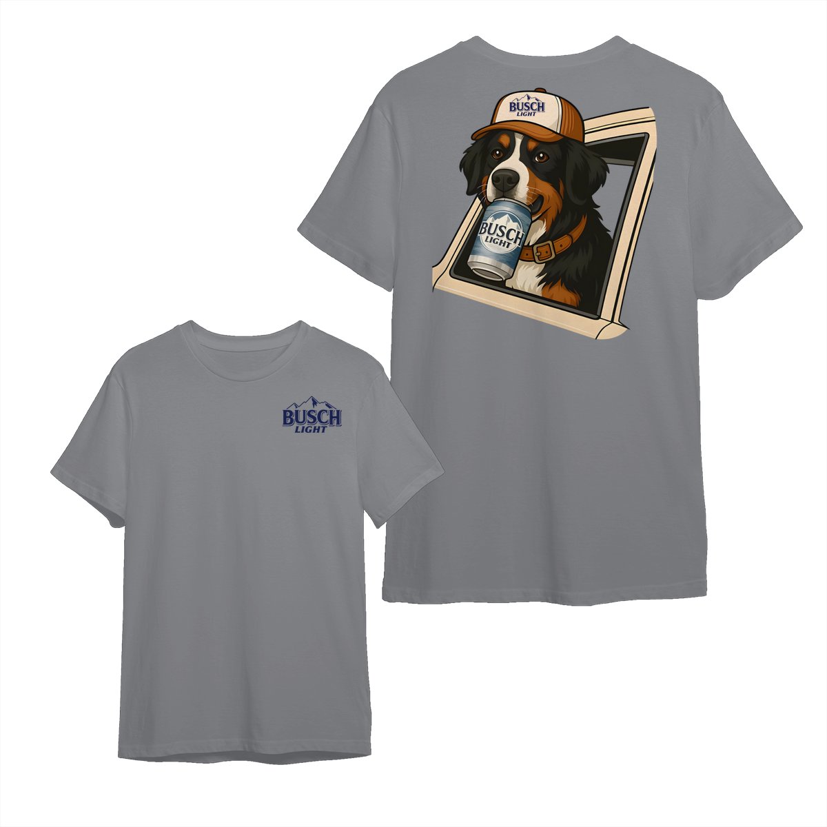 Hunting Club Dog Unisex T-Shirt, Funny Dog with Beer Cotton Tee, Busch Light Beer Shirt, Bernese Moutain Busch Light, Full Colors, For Men and Women