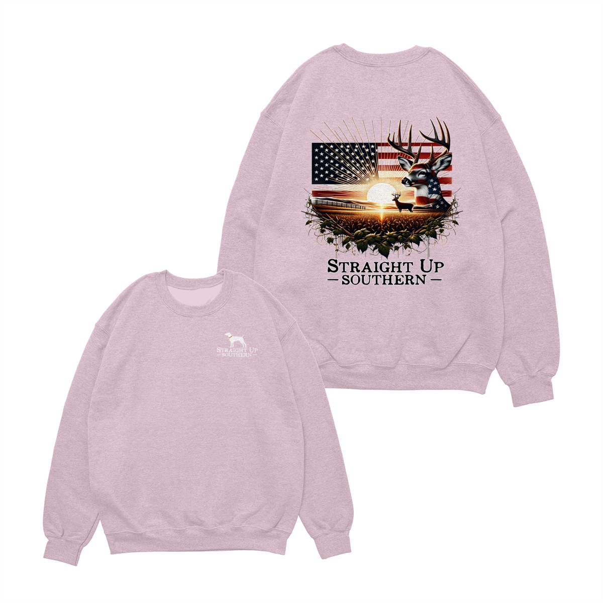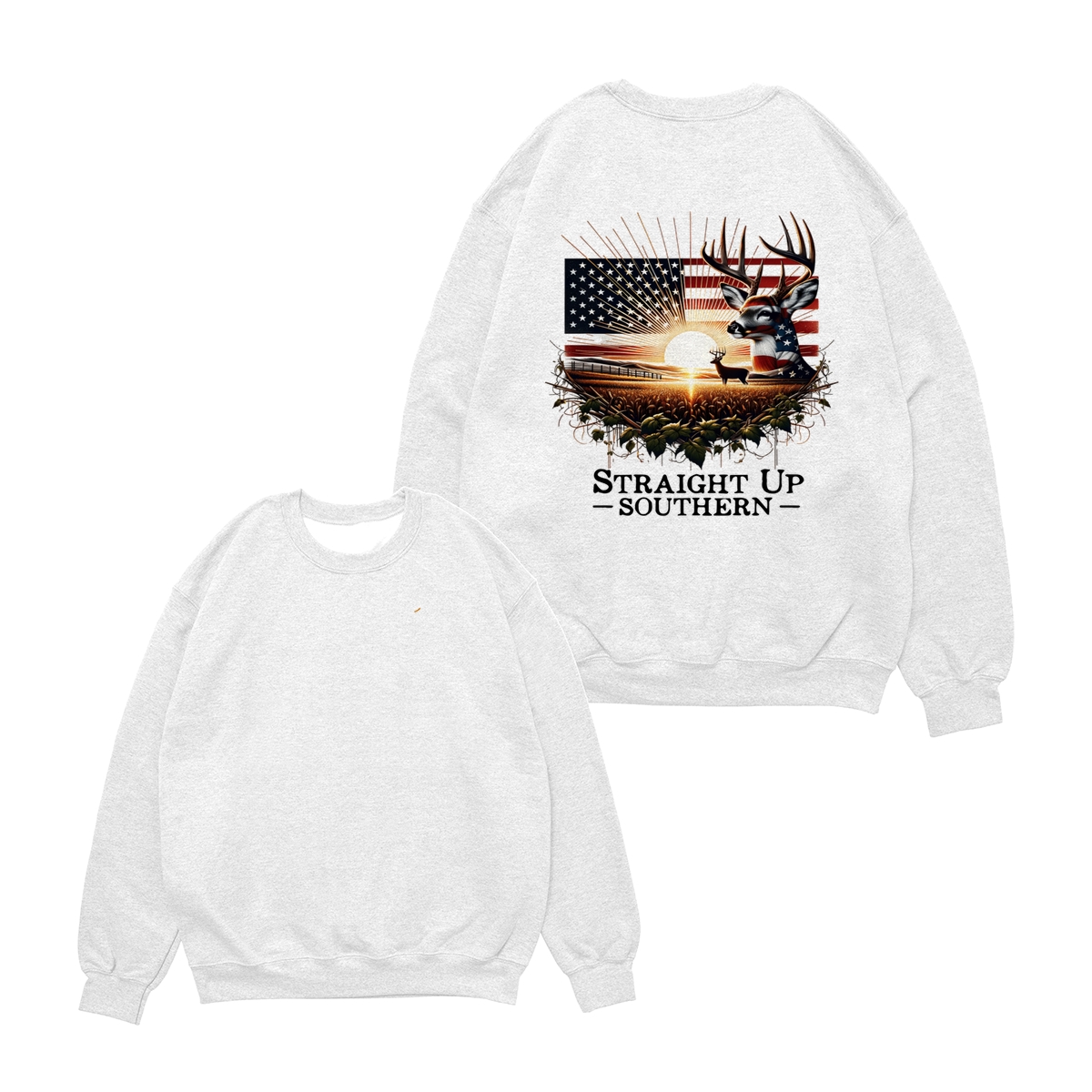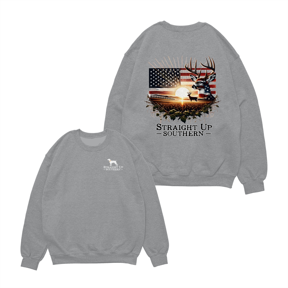 Hunting T-Shirt – American Farm & Whitetail Deer Graphic Tee, Country Sunrise Wildlife Shirt, Streetwear Mens Tops, Gift for Outdoorsman Menswear