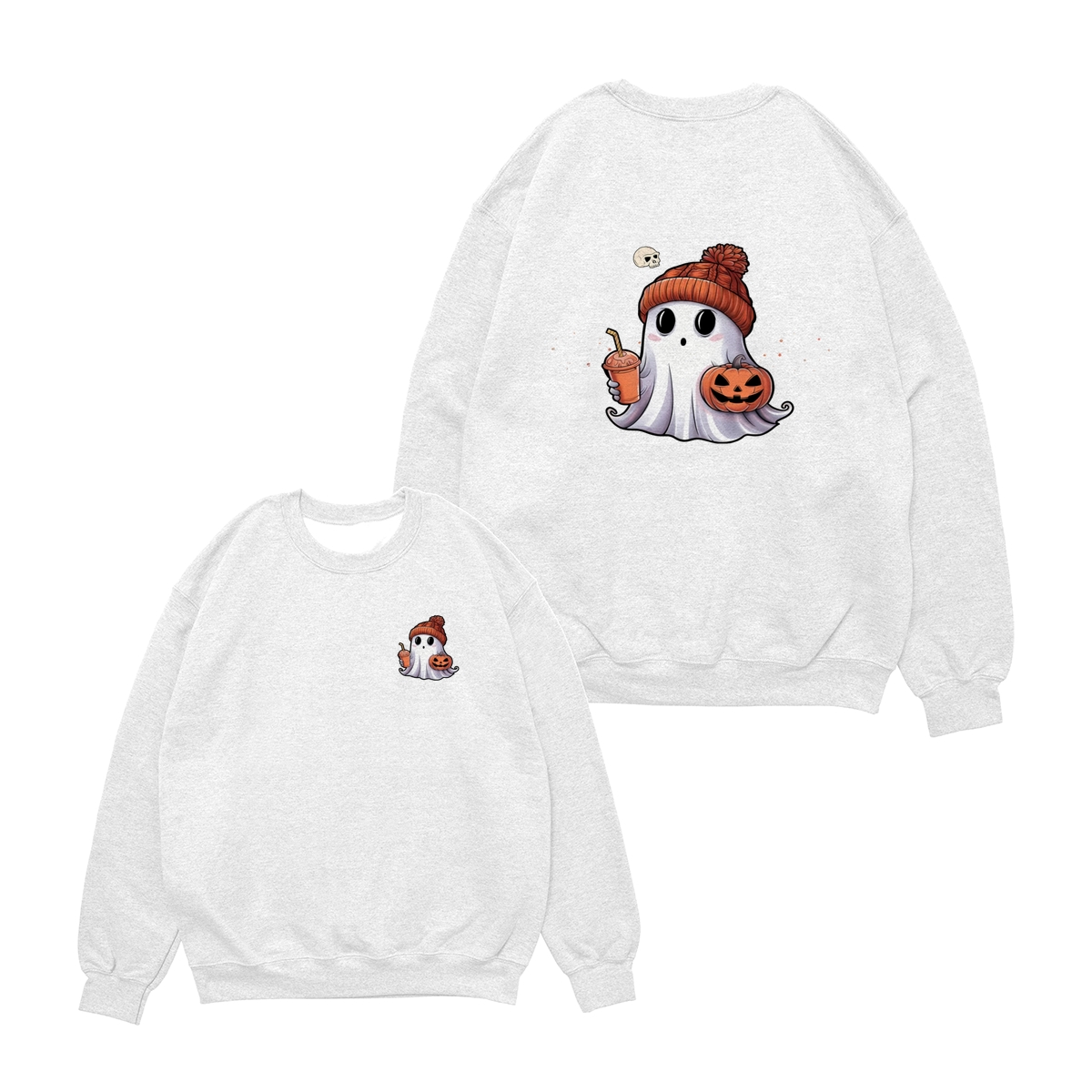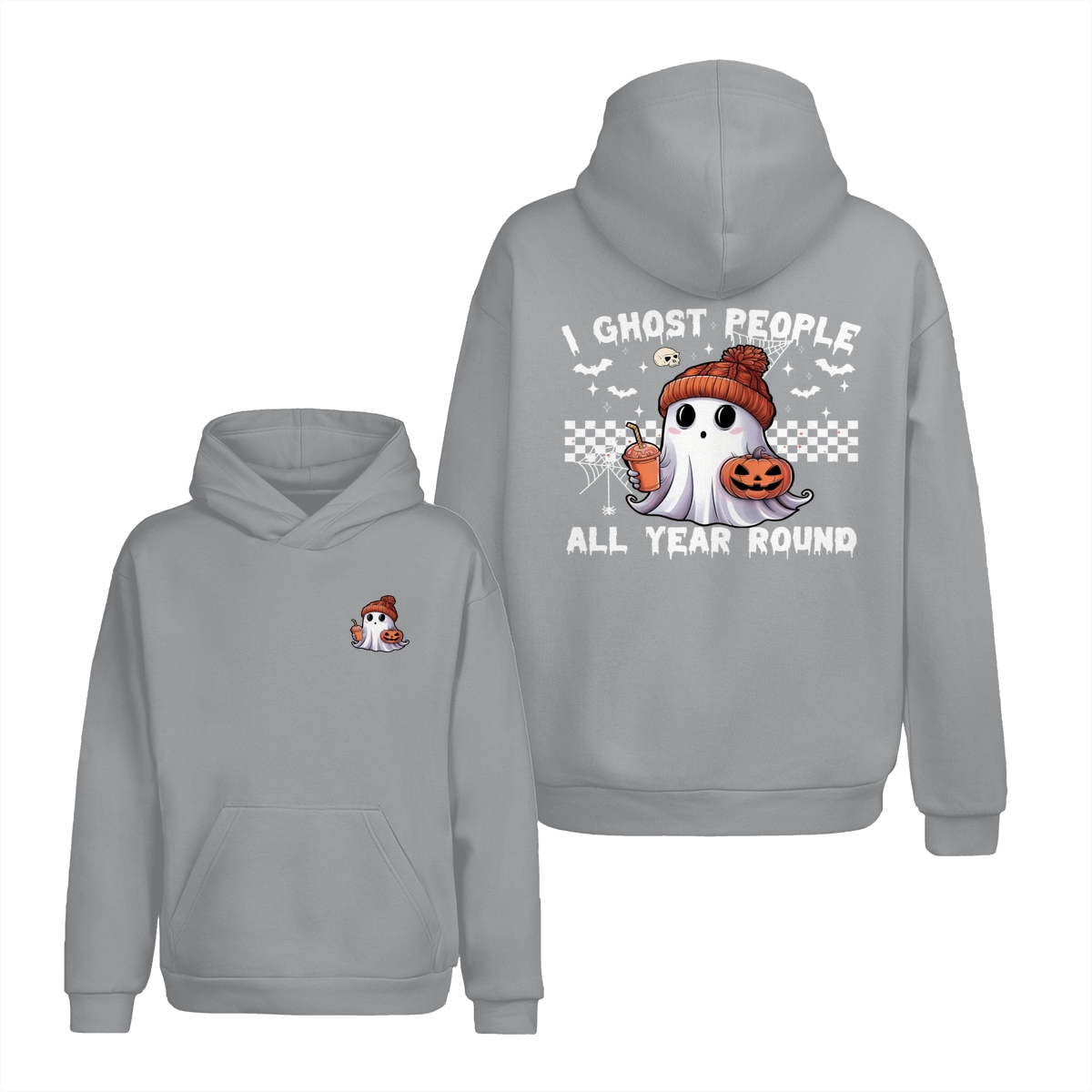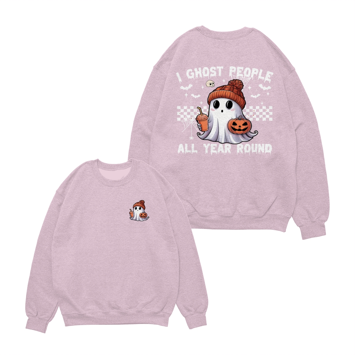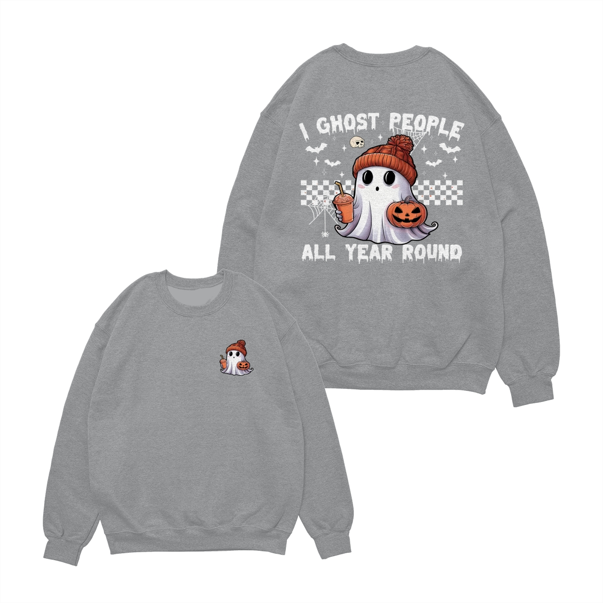 I Ghost People All Year T-Shirt – Halloween-Inspired Graphic Tee with Cute Ghost, Pumpkin & Drink, Everyday Spooky Style, Soft Unisex Shirt, USA-Made & Printed Apparel