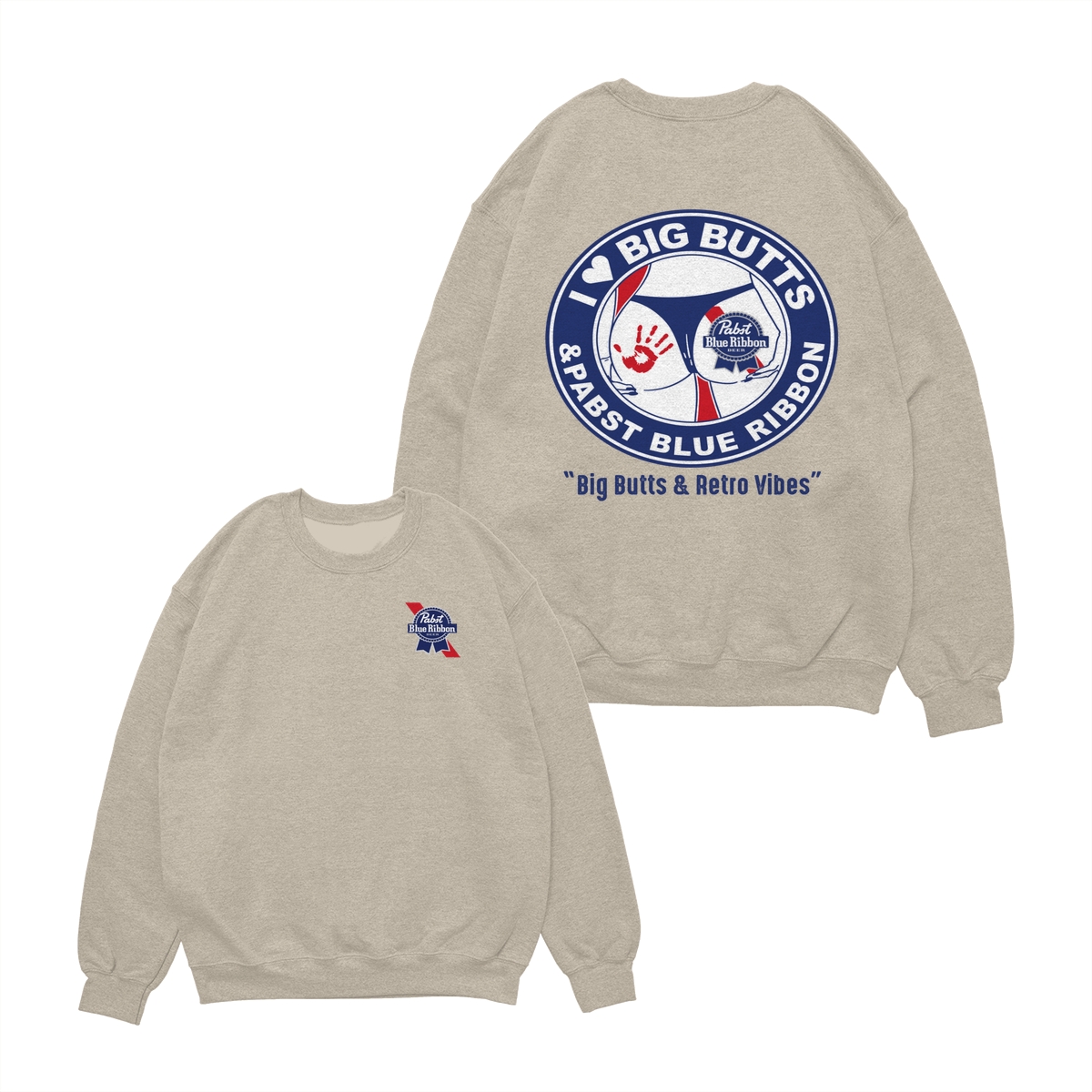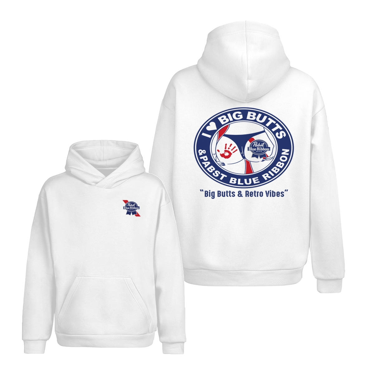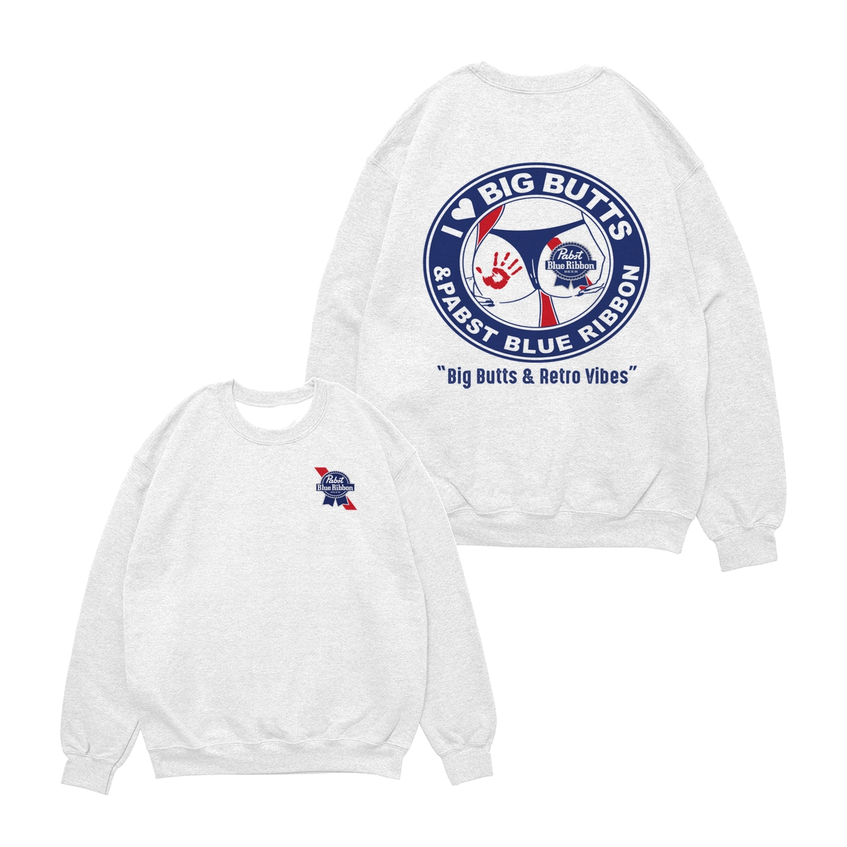 I Love Big Butts & Pabst Blue Ribbon Double-Sided T-Shirt – Gift for Beer Lovers, Boyfriends & Husbands