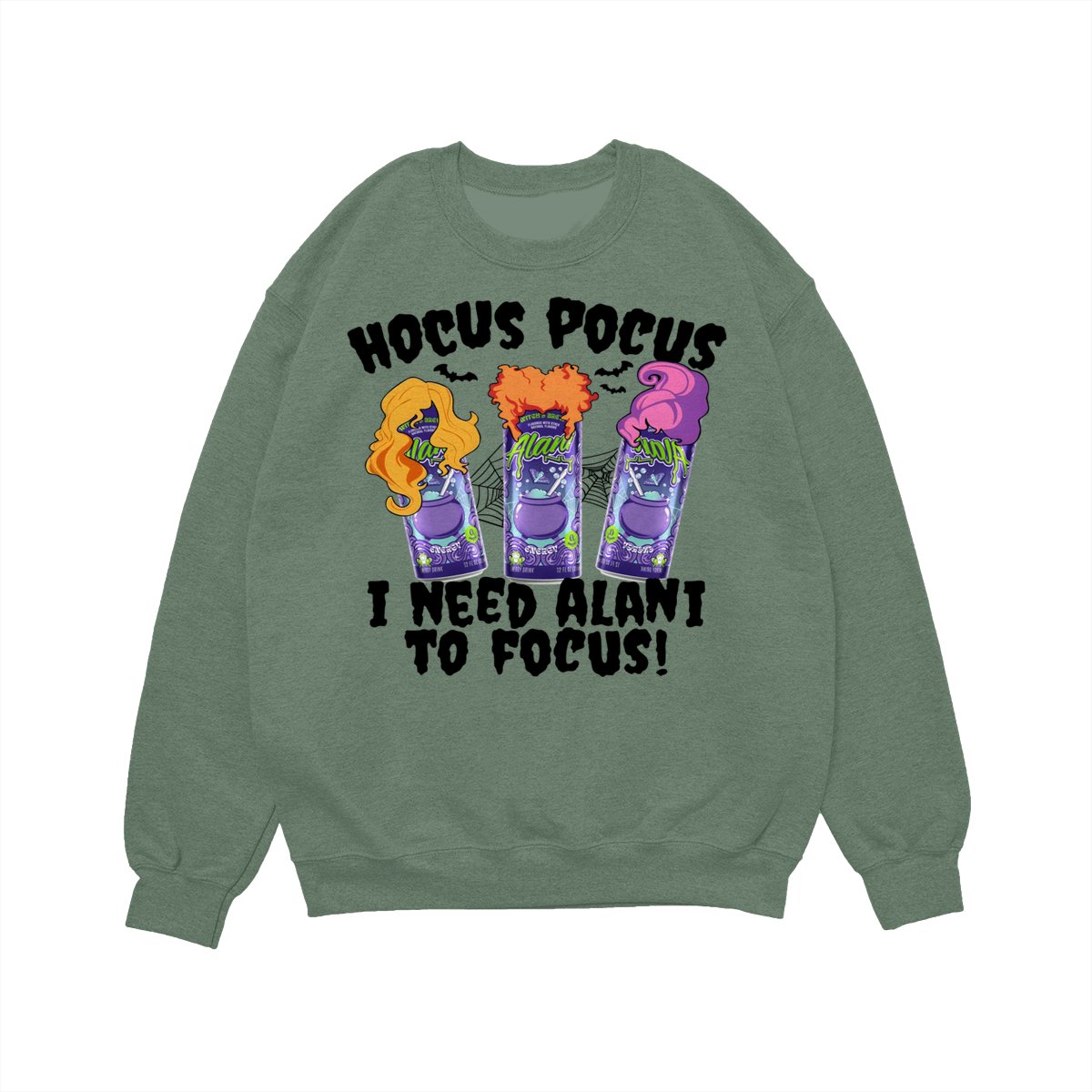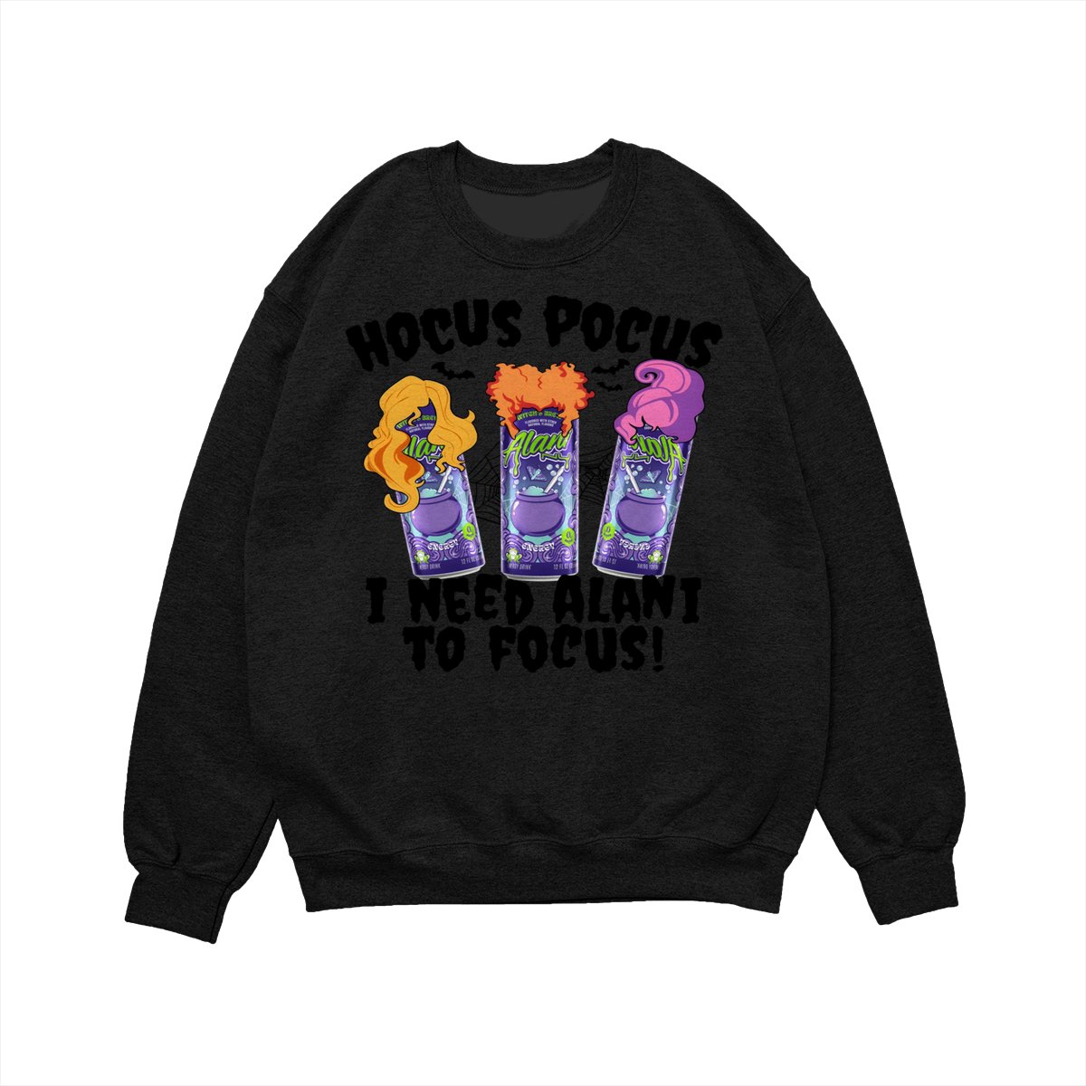 I Need Alani To Focus Halloween Shirt – Sweatshirt – Hoodie, Energy Drink Unisex Graphic Tee, Spooky Season, Funny Energy Drink, Retro Witches Halloween Gifts