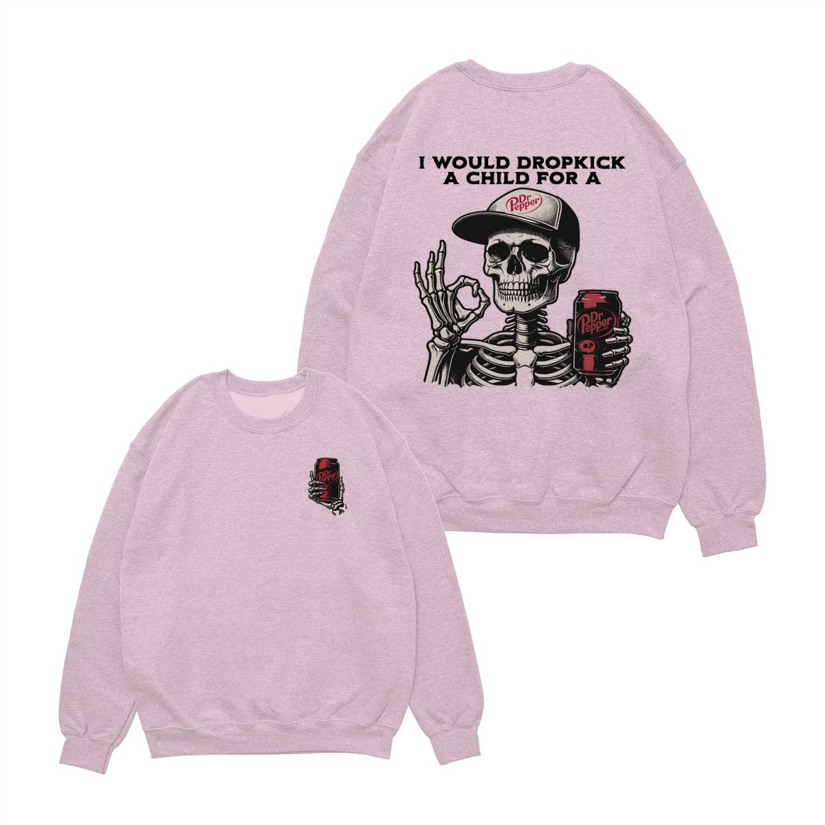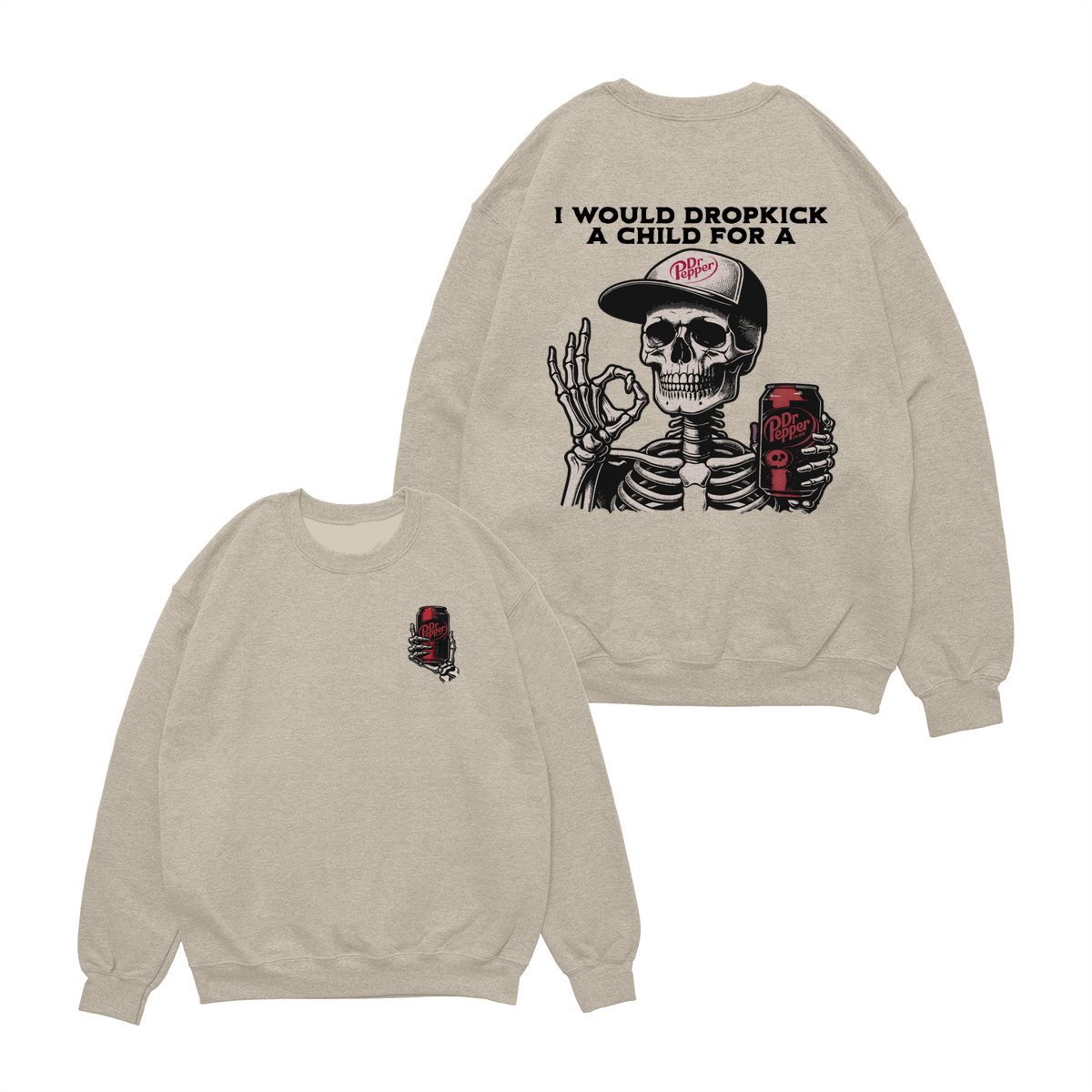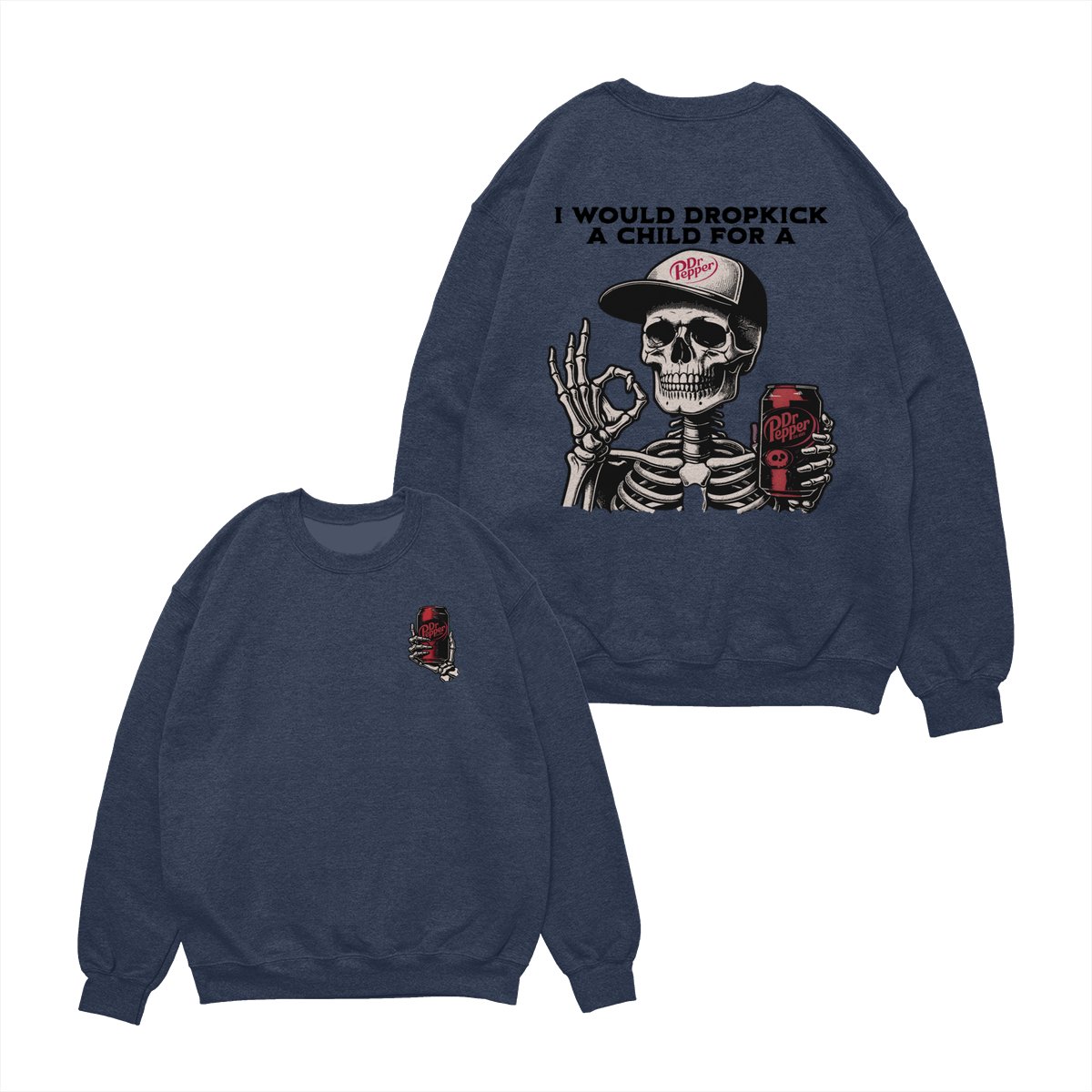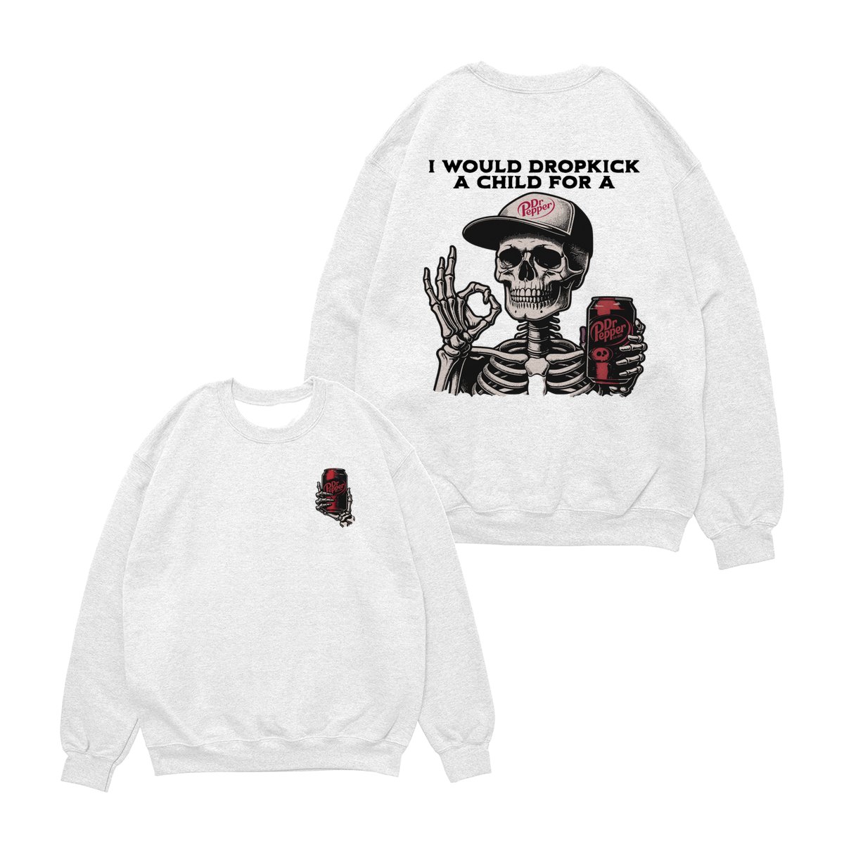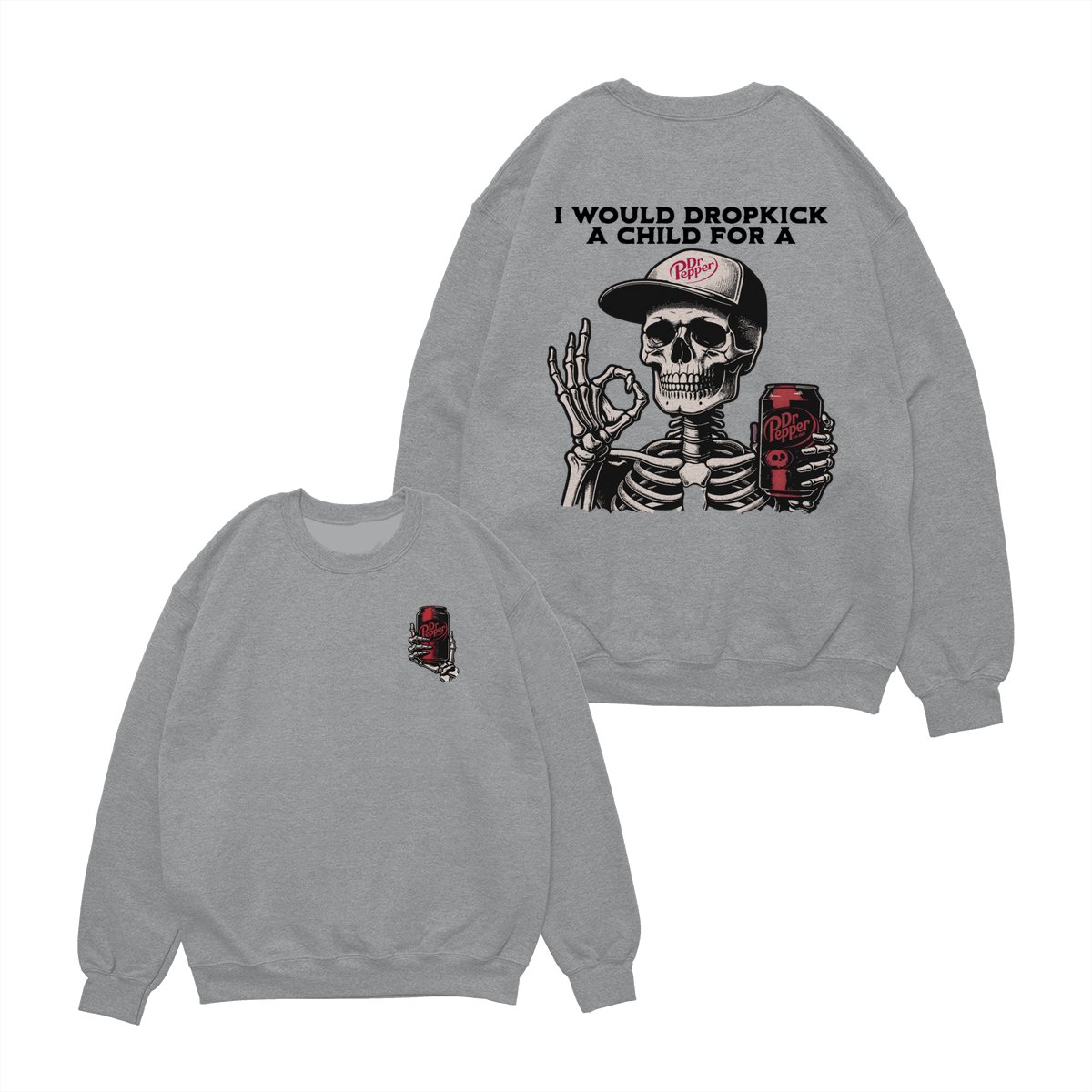 I Would Dropkick a Child for a Soda Tee, Skeleton Holding Dr Pepper Can T-Shirt, Edgy Meme Shirt for Soda Lovers, Unisex Humor Top