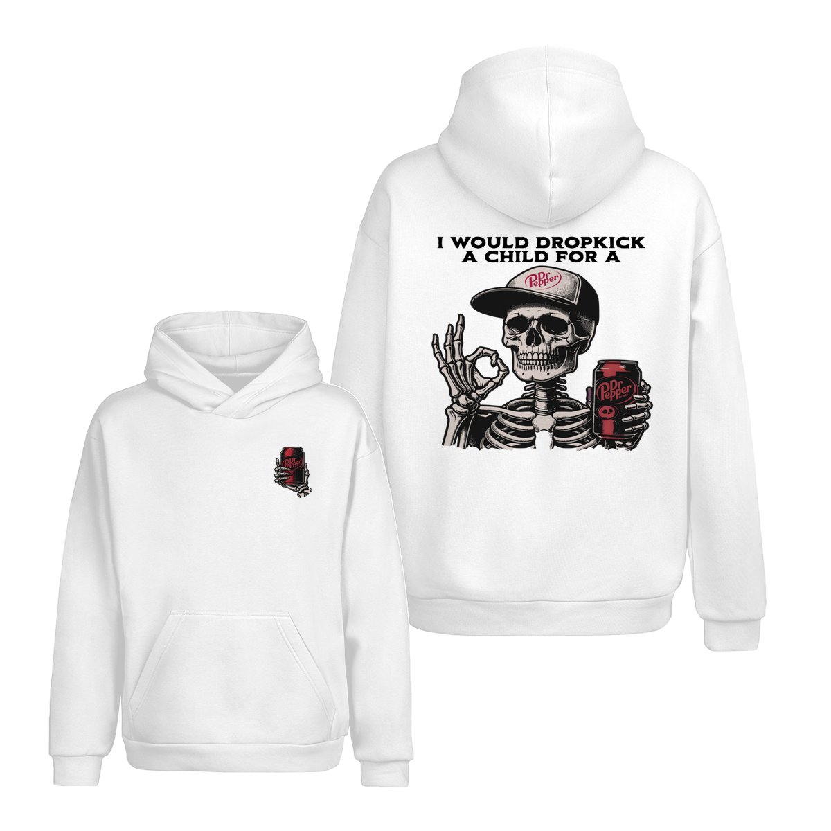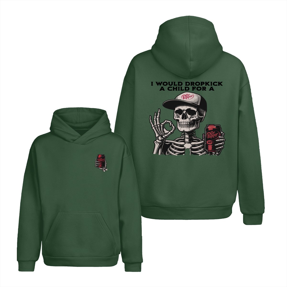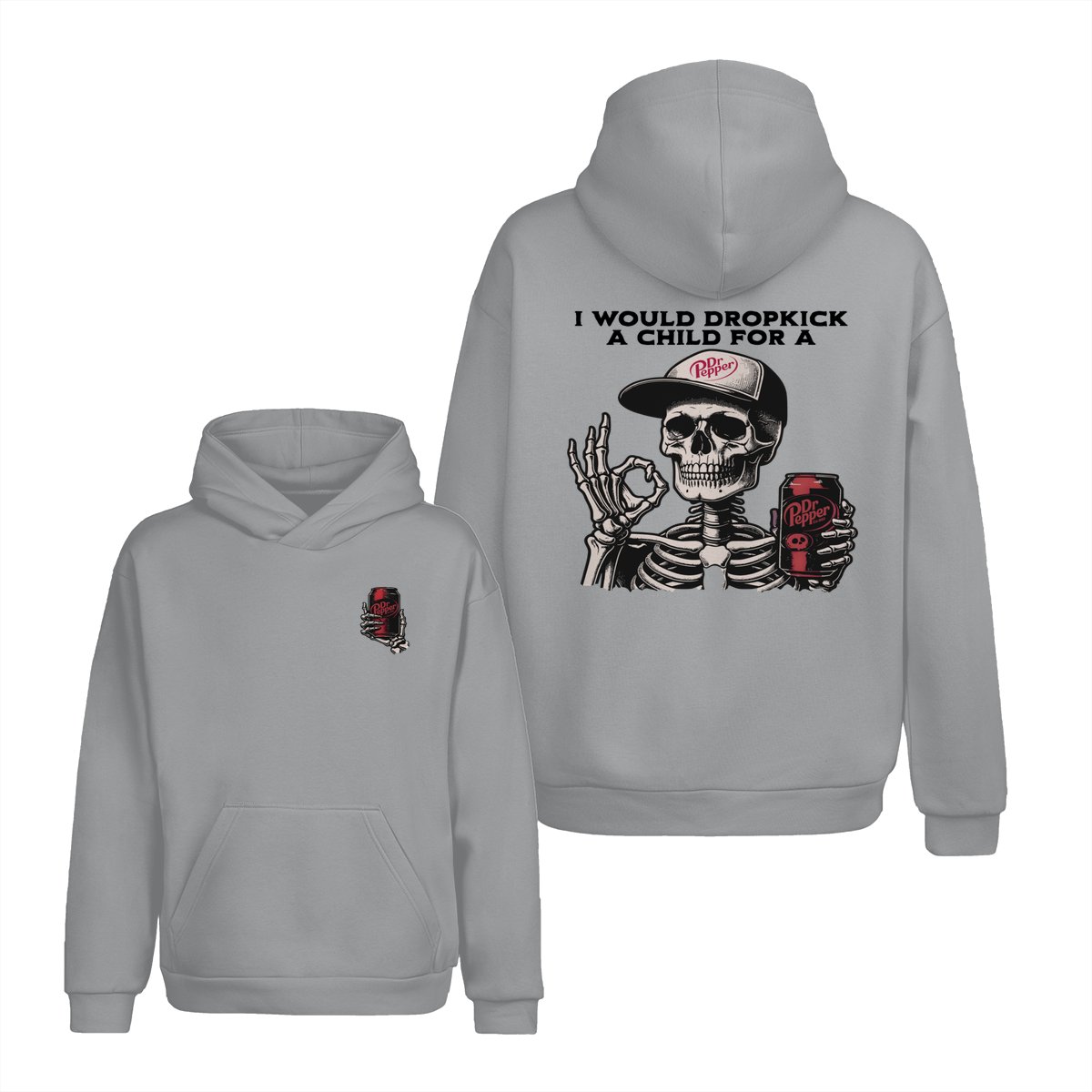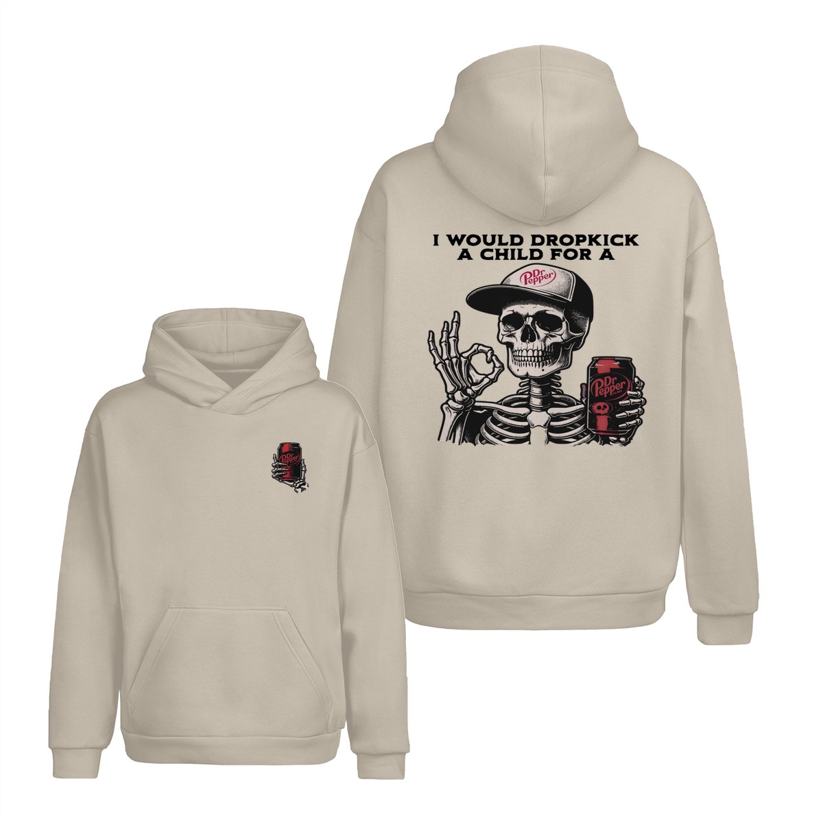 I Would Dropkick a Child for a Soda Tee, Skeleton Holding Dr Pepper Can T-Shirt, Edgy Meme Shirt for Soda Lovers, Unisex Humor Top