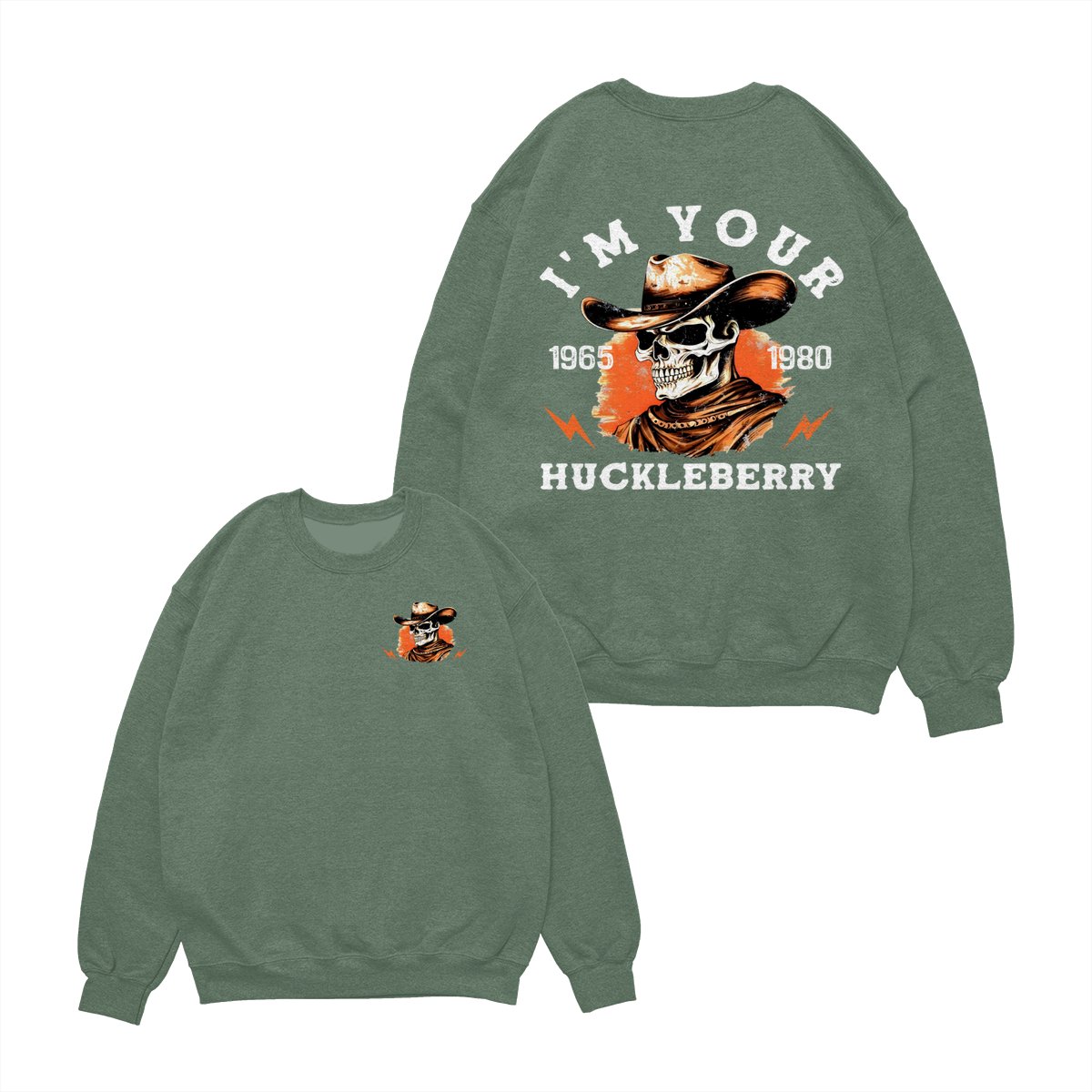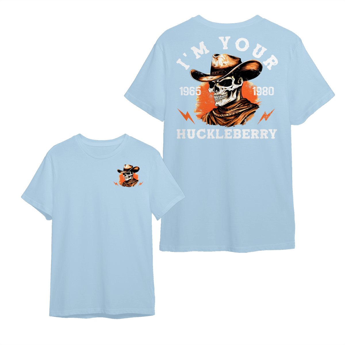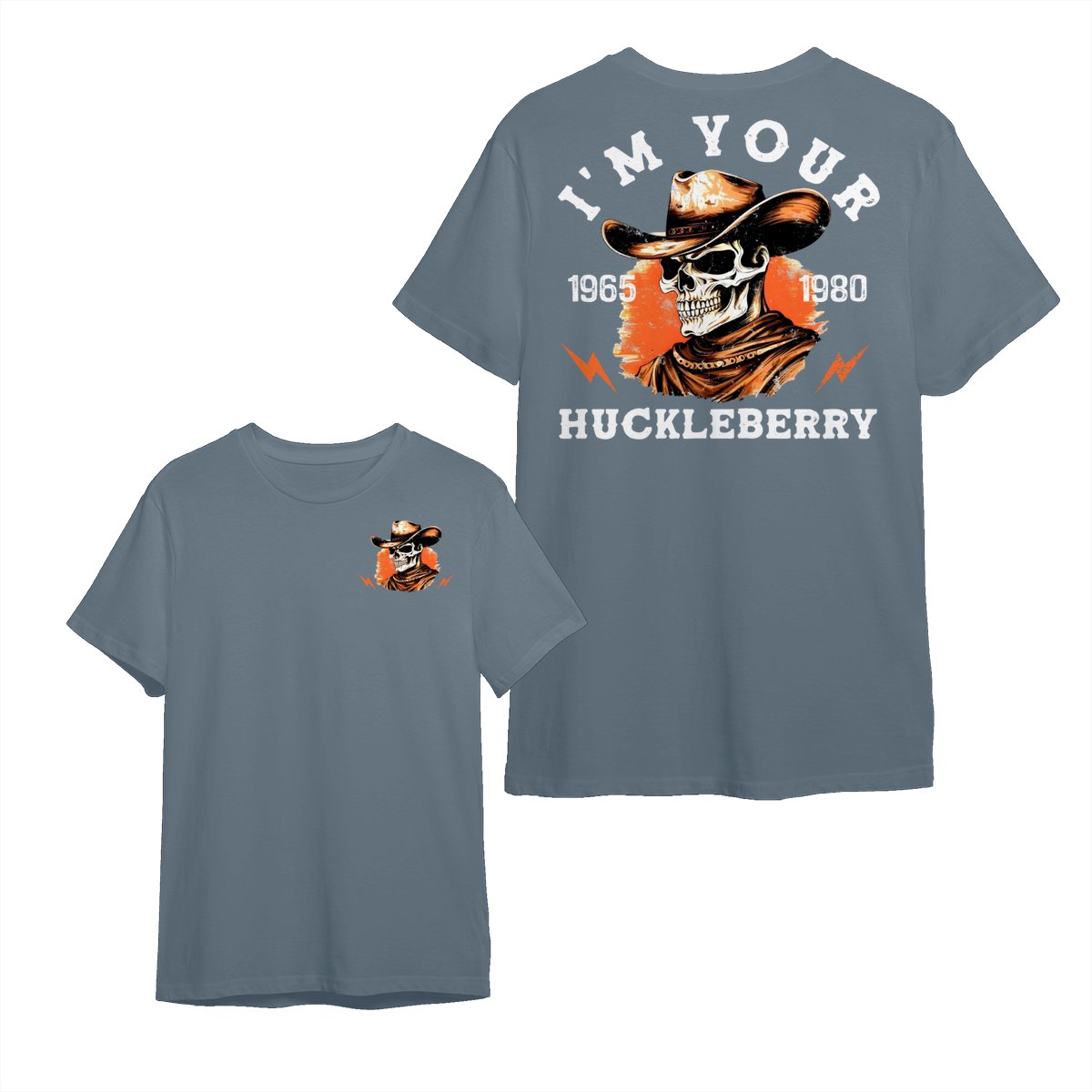 I’m Your Huckleberry Cowboy Skull Tee – Western Graphic Shirt with Vintage Gunslinger Vibe, Gift for Dad, Country Lovers, and Southern Style Fans