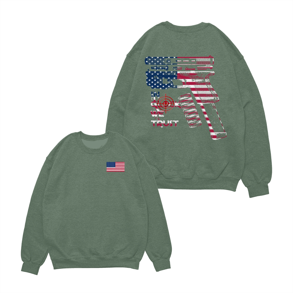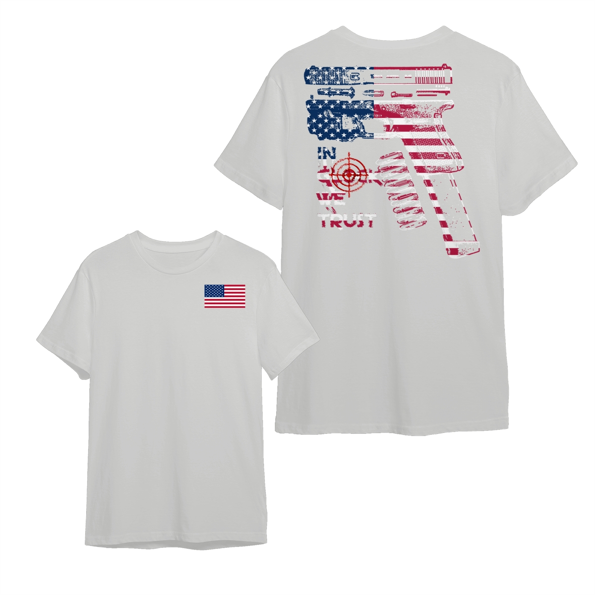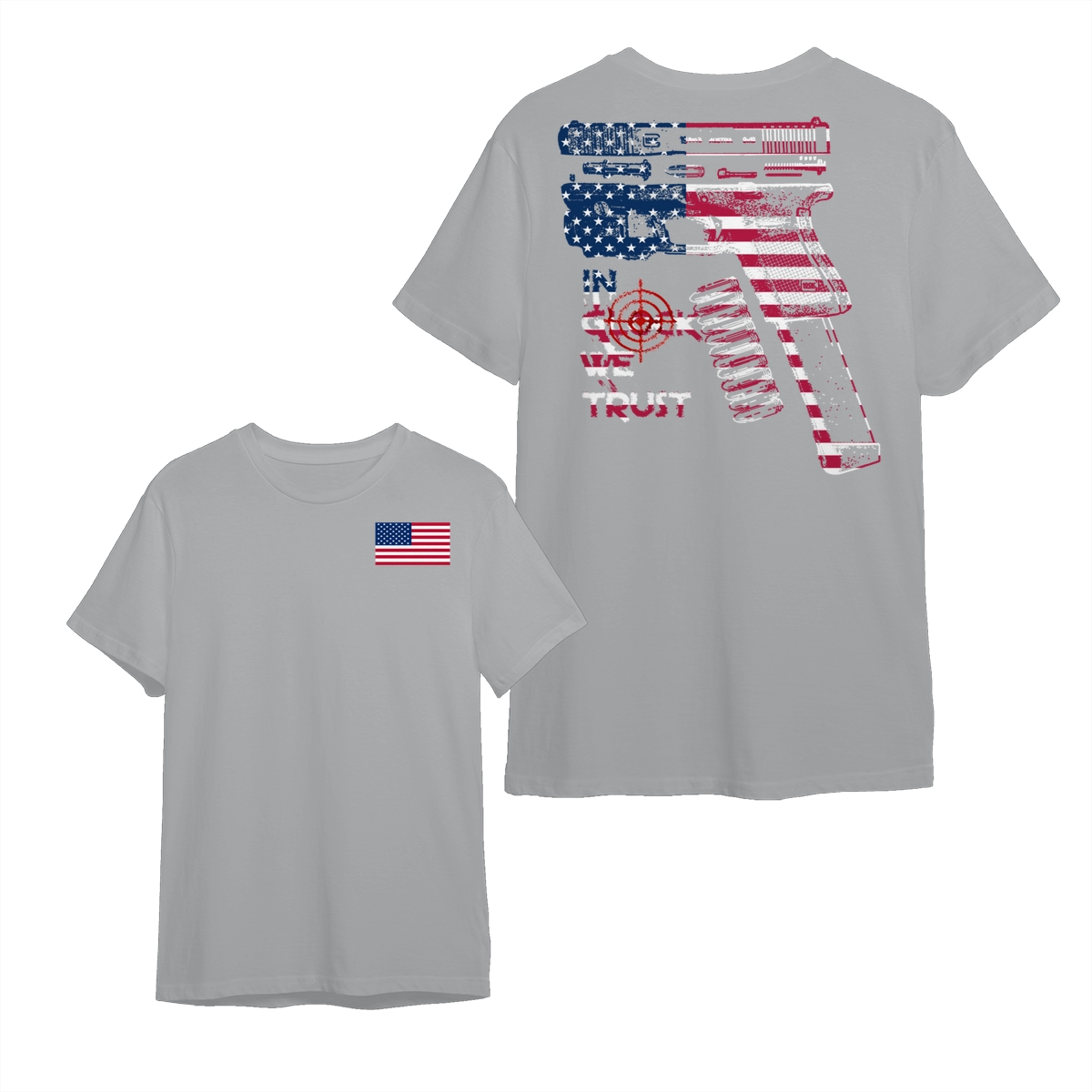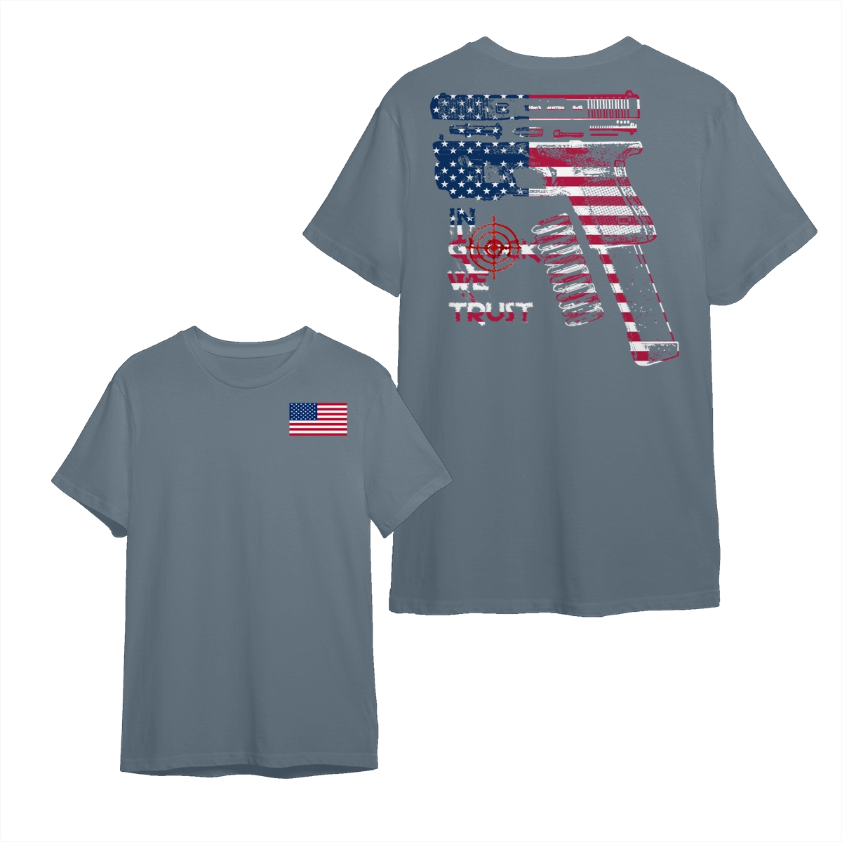 In Glock We Trust USA Flag T-Shirt – Patriotic Gun Graphic Tee for Men, Classic Fit