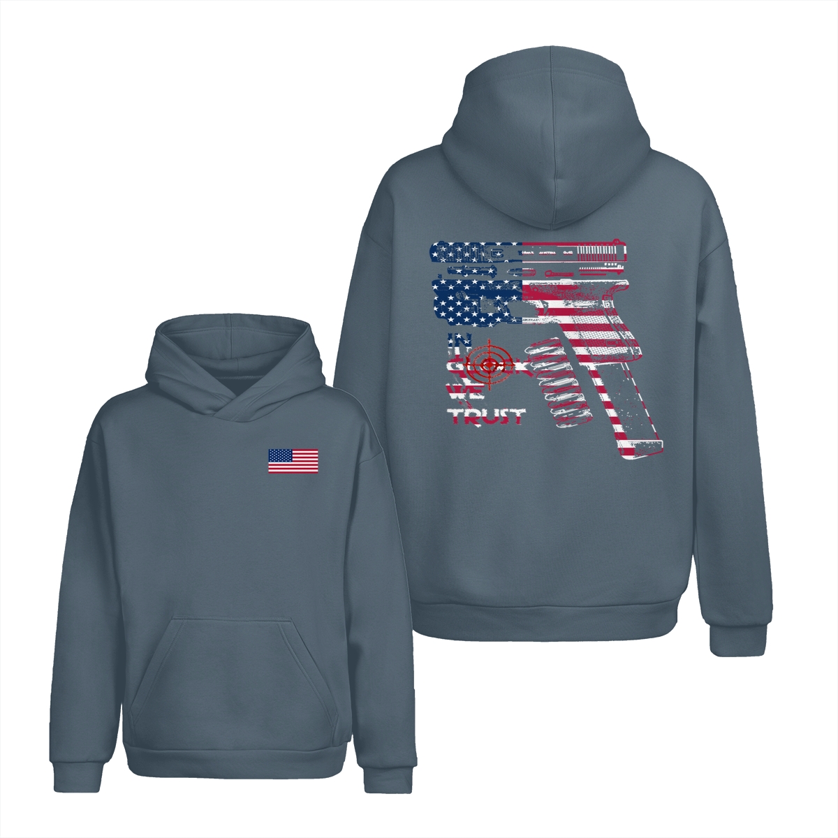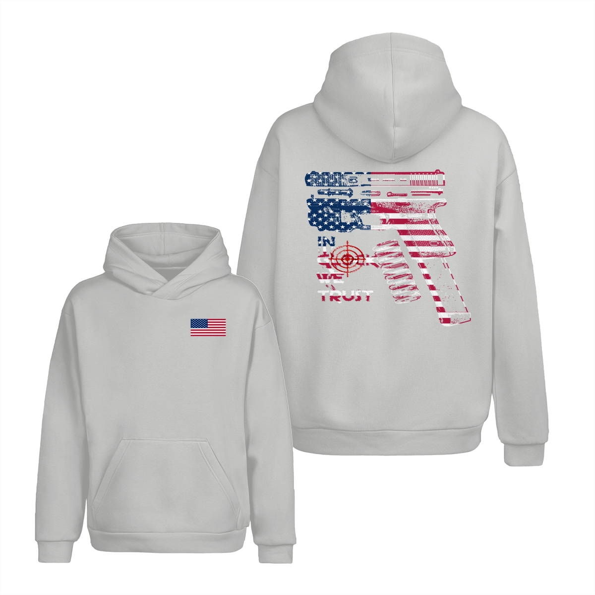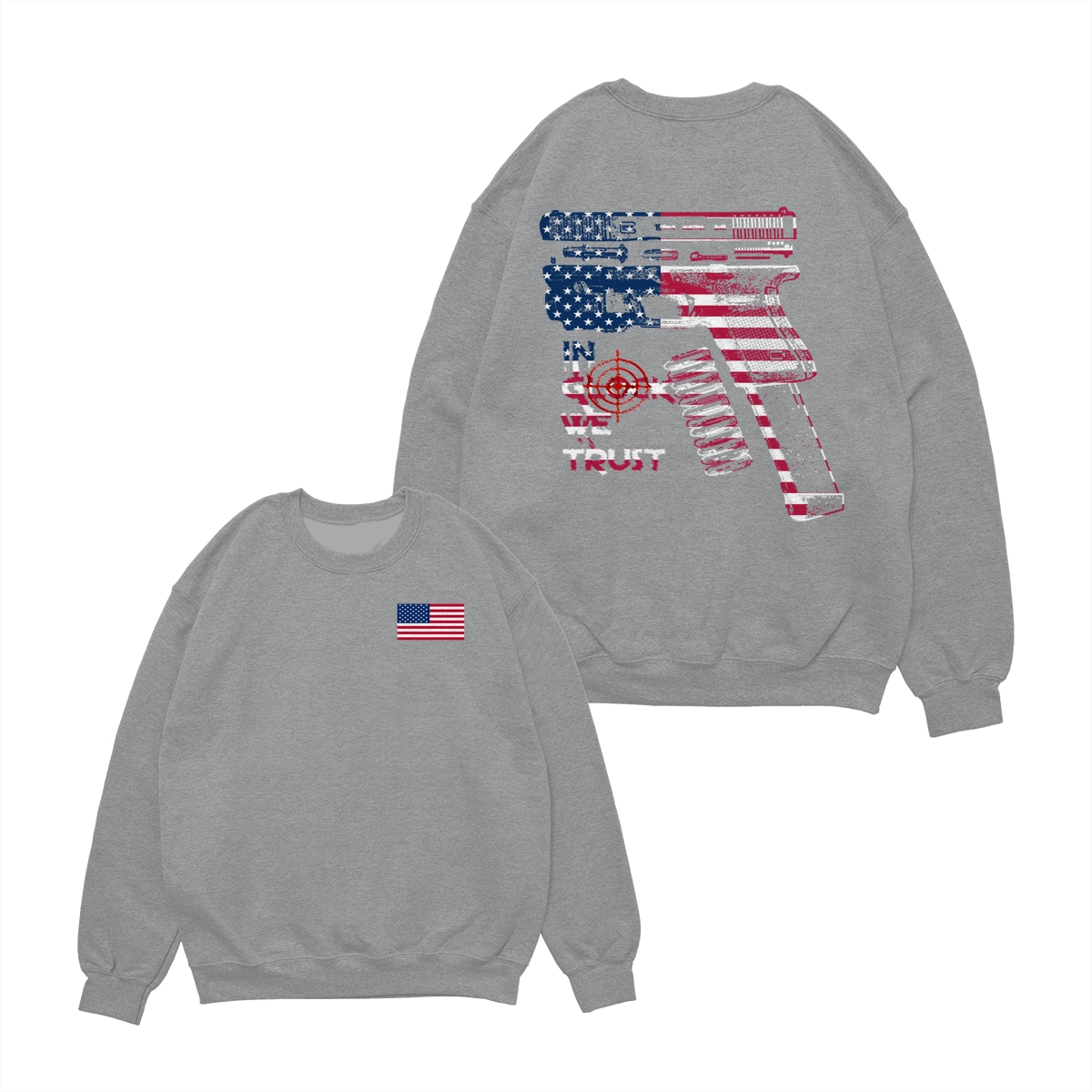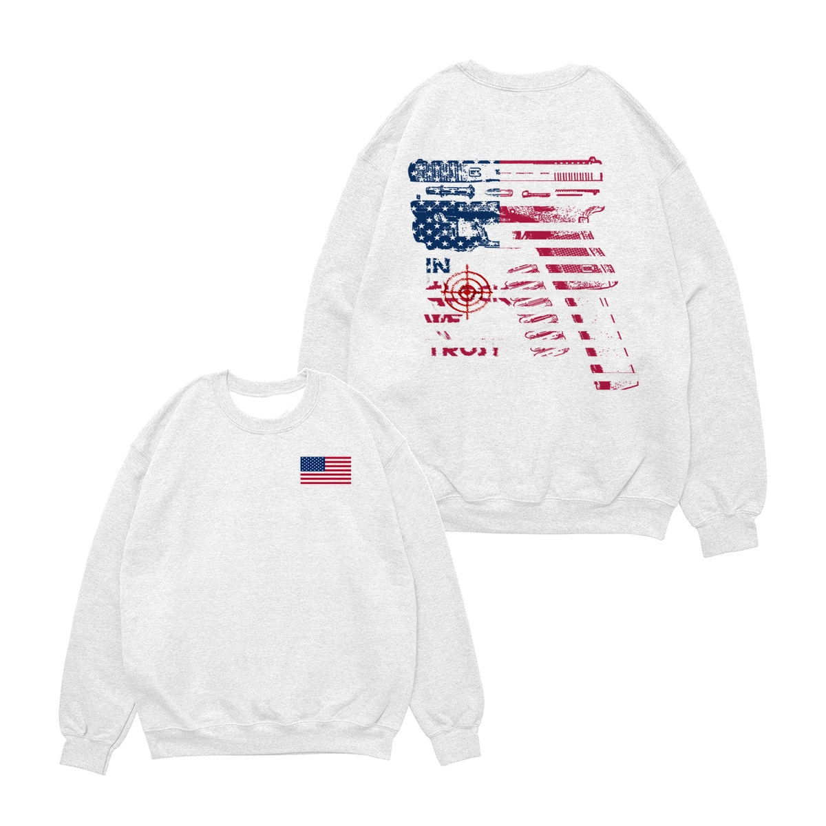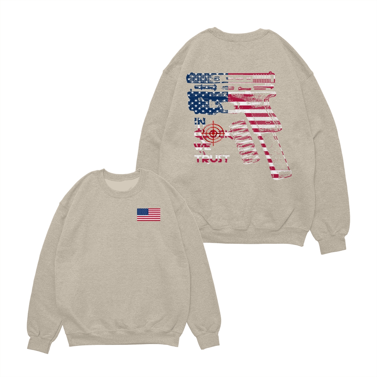 In Glock We Trust USA Flag T-Shirt – Patriotic Gun Graphic Tee for Men, Classic Fit