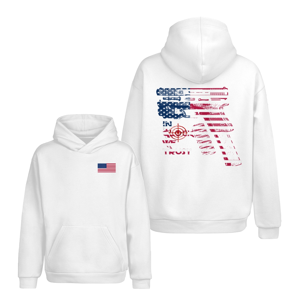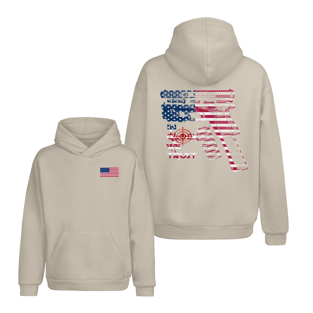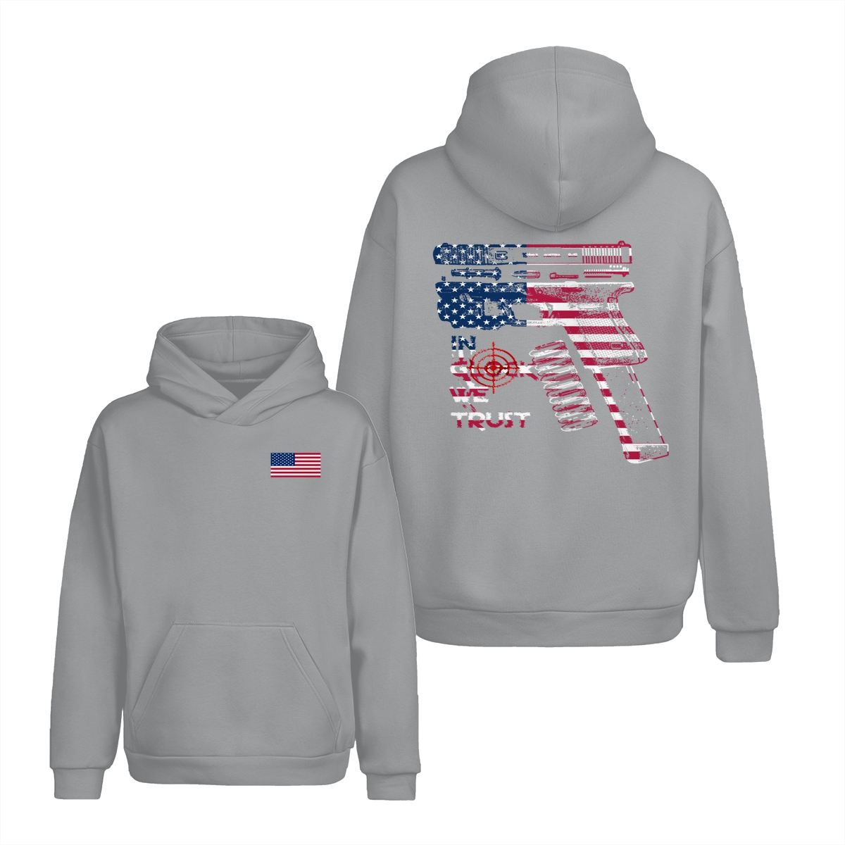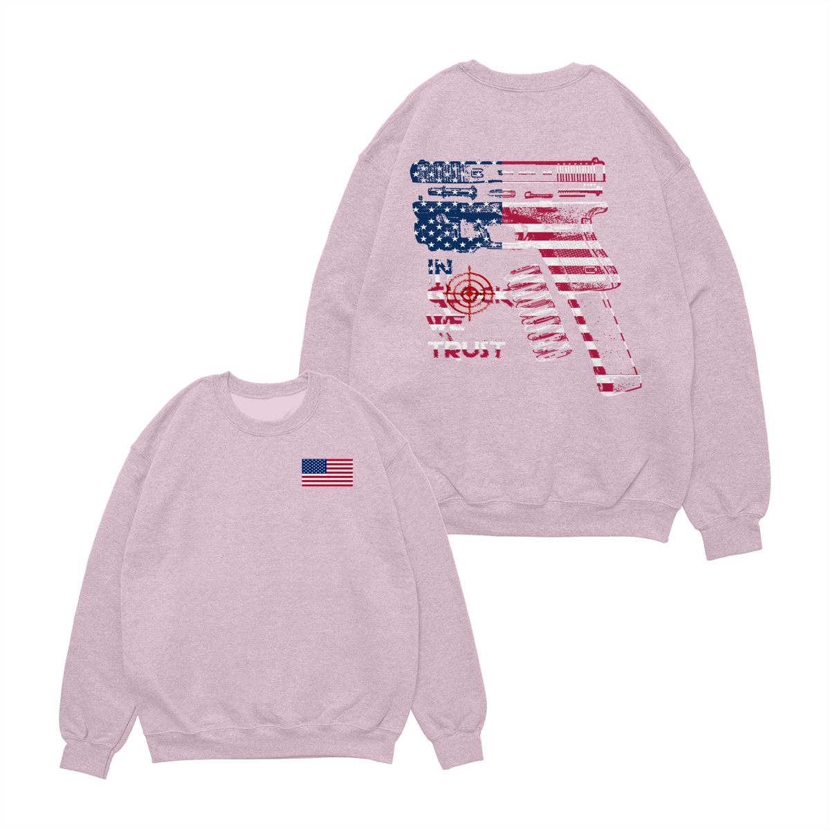In Glock We Trust USA Flag T-Shirt – Patriotic Gun Graphic Tee for Men, Classic Fit