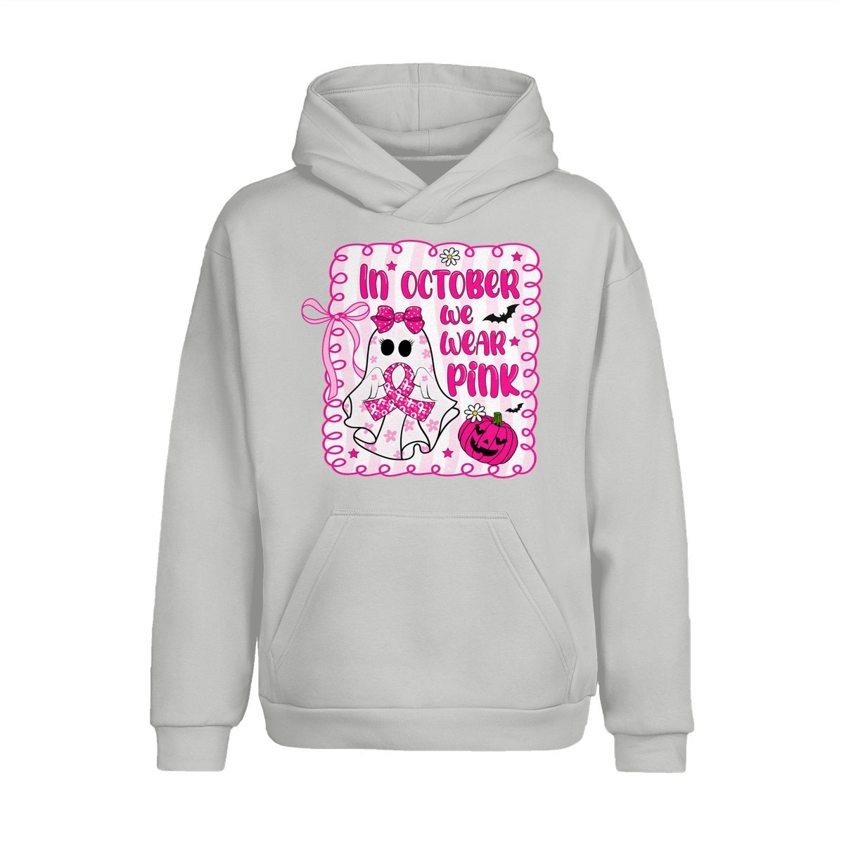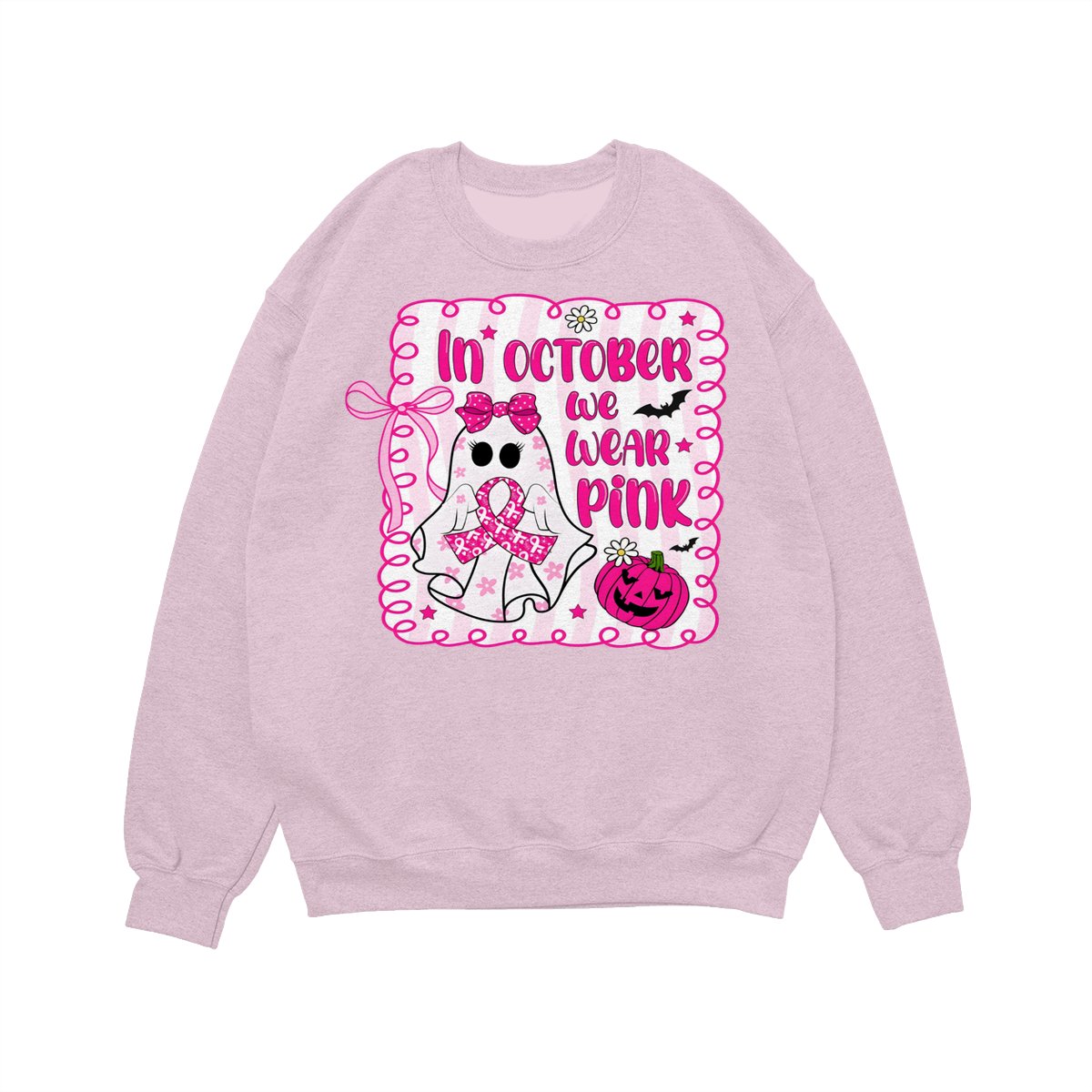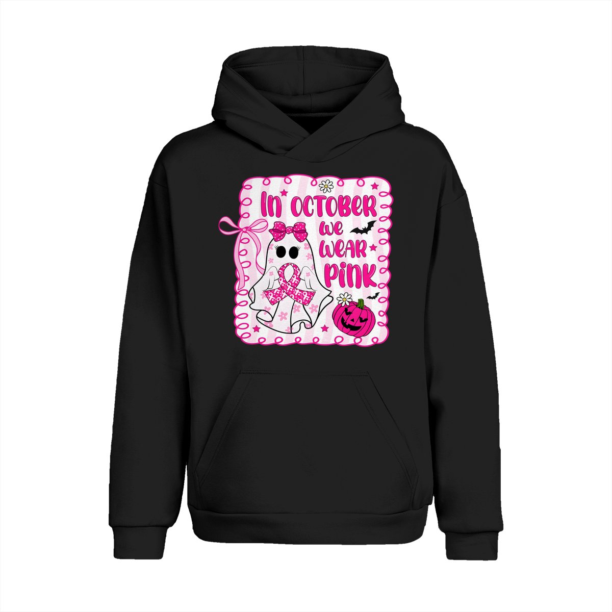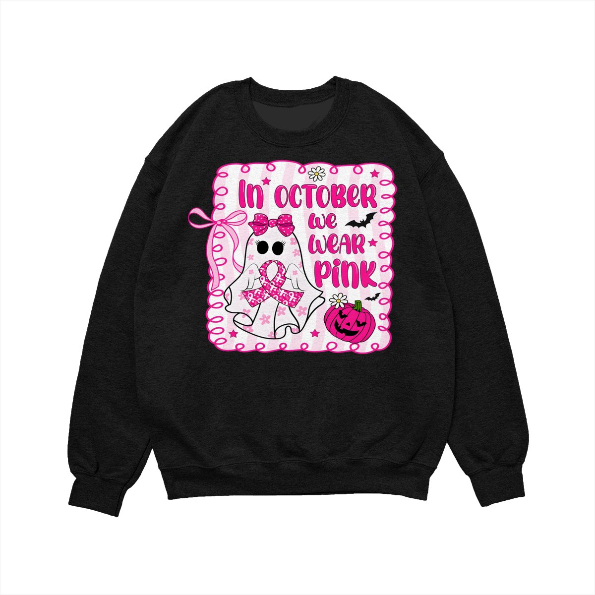 In October We Wear Pink Coquette Breast Cancer Cute Boo Tee, Halloween Pink Ghost Shirt, Breast Cancer Awareness Gifts, Gifts for Survivor