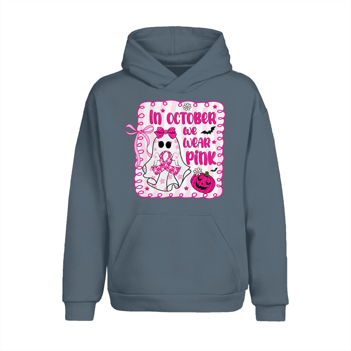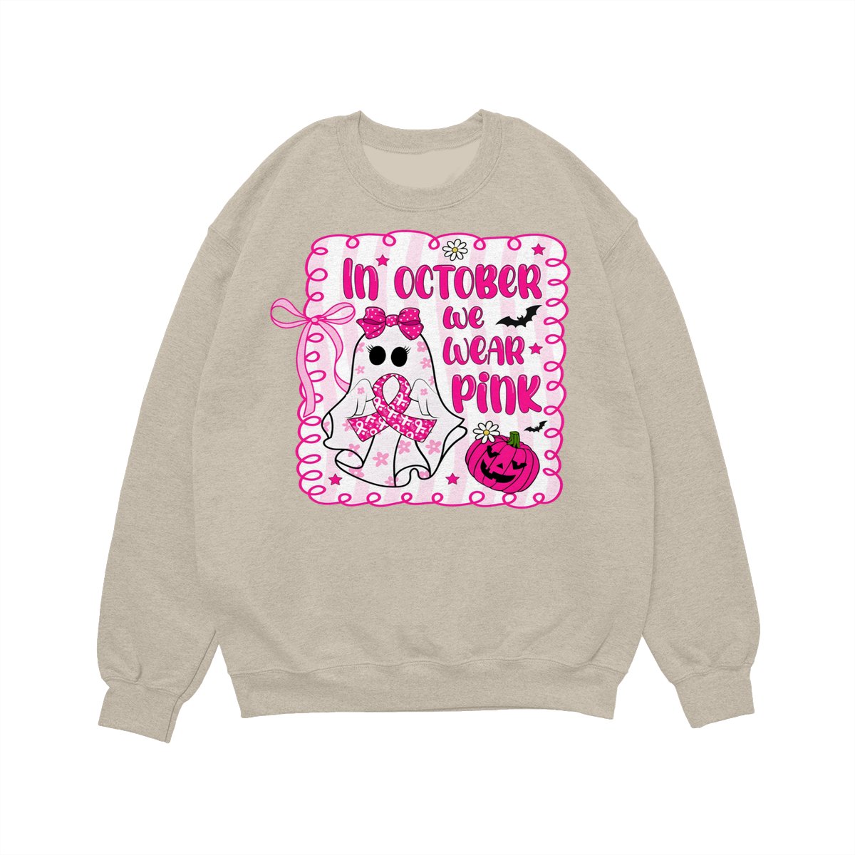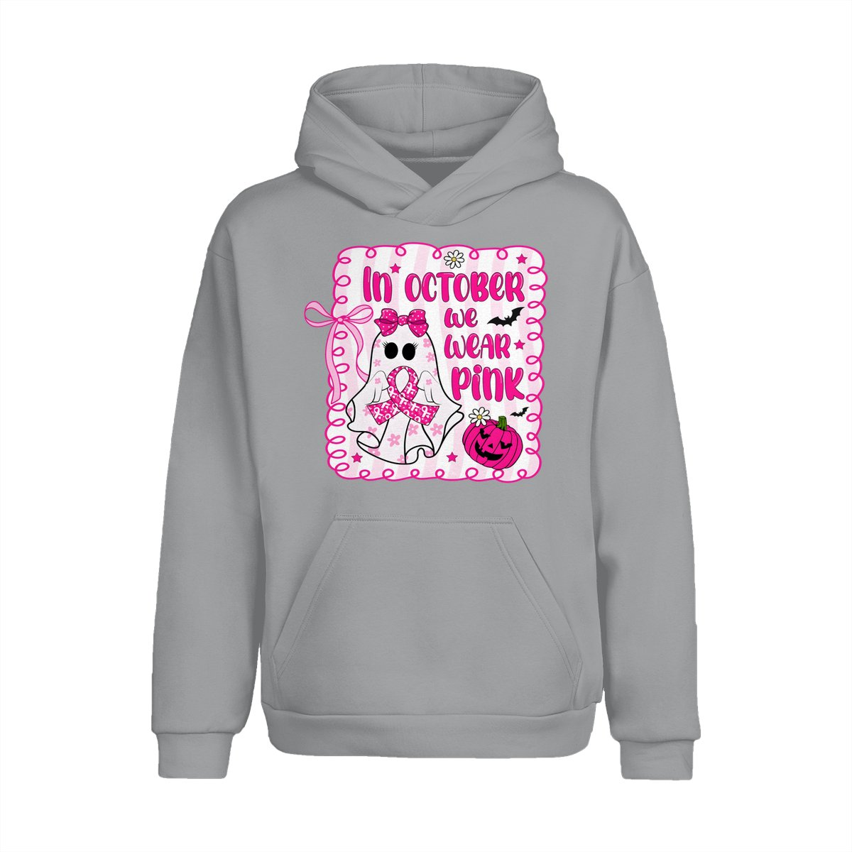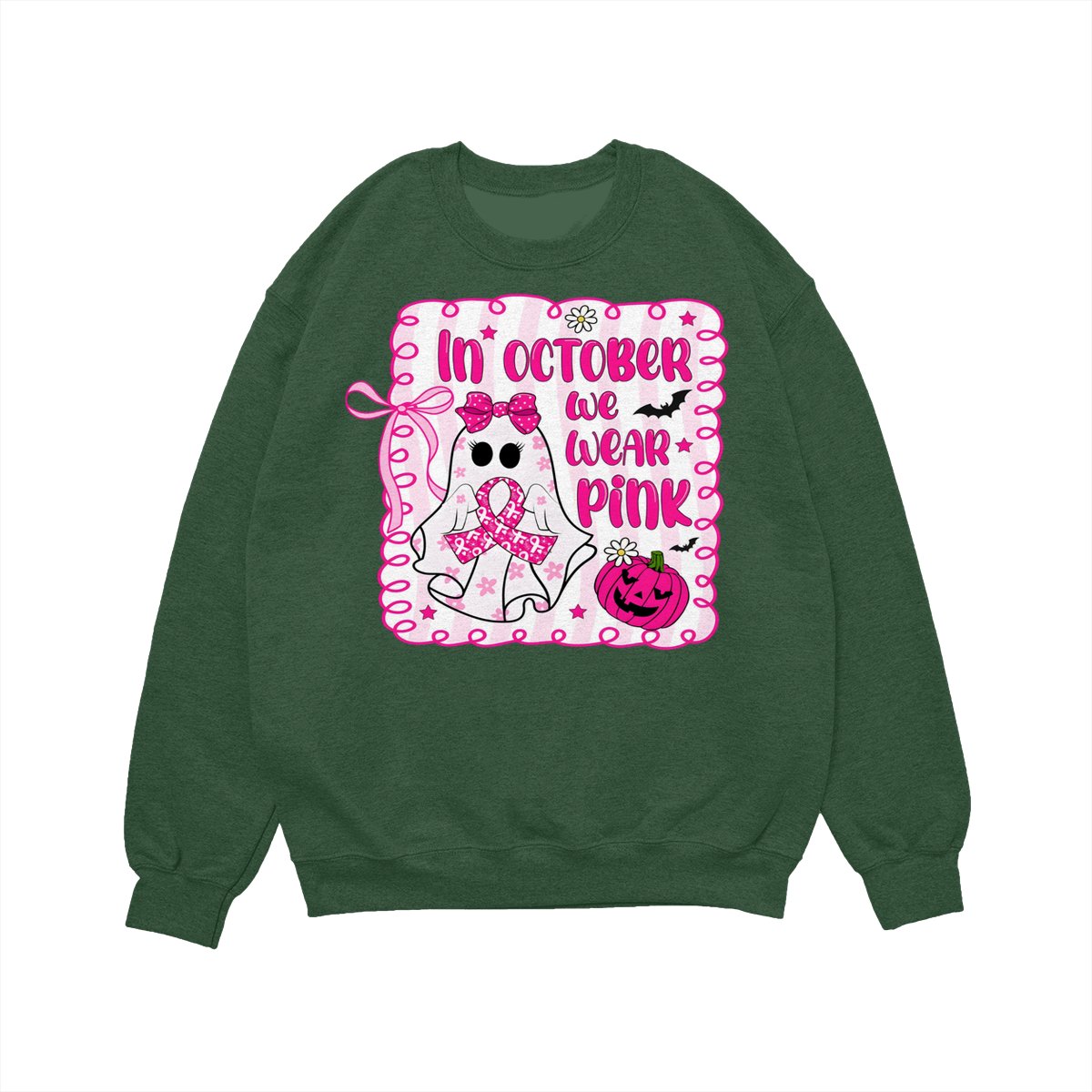 In October We Wear Pink Coquette Breast Cancer Cute Boo Tee, Halloween Pink Ghost Shirt, Breast Cancer Awareness Gifts, Gifts for Survivor
