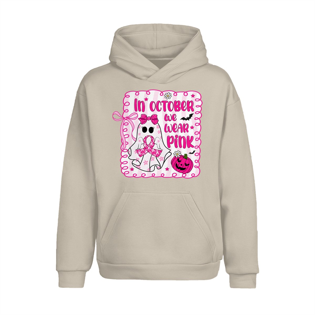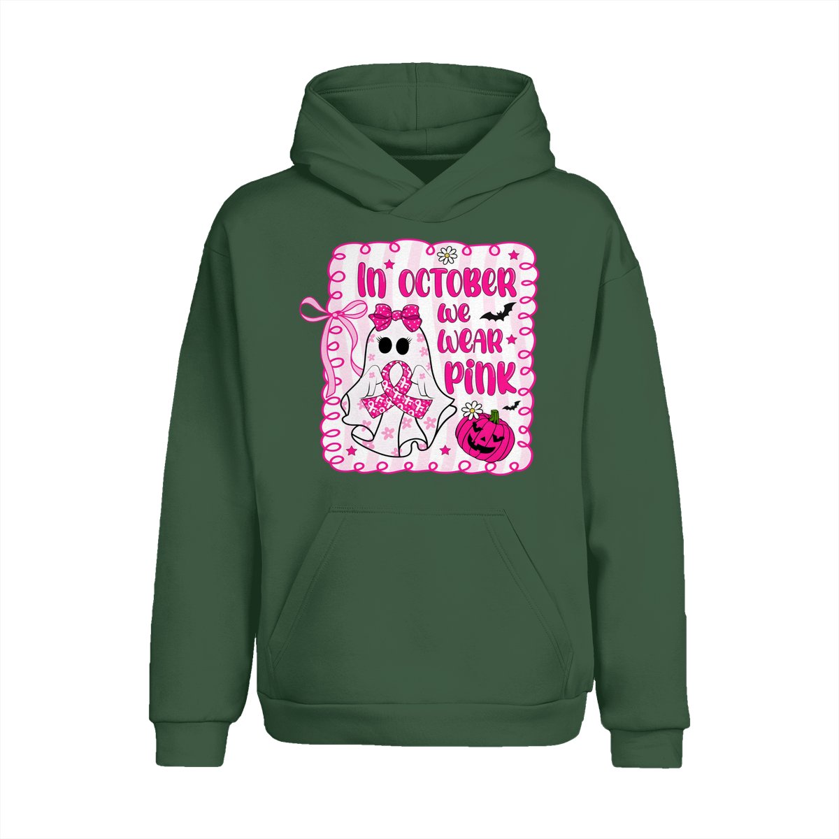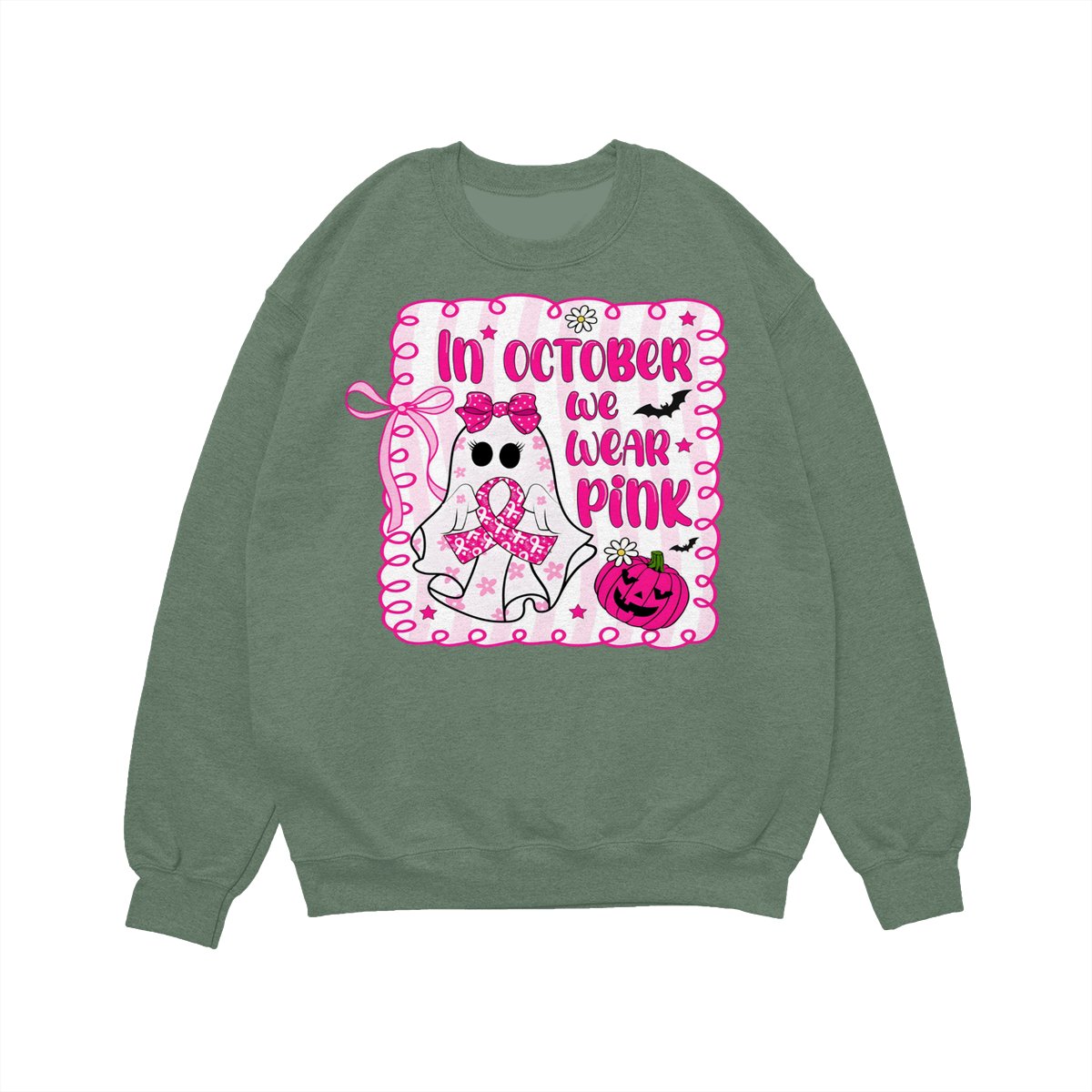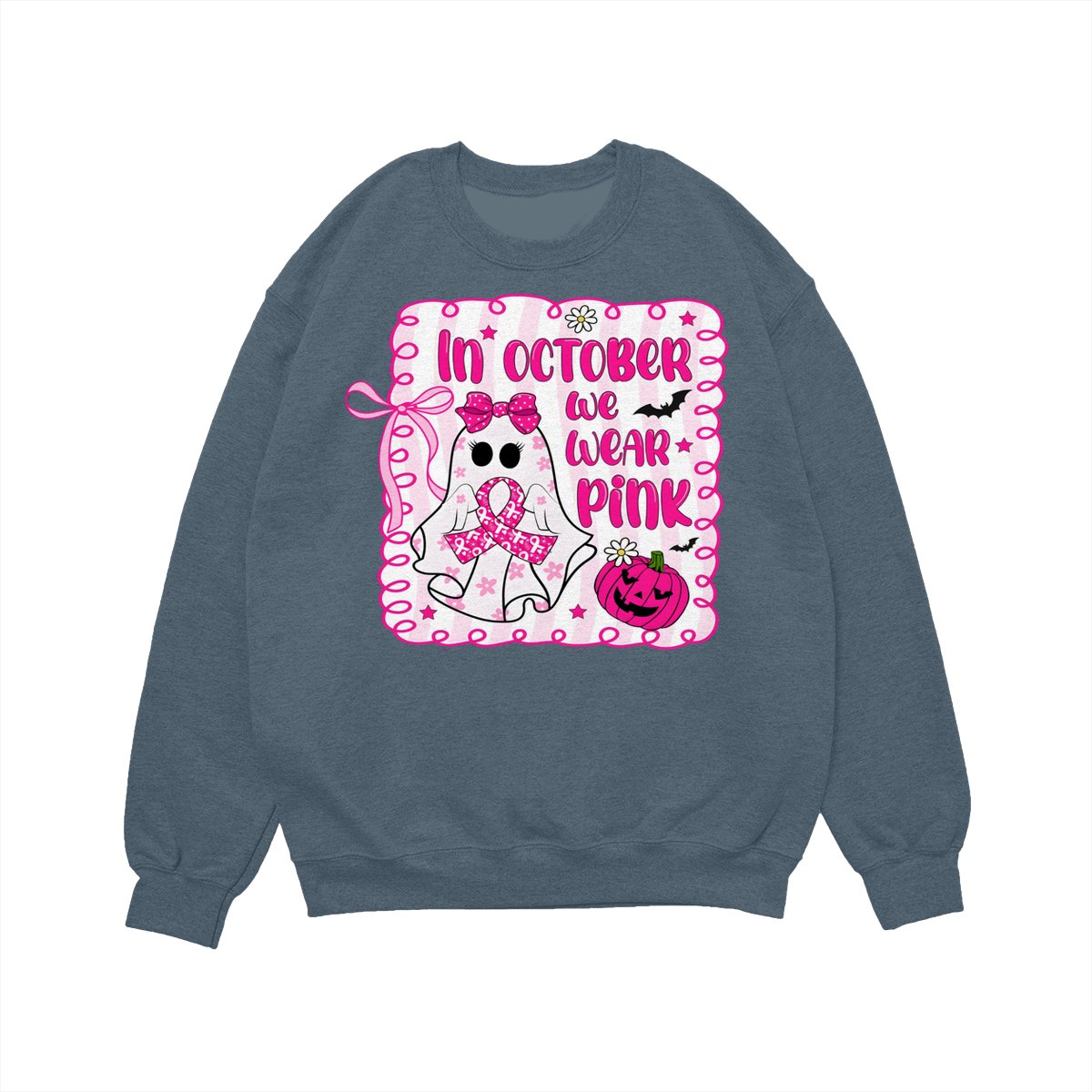 In October We Wear Pink Coquette Breast Cancer Cute Boo Tee, Halloween Pink Ghost Shirt, Breast Cancer Awareness Gifts, Gifts for Survivor