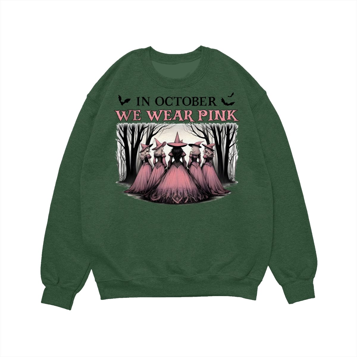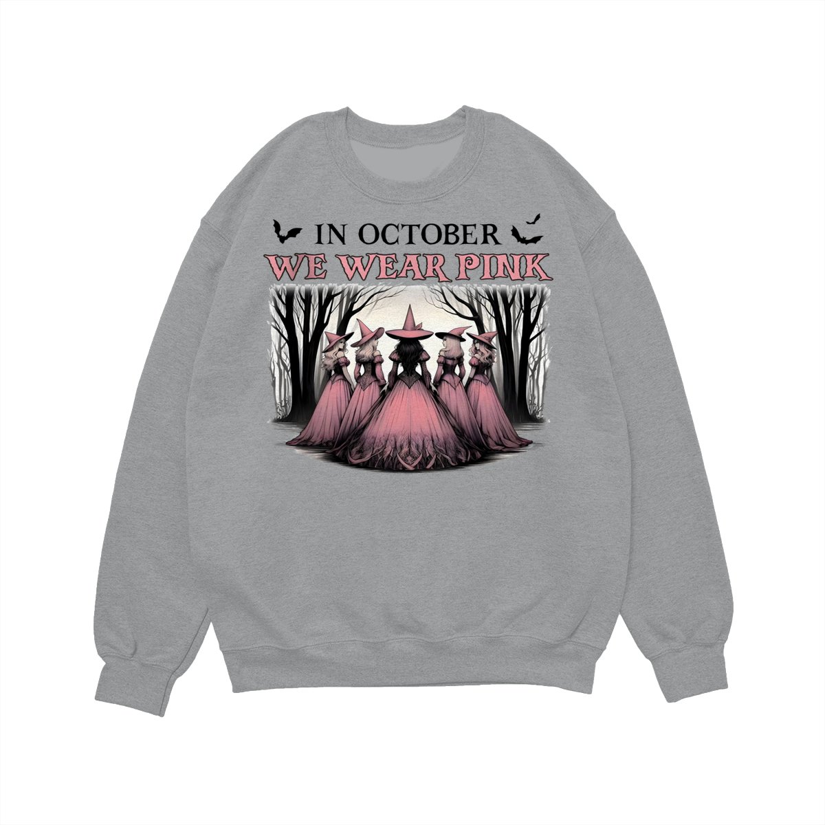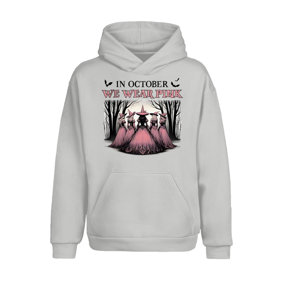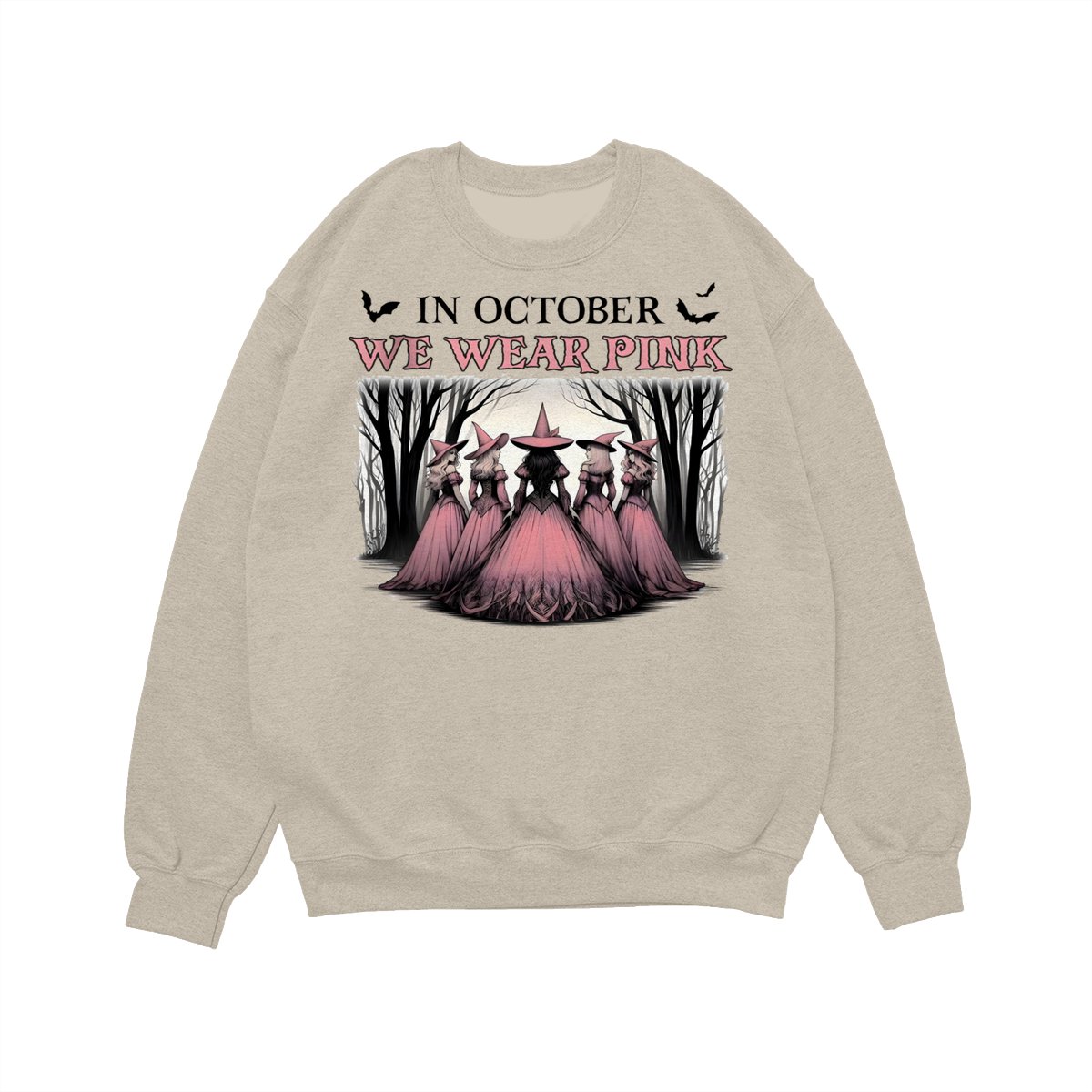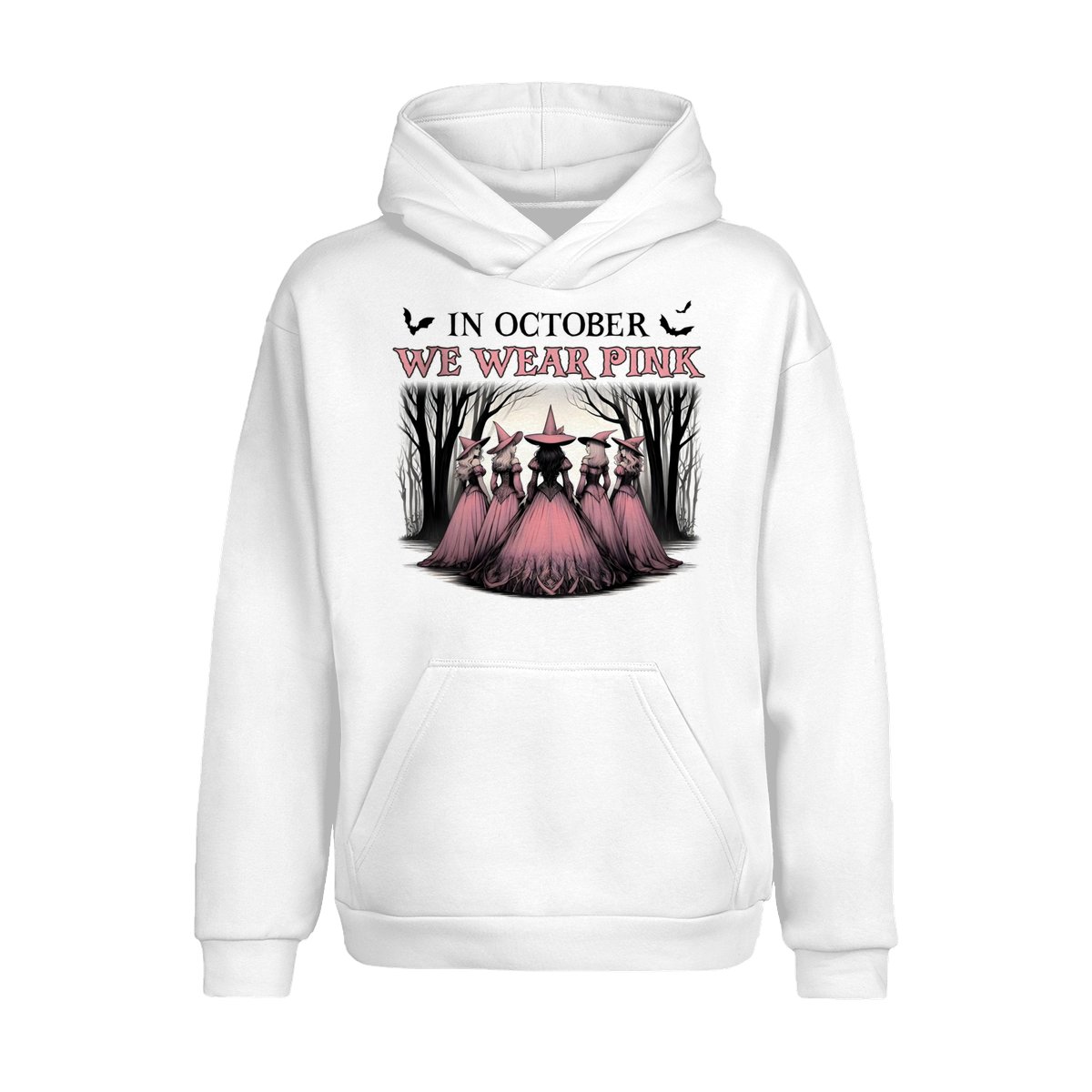 In October We Wear Pink Shirt, Breast Cancer Awareness Tee, Retro Halloween Ghost T-Shirt, Cute Witch Top, Pink Ribbon Support Gift Idea Design 0