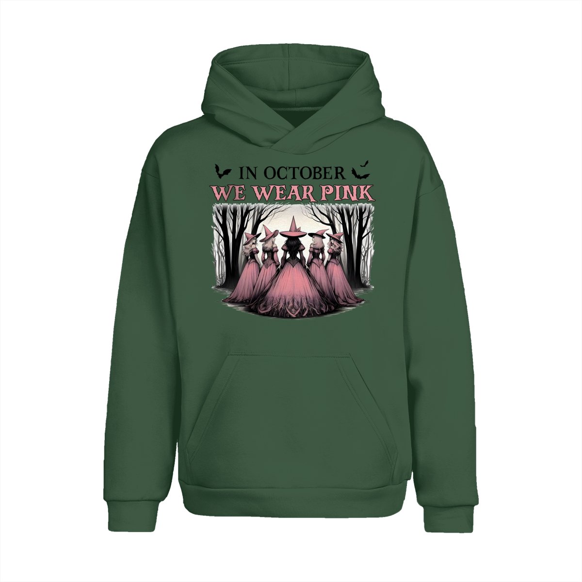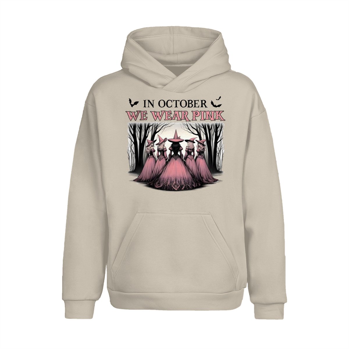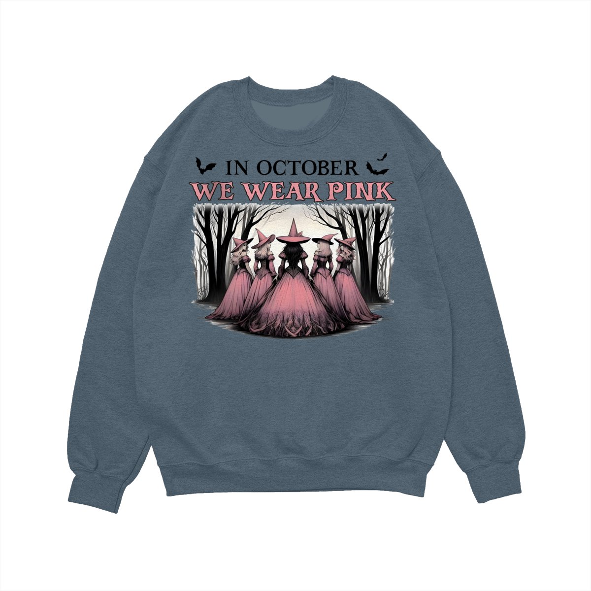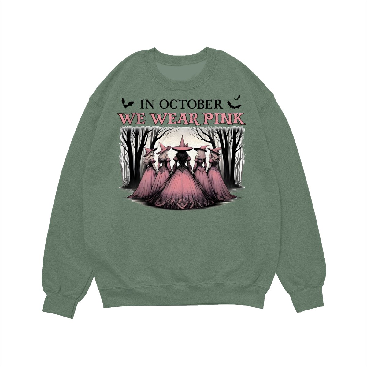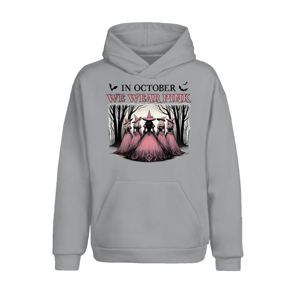 In October We Wear Pink Shirt, Breast Cancer Awareness Tee, Retro Halloween Ghost T-Shirt, Cute Witch Top, Pink Ribbon Support Gift Idea Design 0