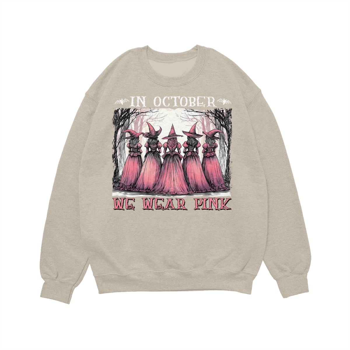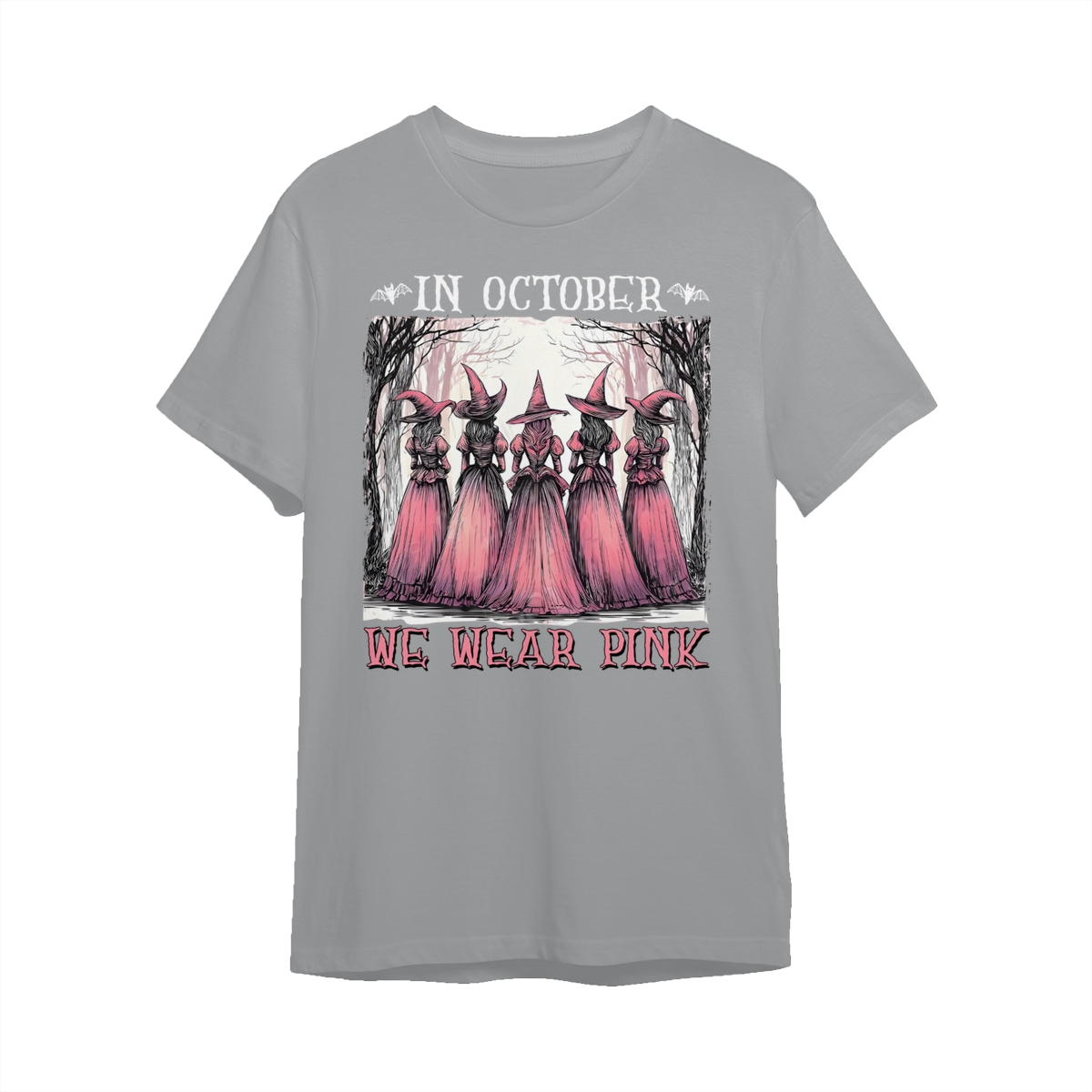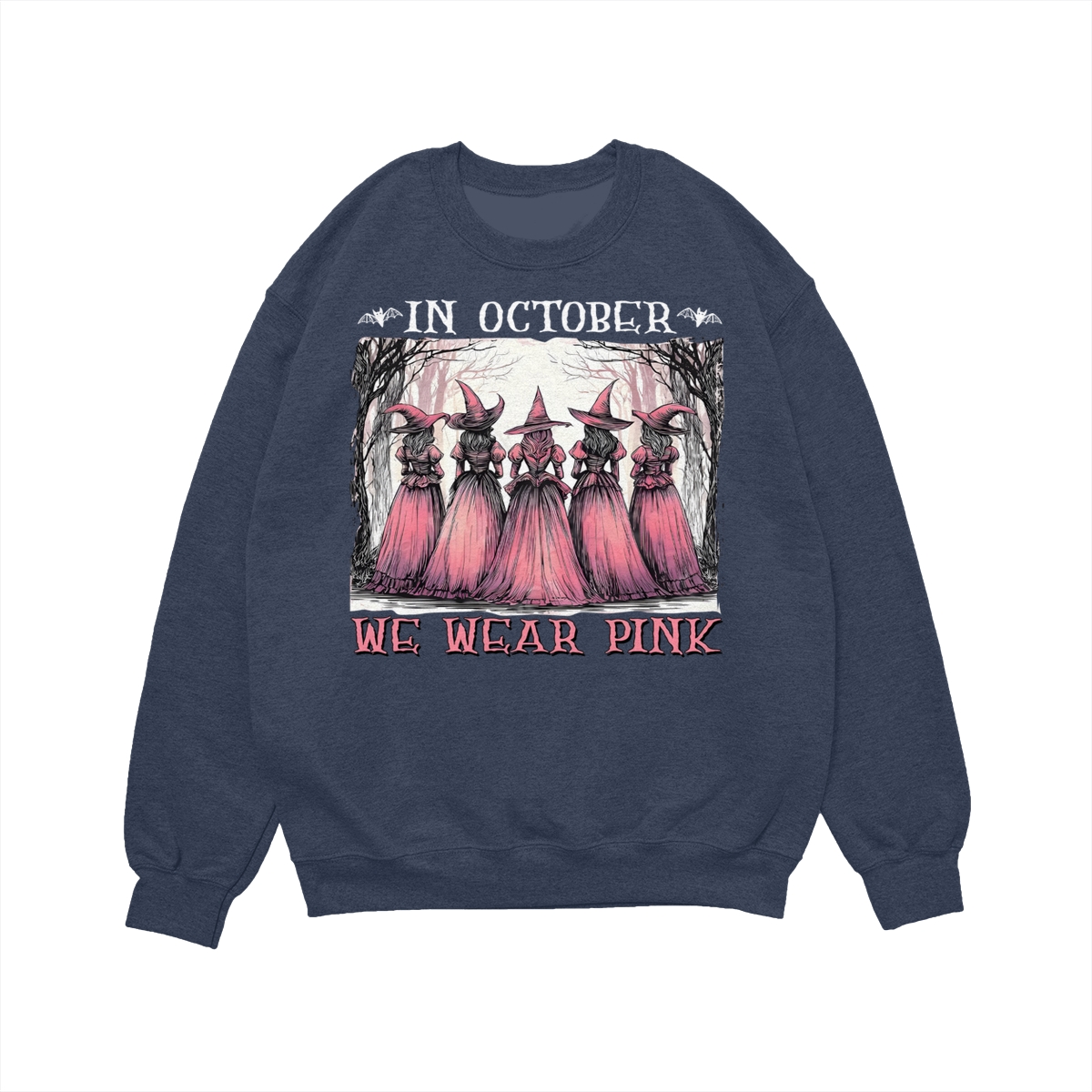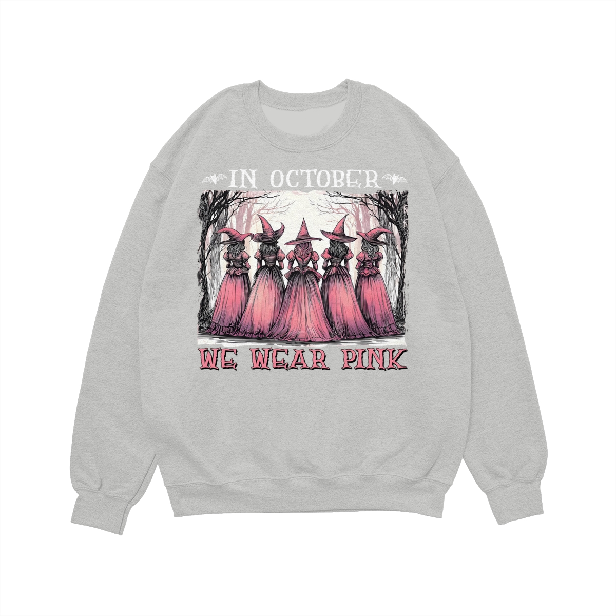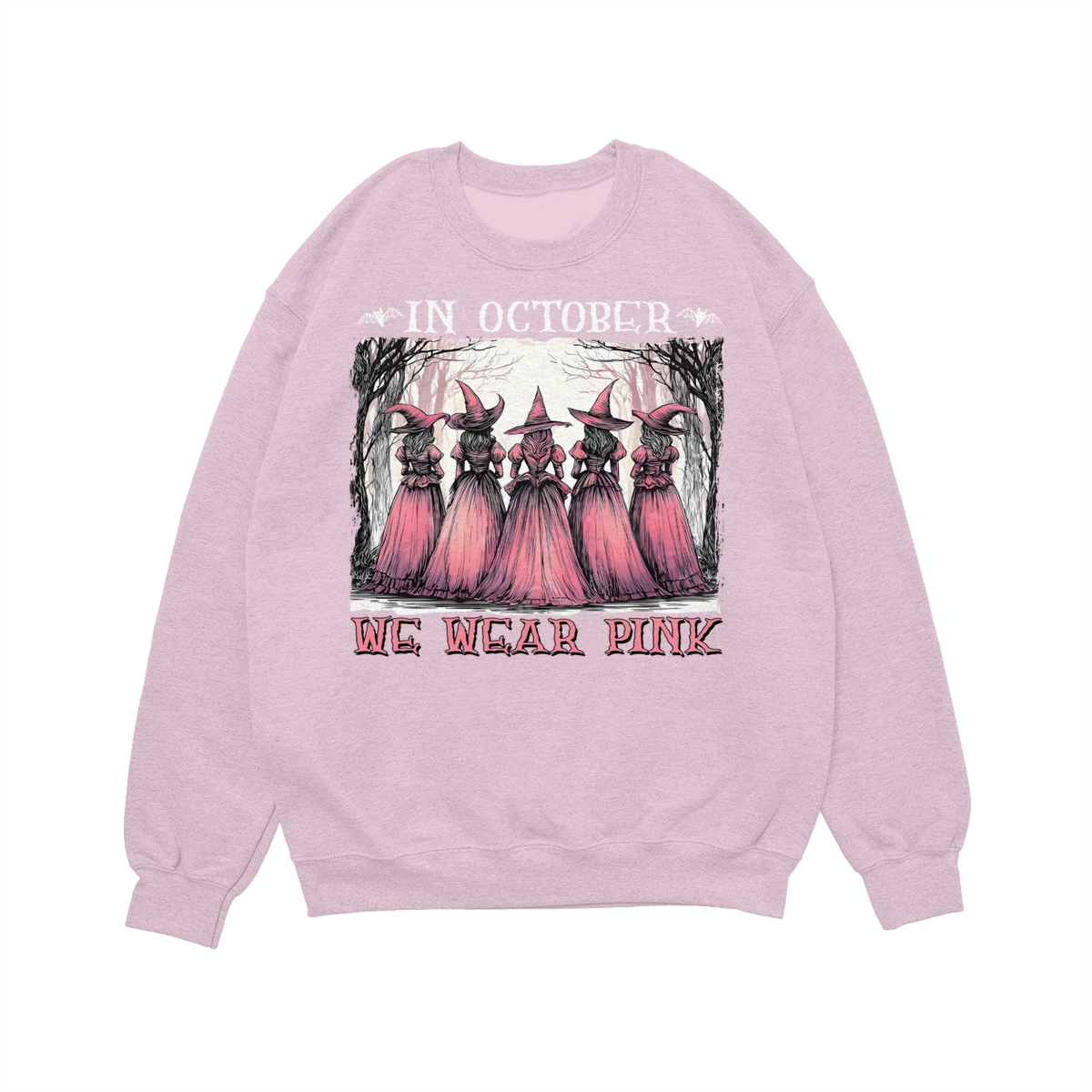 In October We Wear Pink T-Shirt, Breast Cancer Awareness Gifts, Pink Halloween Witch Shirt, Cancer Ribbon Shirt, Witch Breast Cancer Sweatshirt Hoodie