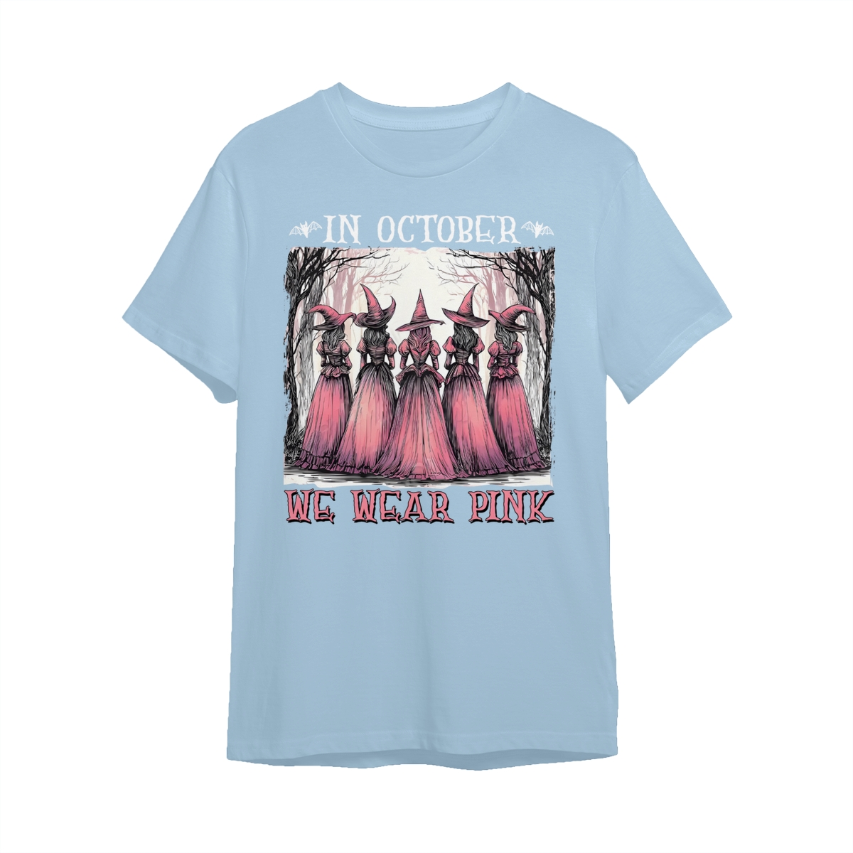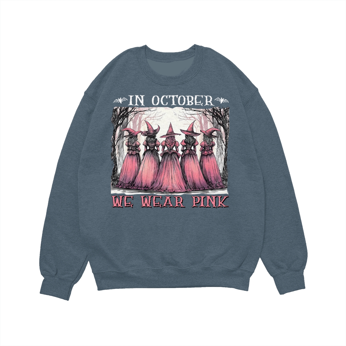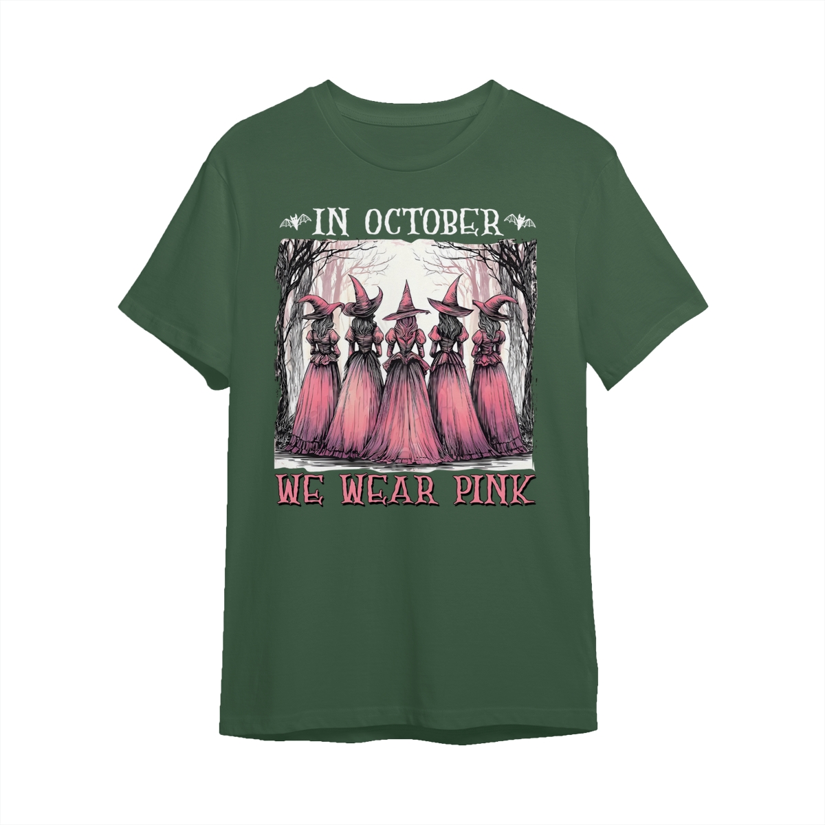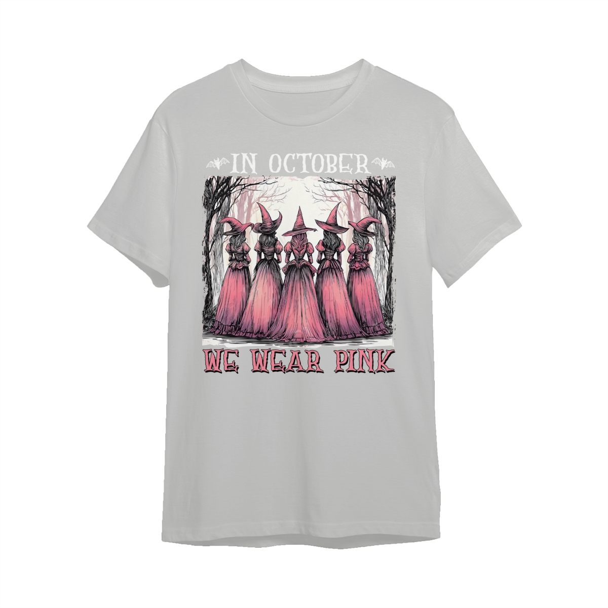 In October We Wear Pink T-Shirt, Breast Cancer Awareness Gifts, Pink Halloween Witch Shirt, Cancer Ribbon Shirt, Witch Breast Cancer Sweatshirt Hoodie