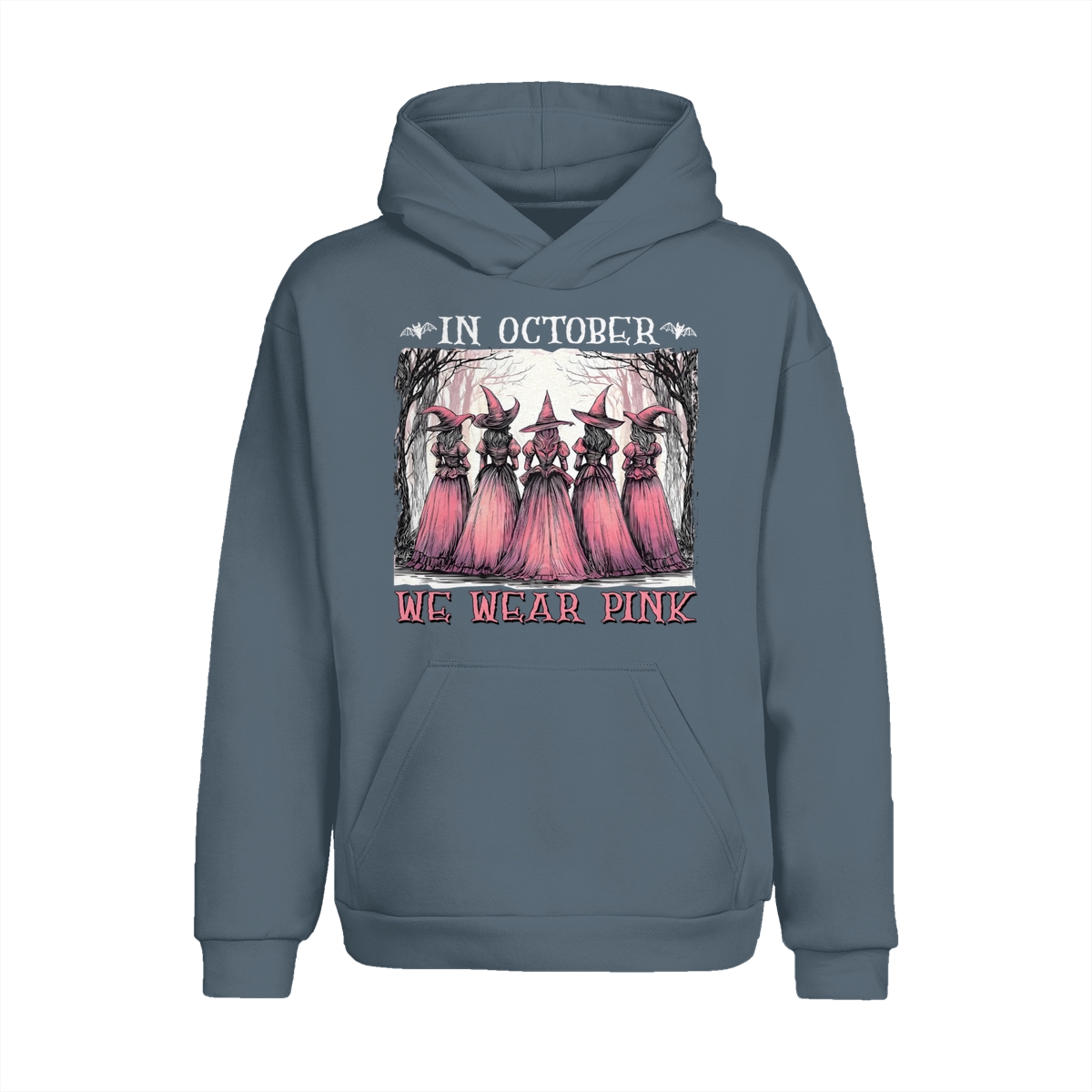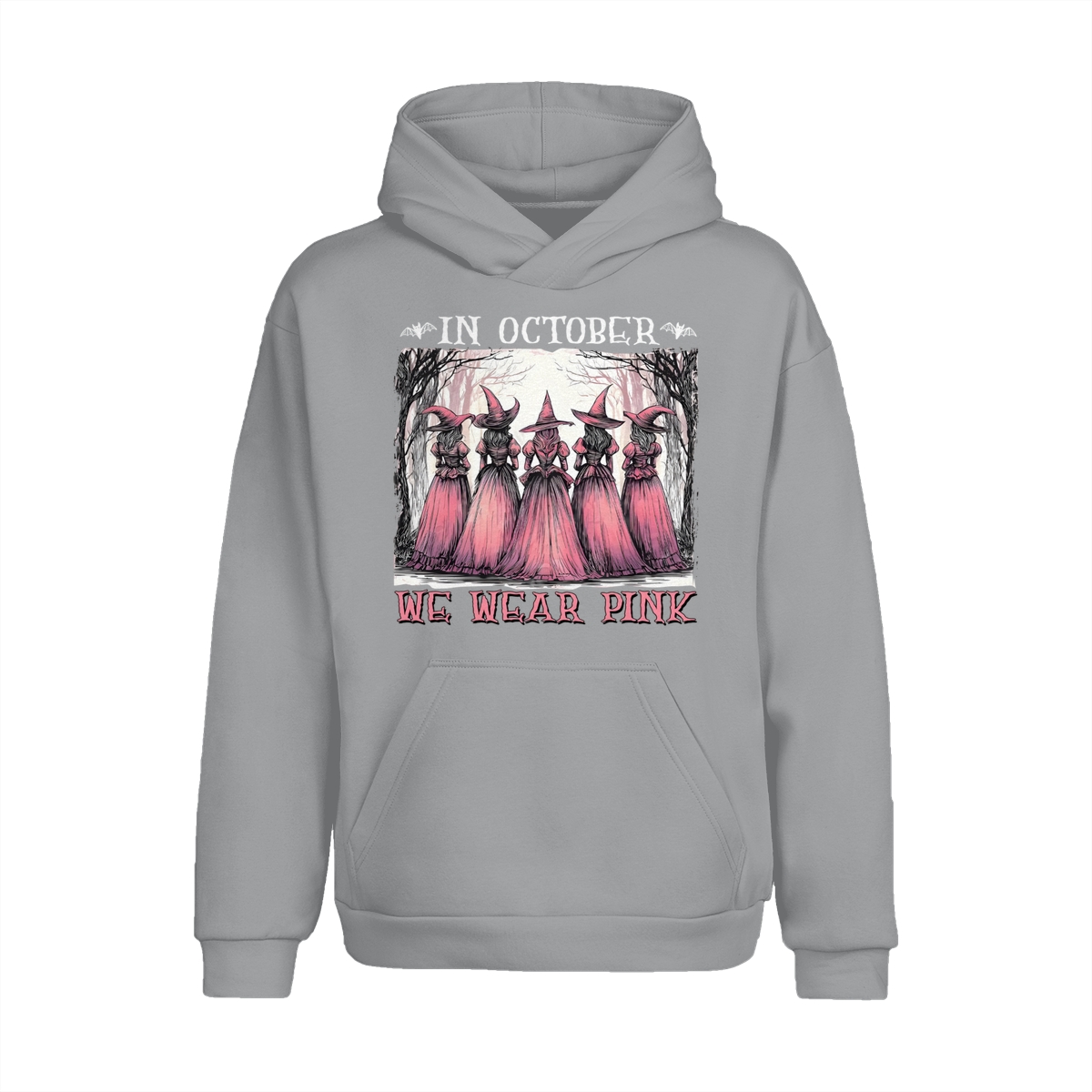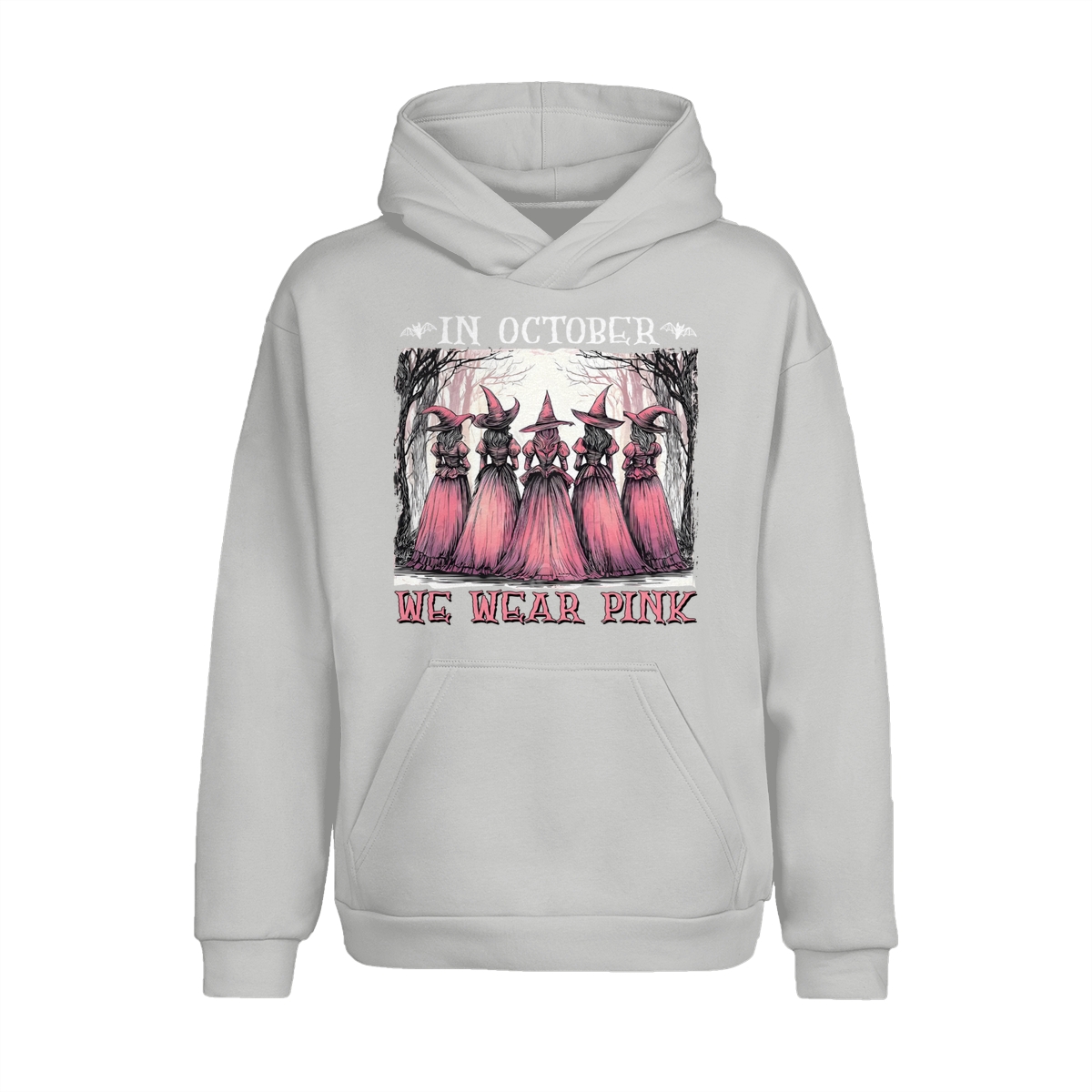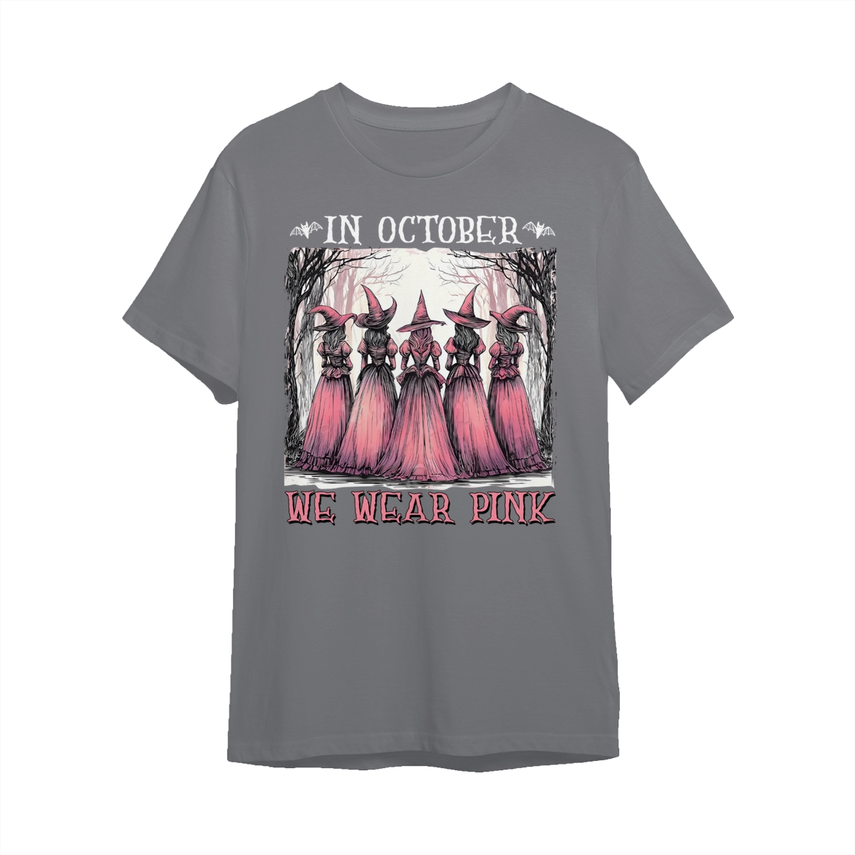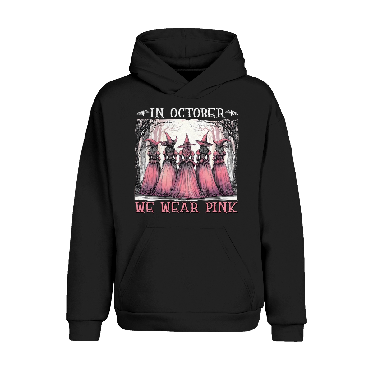 In October We Wear Pink T-Shirt, Breast Cancer Awareness Gifts, Pink Halloween Witch Shirt, Cancer Ribbon Shirt, Witch Breast Cancer Sweatshirt Hoodie