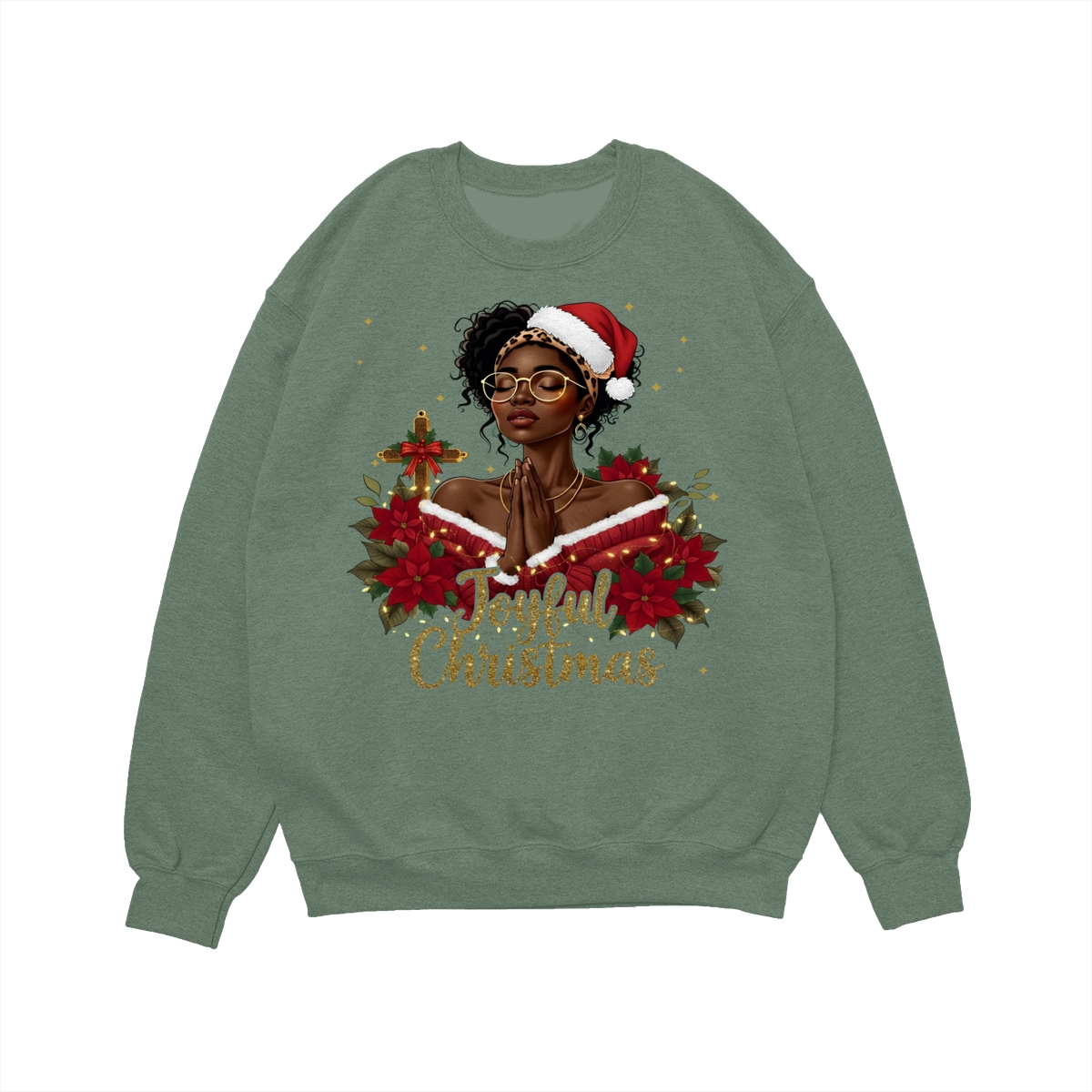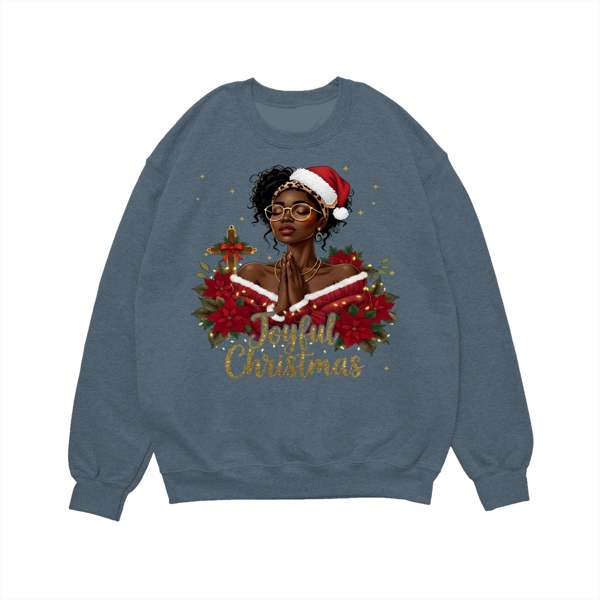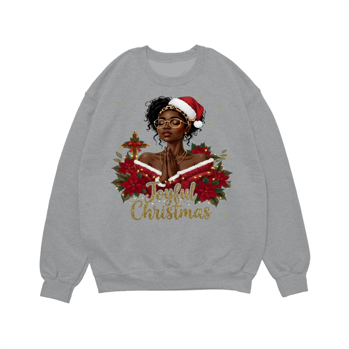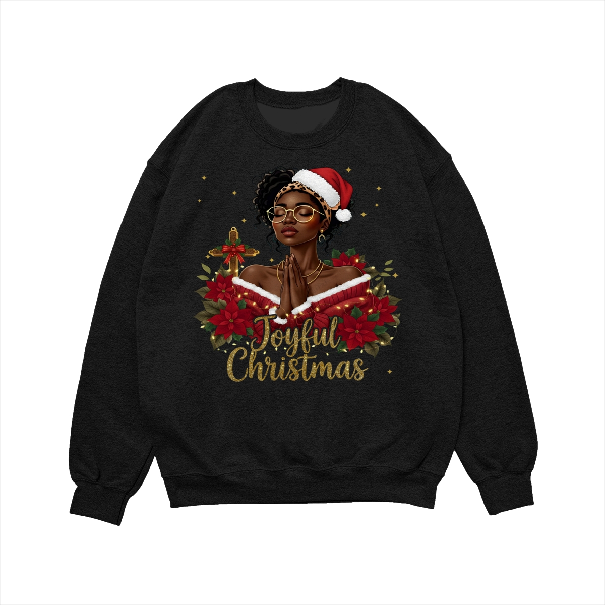 Joyful Christmas Black Afro Woman Wear Santa Hat Praying Sweater, Holiday Black Christian Sweatshirt, Melanin Xmas Gifts for Black Women