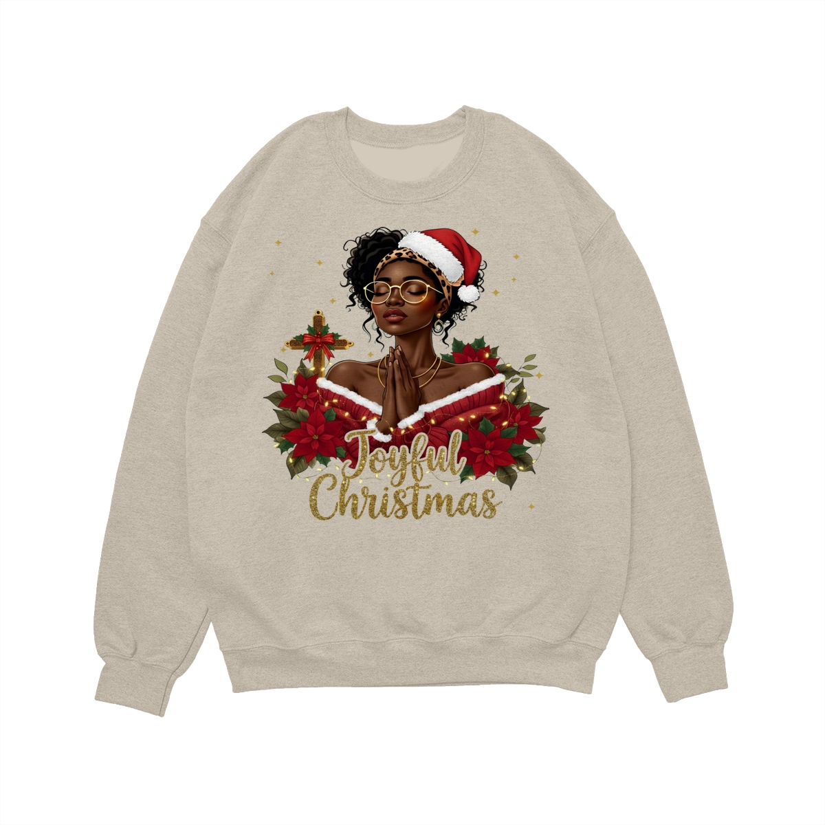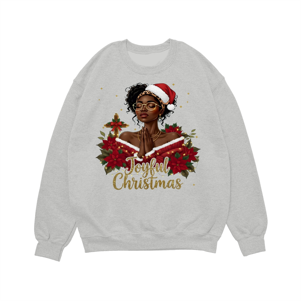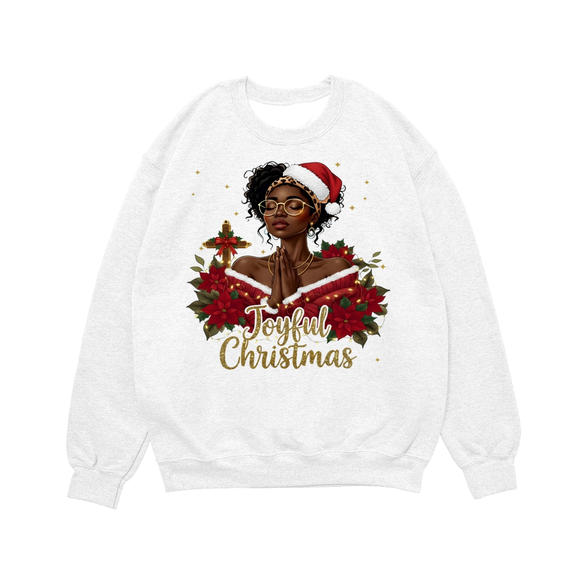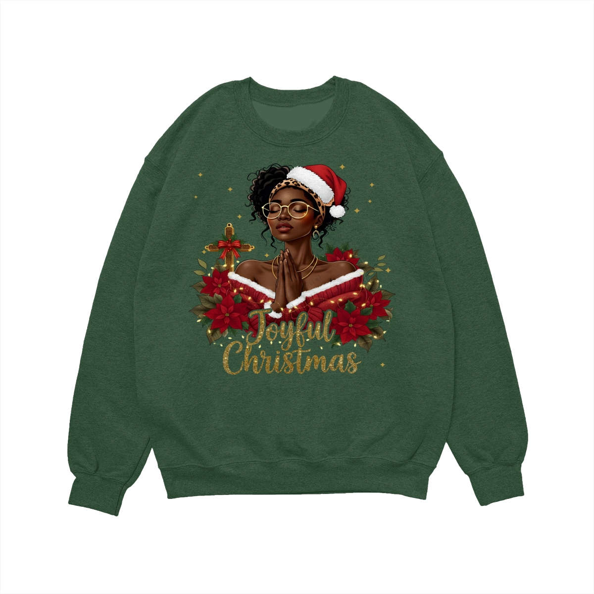 Joyful Christmas Black Afro Woman Wear Santa Hat Praying Sweater, Holiday Black Christian Sweatshirt, Melanin Xmas Gifts for Black Women