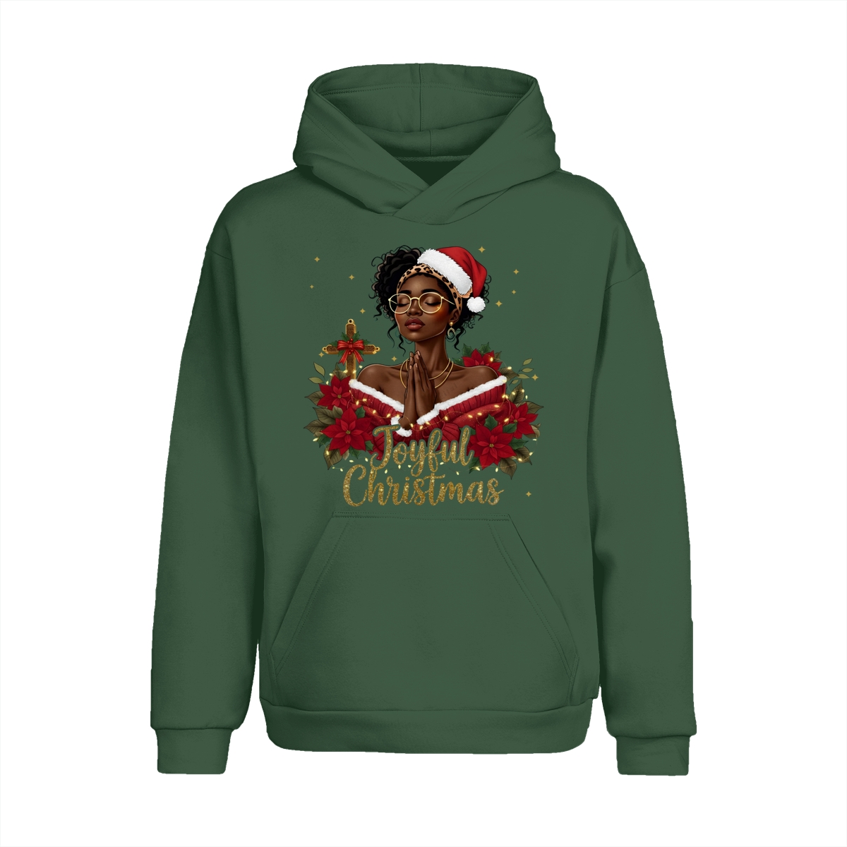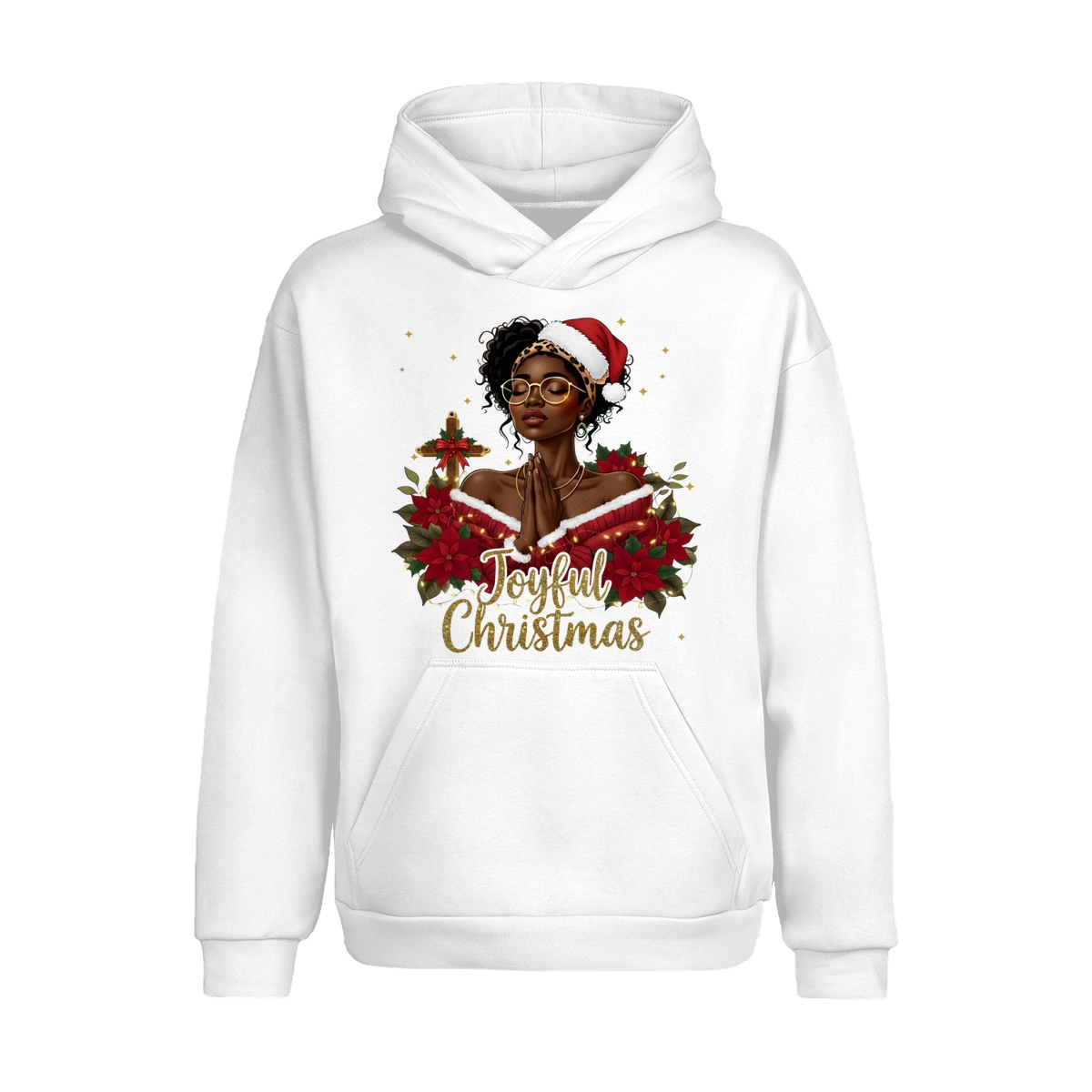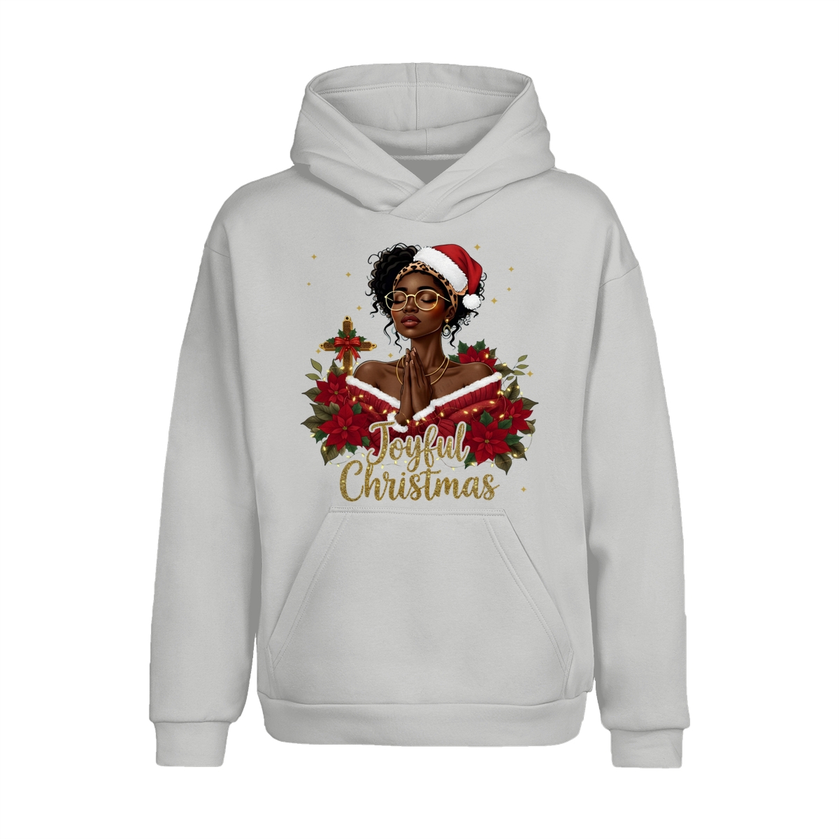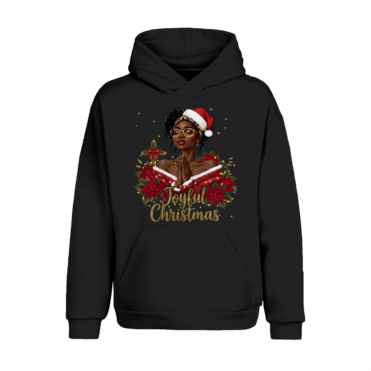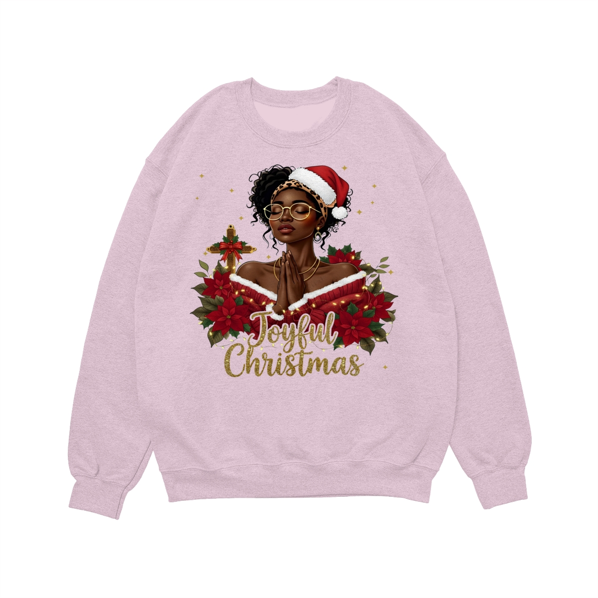 Joyful Christmas Black Afro Woman Wear Santa Hat Praying Sweater, Holiday Black Christian Sweatshirt, Melanin Xmas Gifts for Black Women