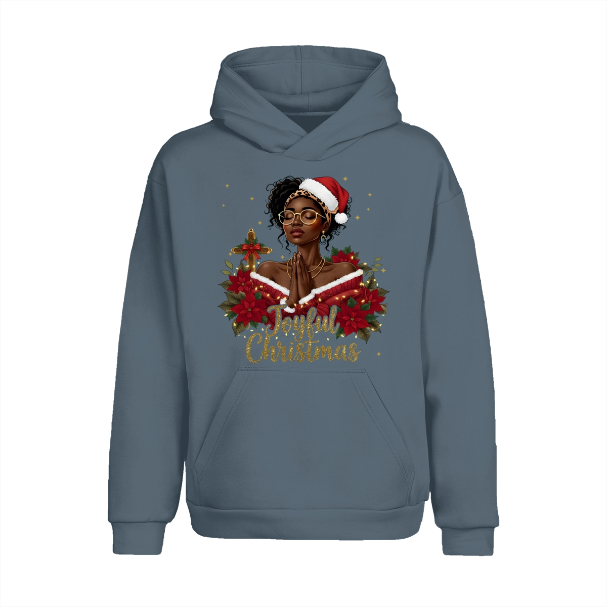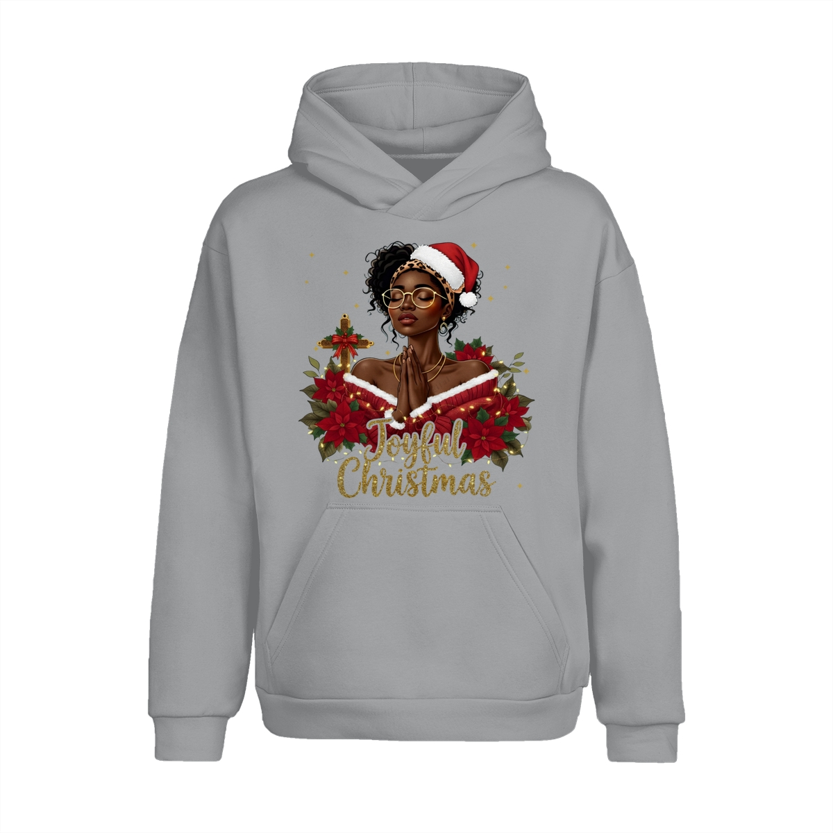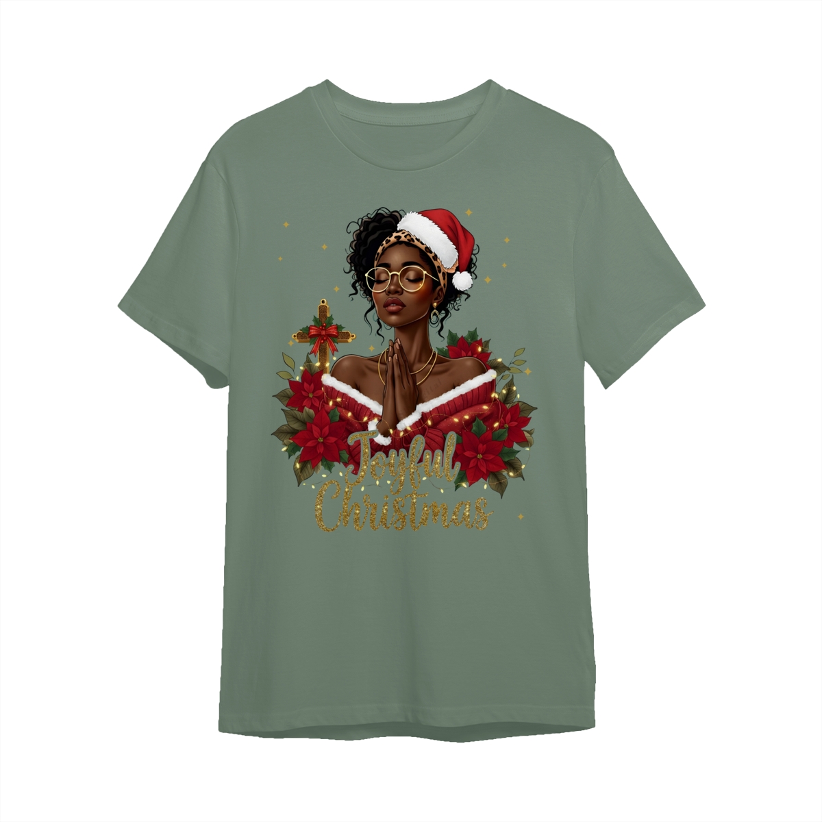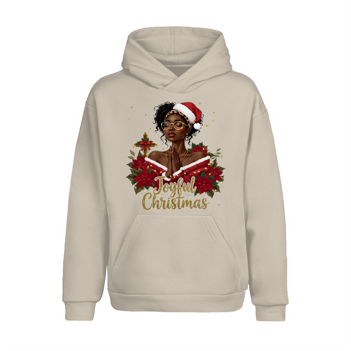 Joyful Christmas Black Afro Woman Wear Santa Hat Praying Sweater, Holiday Black Christian Sweatshirt, Melanin Xmas Gifts for Black Women