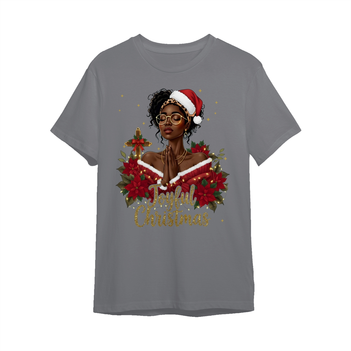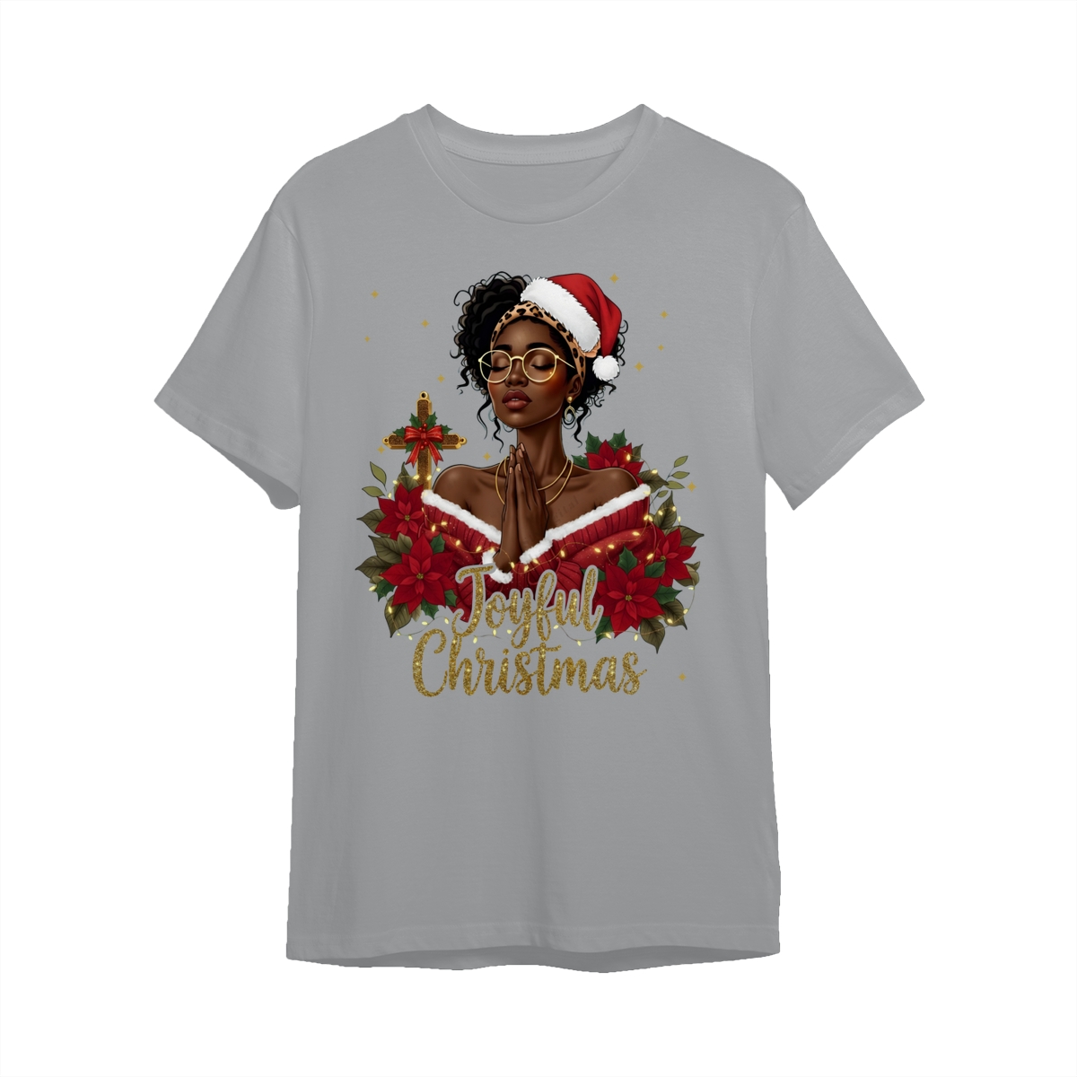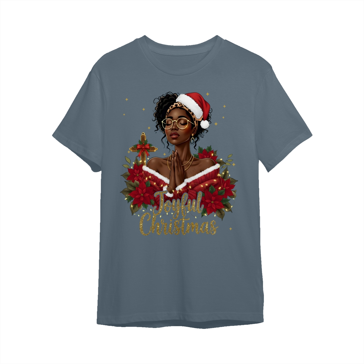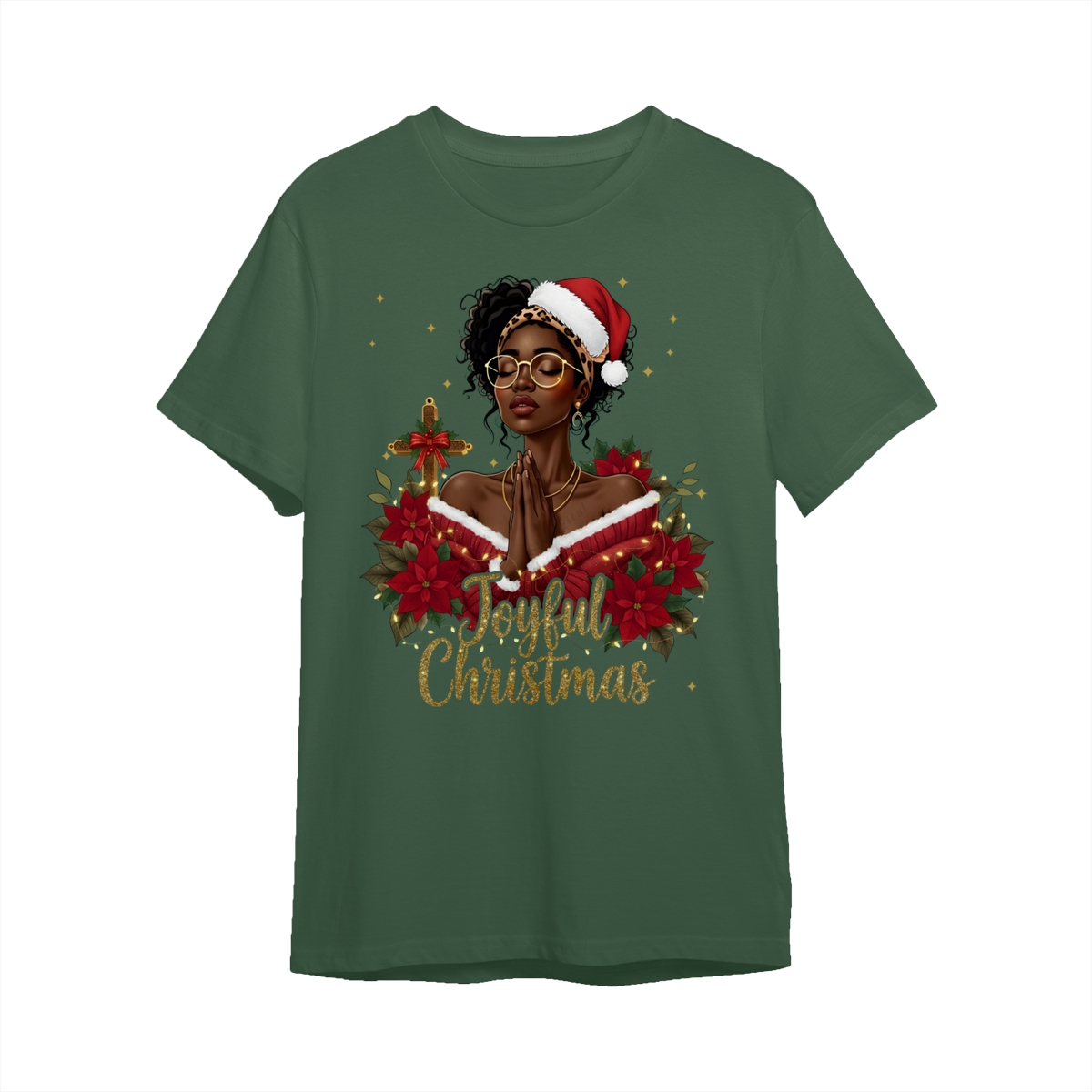 Joyful Christmas Black Afro Woman Wear Santa Hat Praying Sweater, Holiday Black Christian Sweatshirt, Melanin Xmas Gifts for Black Women