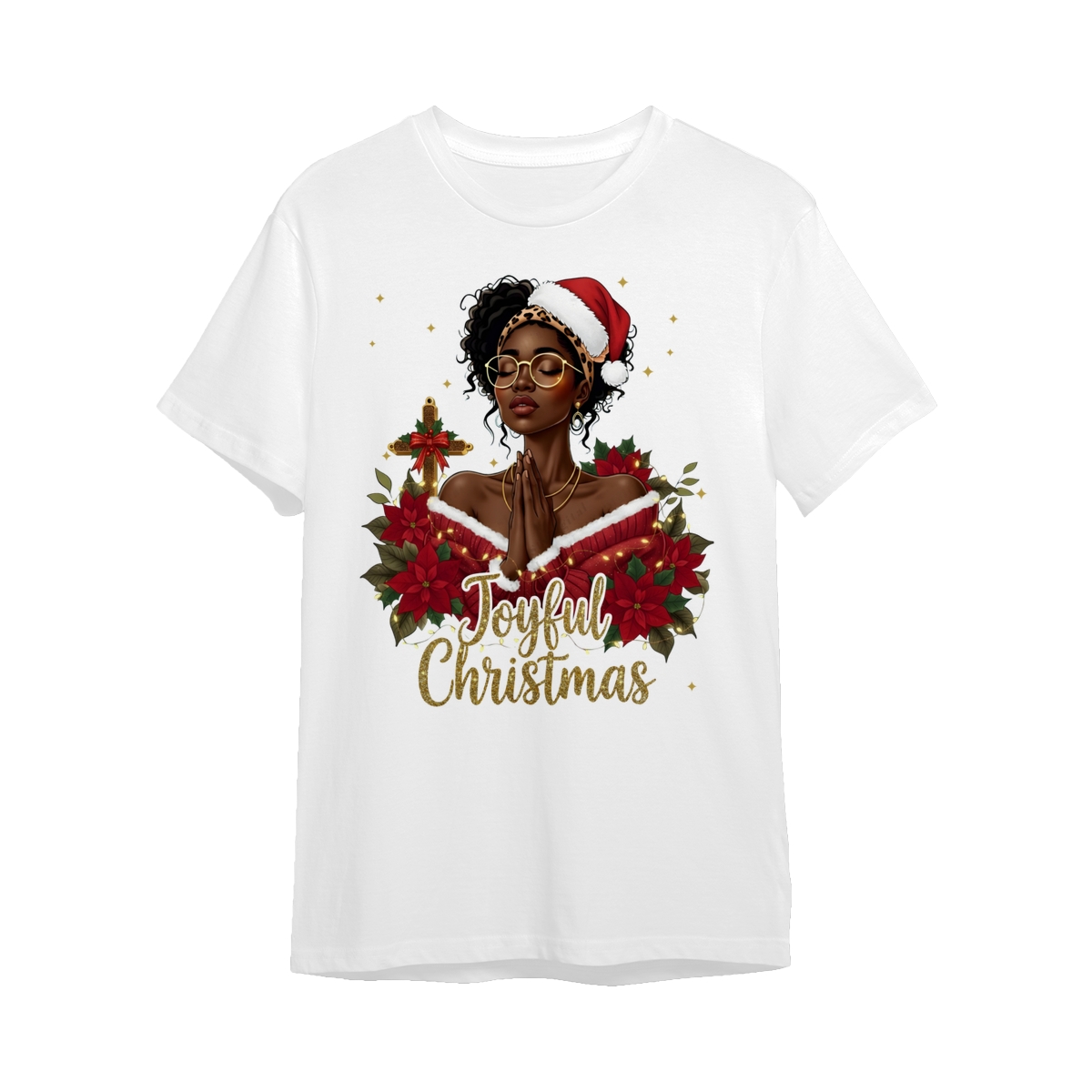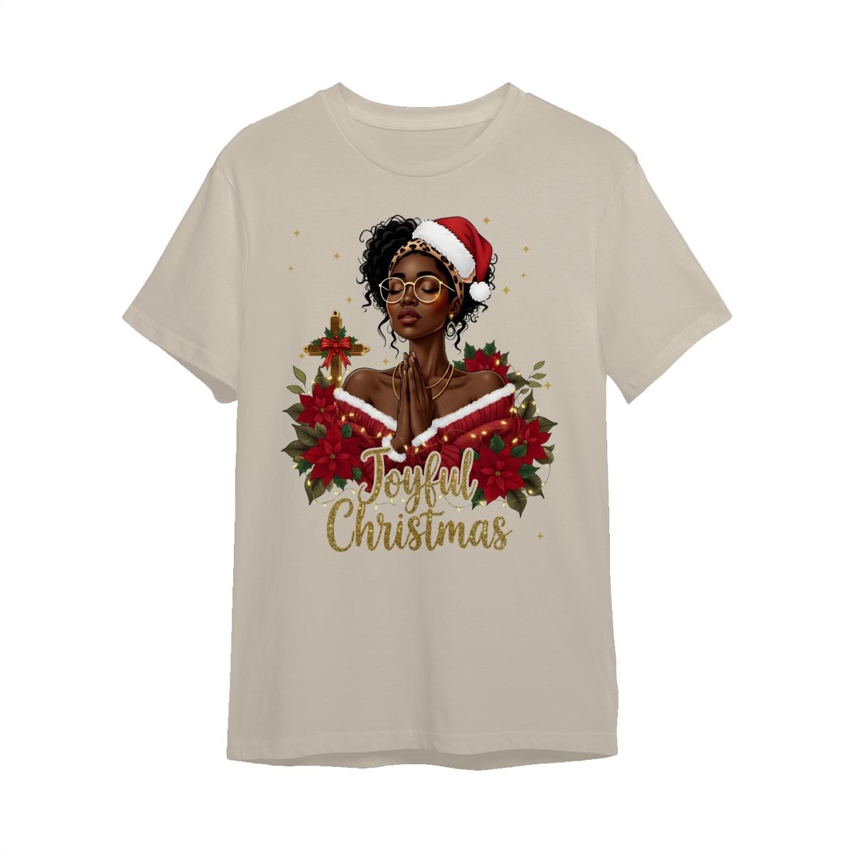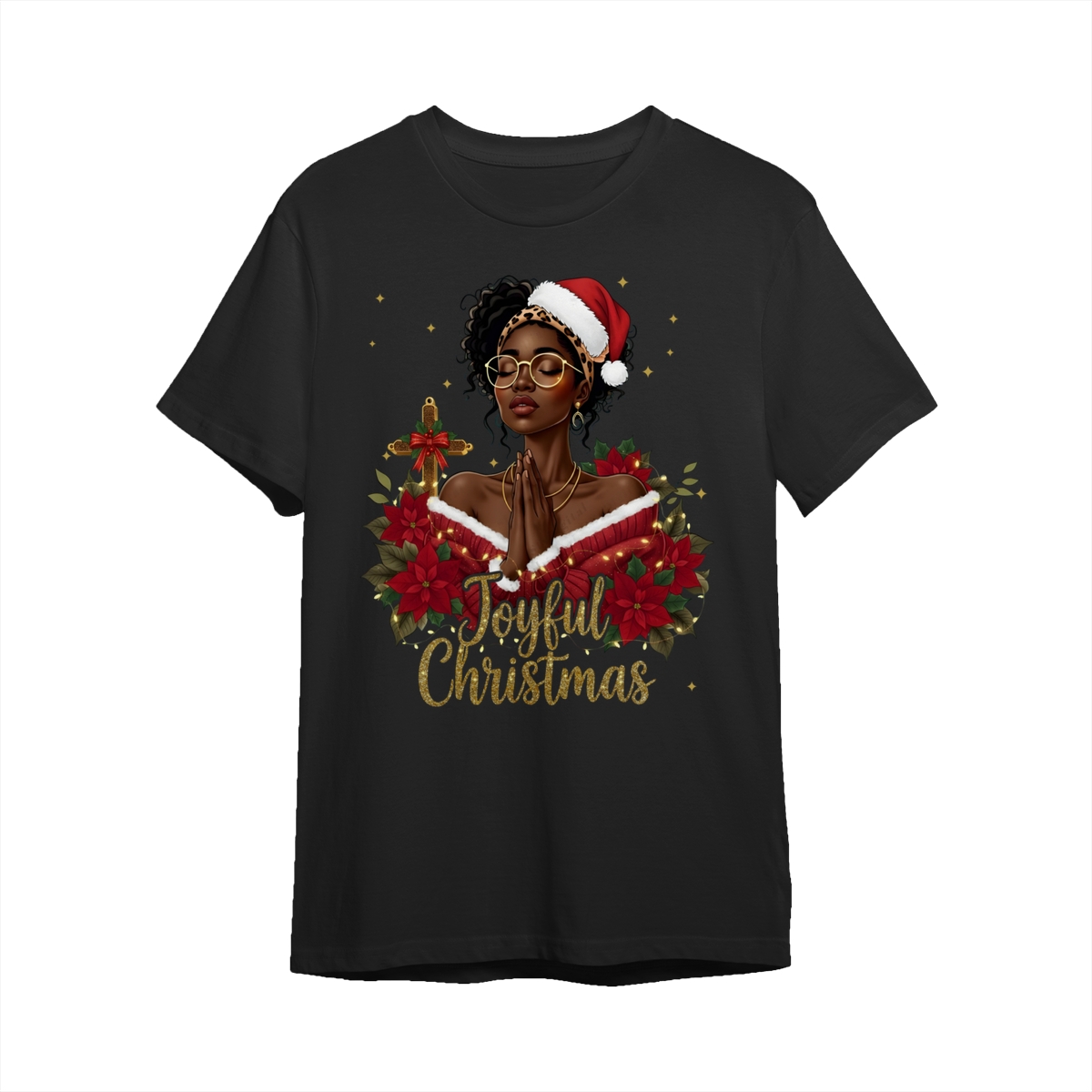 Joyful Christmas Black Afro Woman Wear Santa Hat Praying Sweater, Holiday Black Christian Sweatshirt, Melanin Xmas Gifts for Black Women