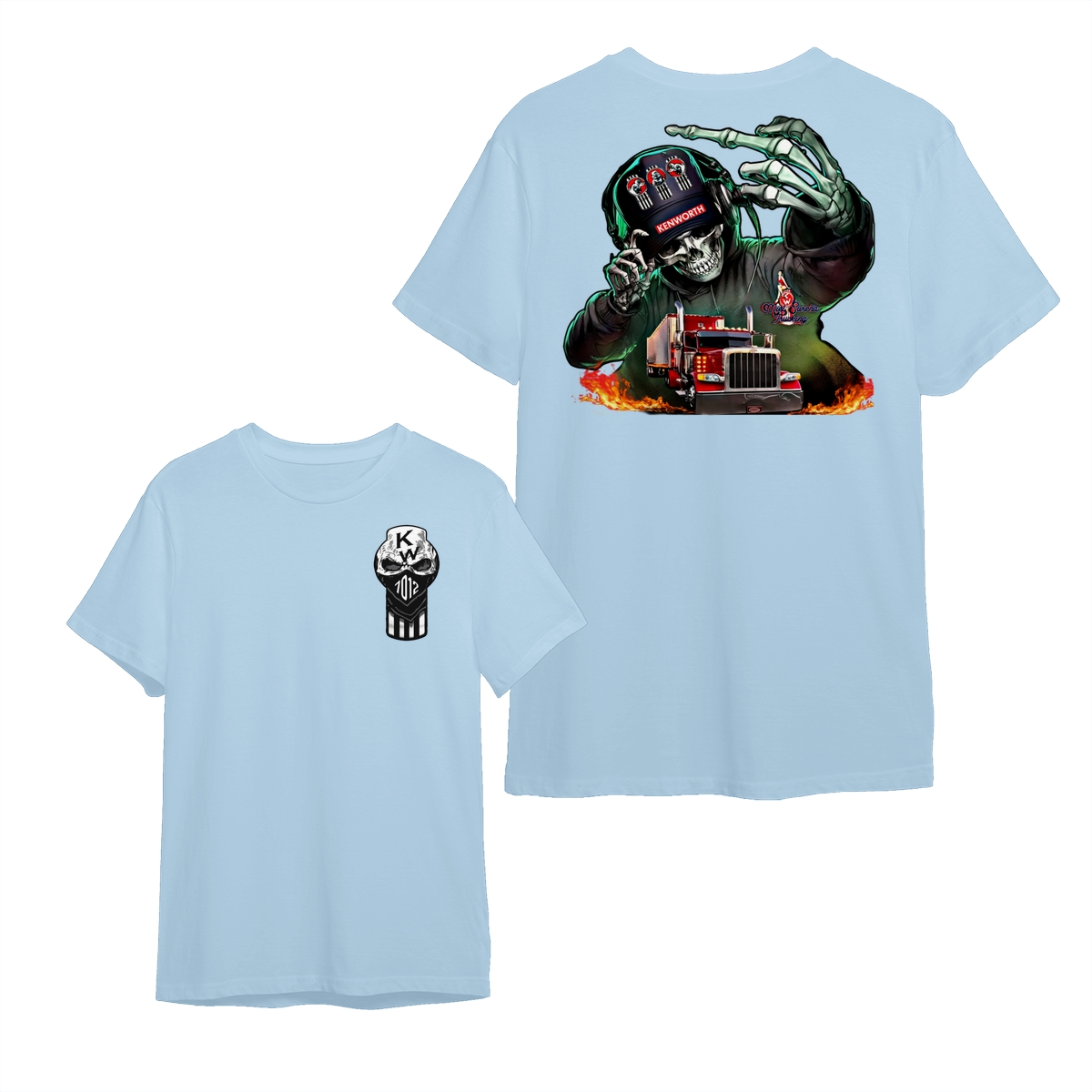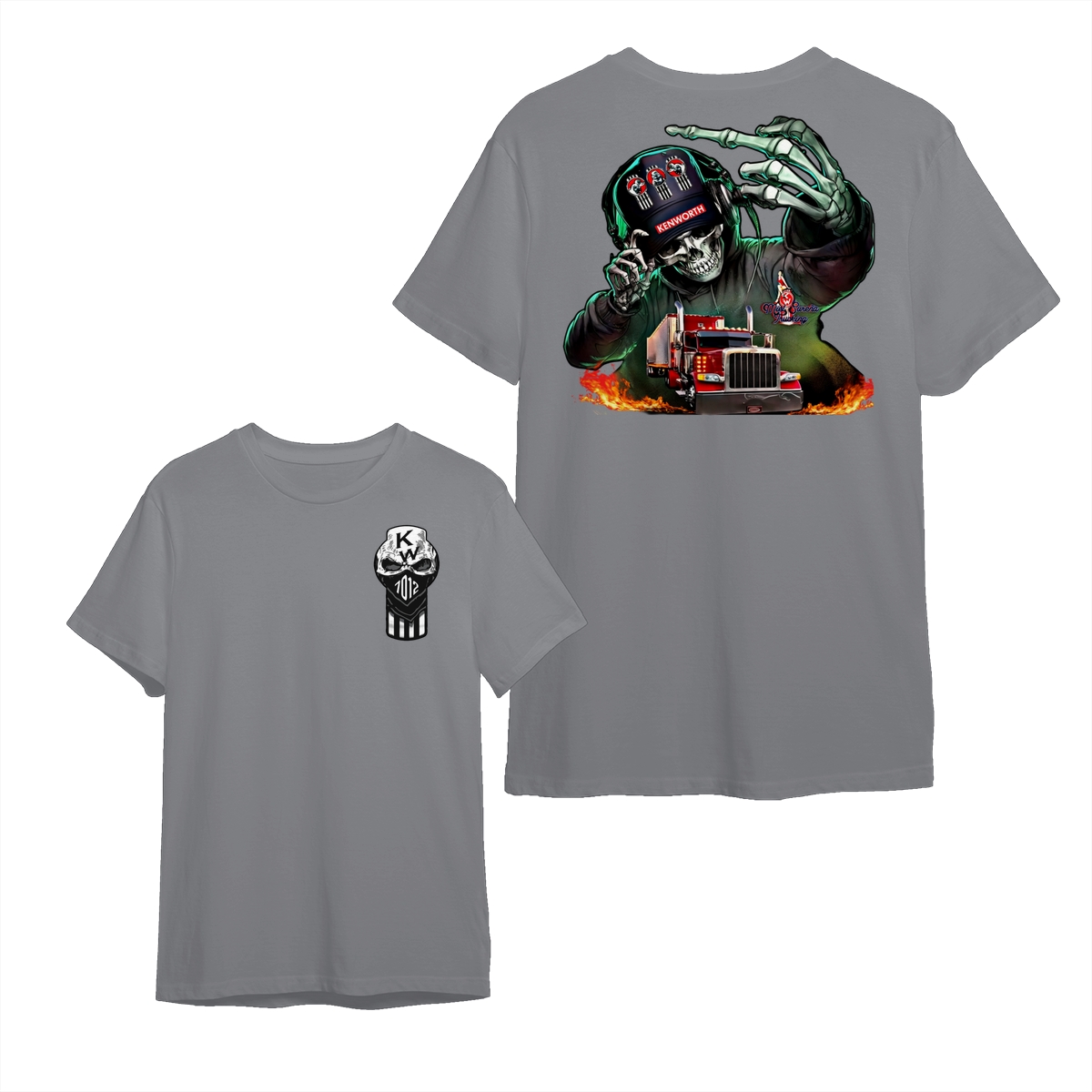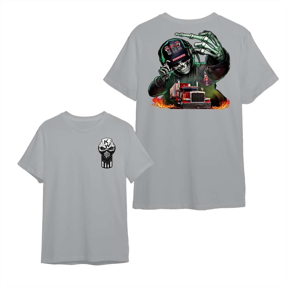 Kenworth Trucker Skull T-Shirt, Premium Cotton Unisex Tee, Flaming Rig Prints Top, Ideal for Truck Enthusiasts, Comfortable & Durable Sportswear