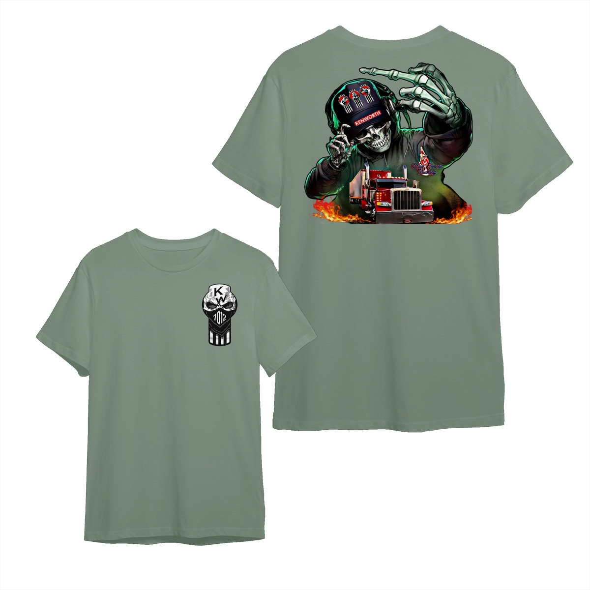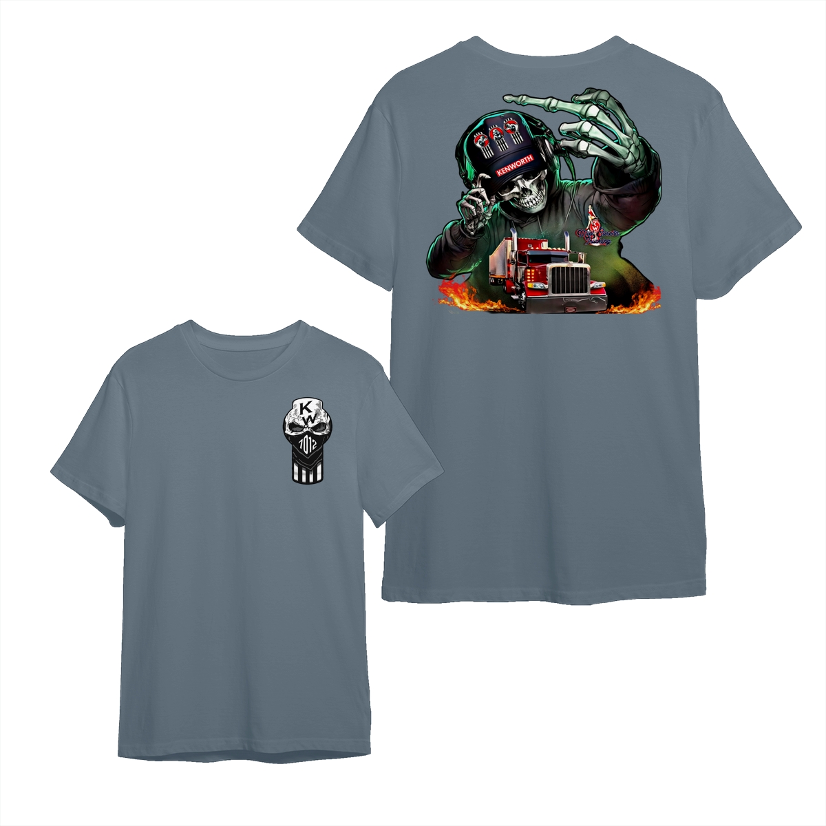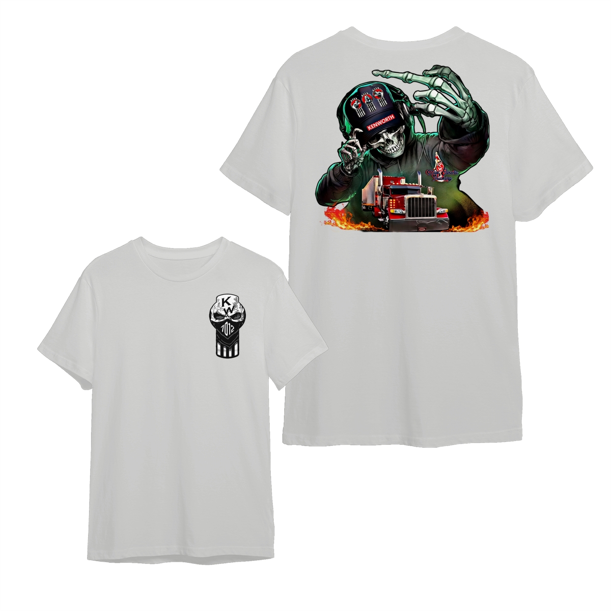 Kenworth Trucker Skull T-Shirt, Premium Cotton Unisex Tee, Flaming Rig Prints Top, Ideal for Truck Enthusiasts, Comfortable & Durable Sportswear