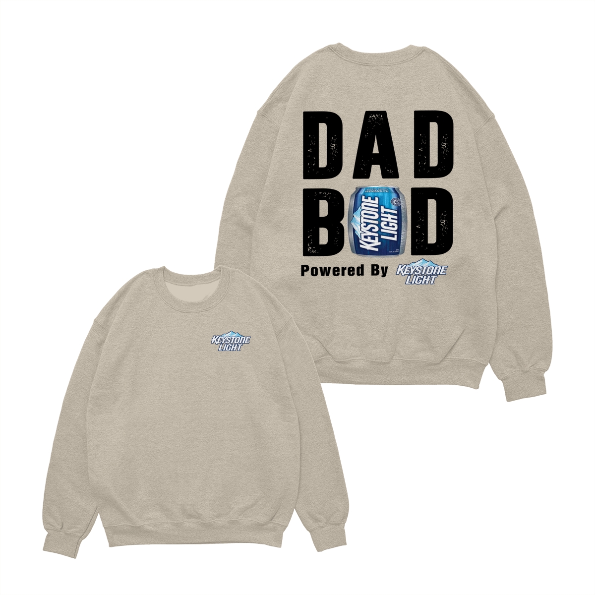 Keystone Light Graphic Sweatshirt & T-Shirt for Beer-Loving Dads, Funny ‘Dad Bod Powered by Beer’ Design, Perfect Laid-Back Gift, Casual Wear