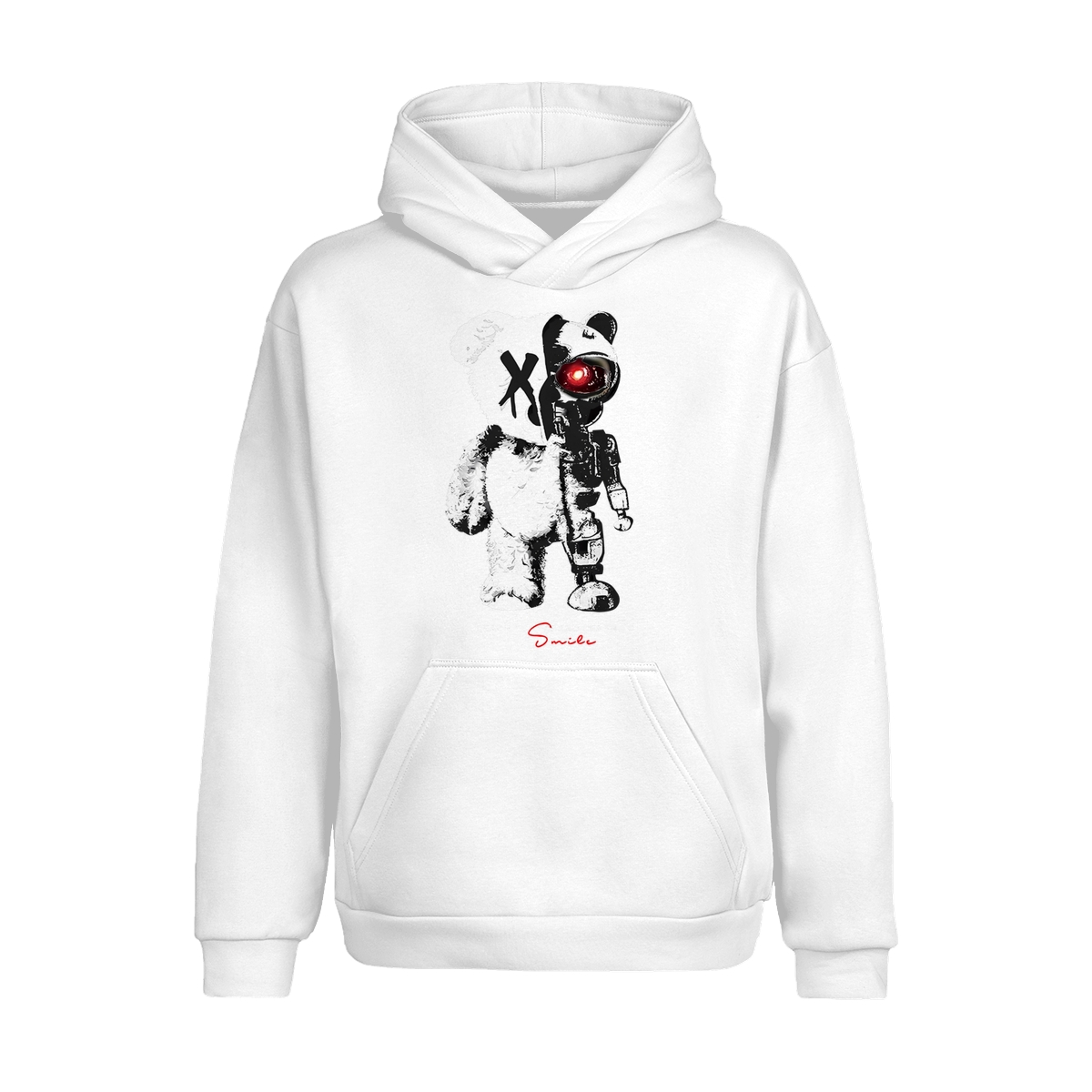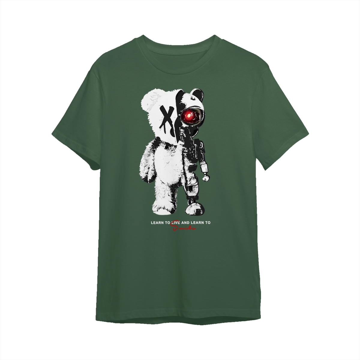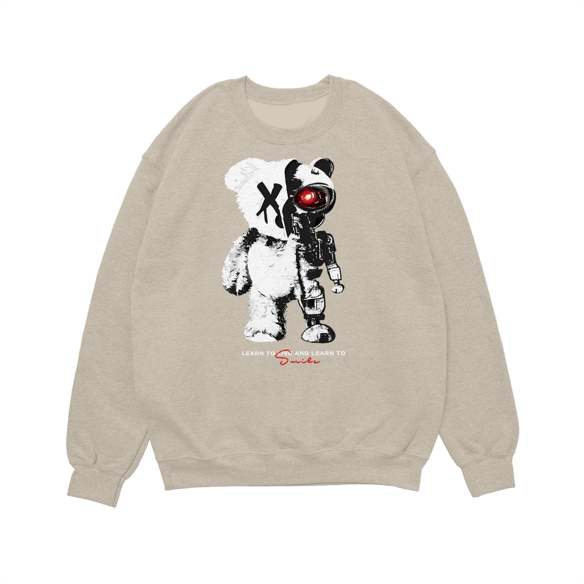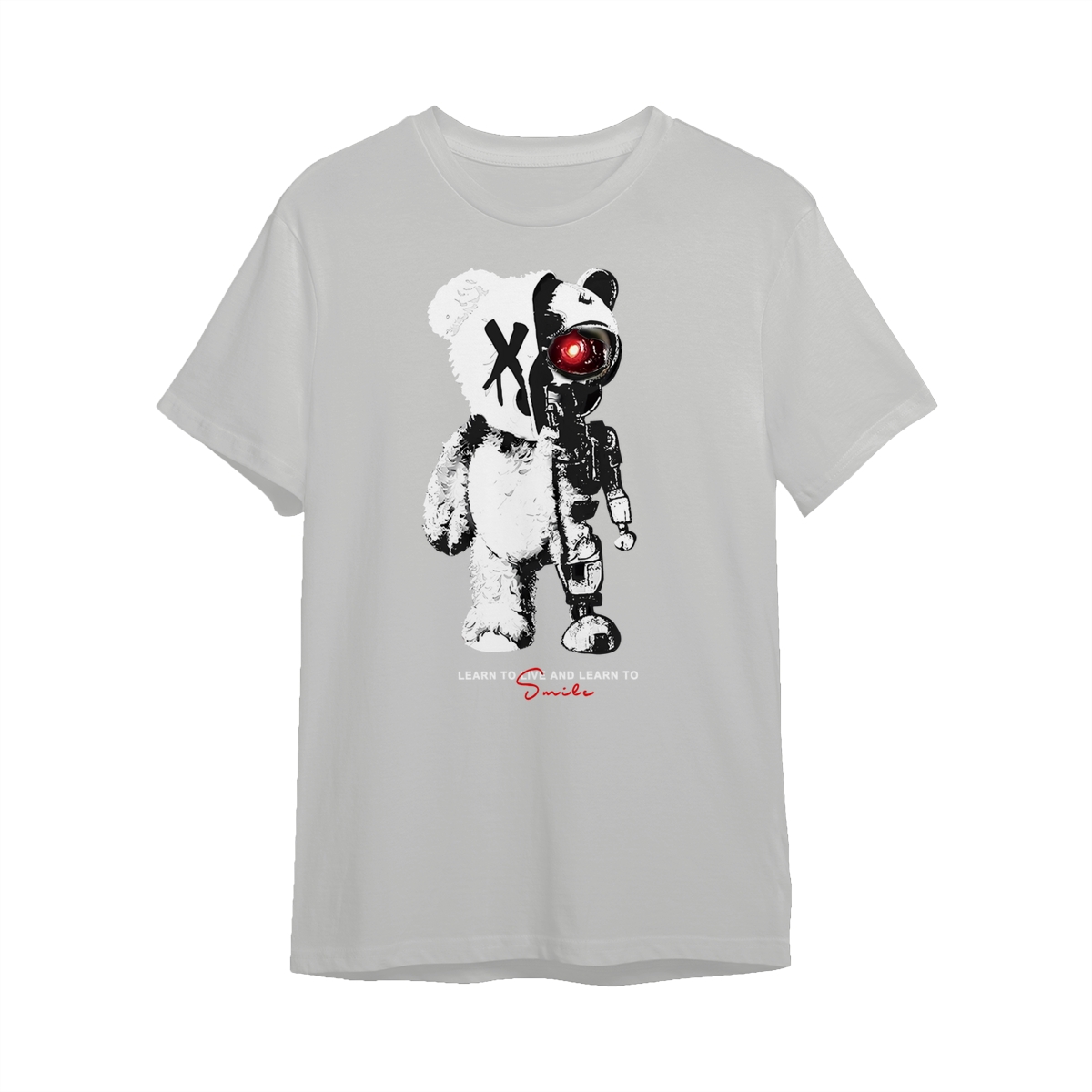 KingZlia Big Cream Tshirt, ‘Cyborg Bear’ Graphic with Red Eye, Streetwear Tee for Men’s T Shirts & Western Wear for Men