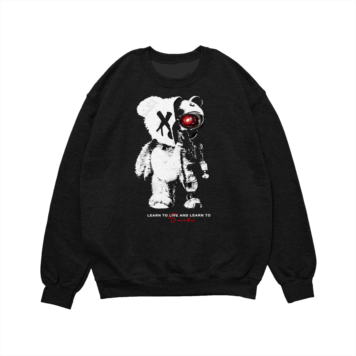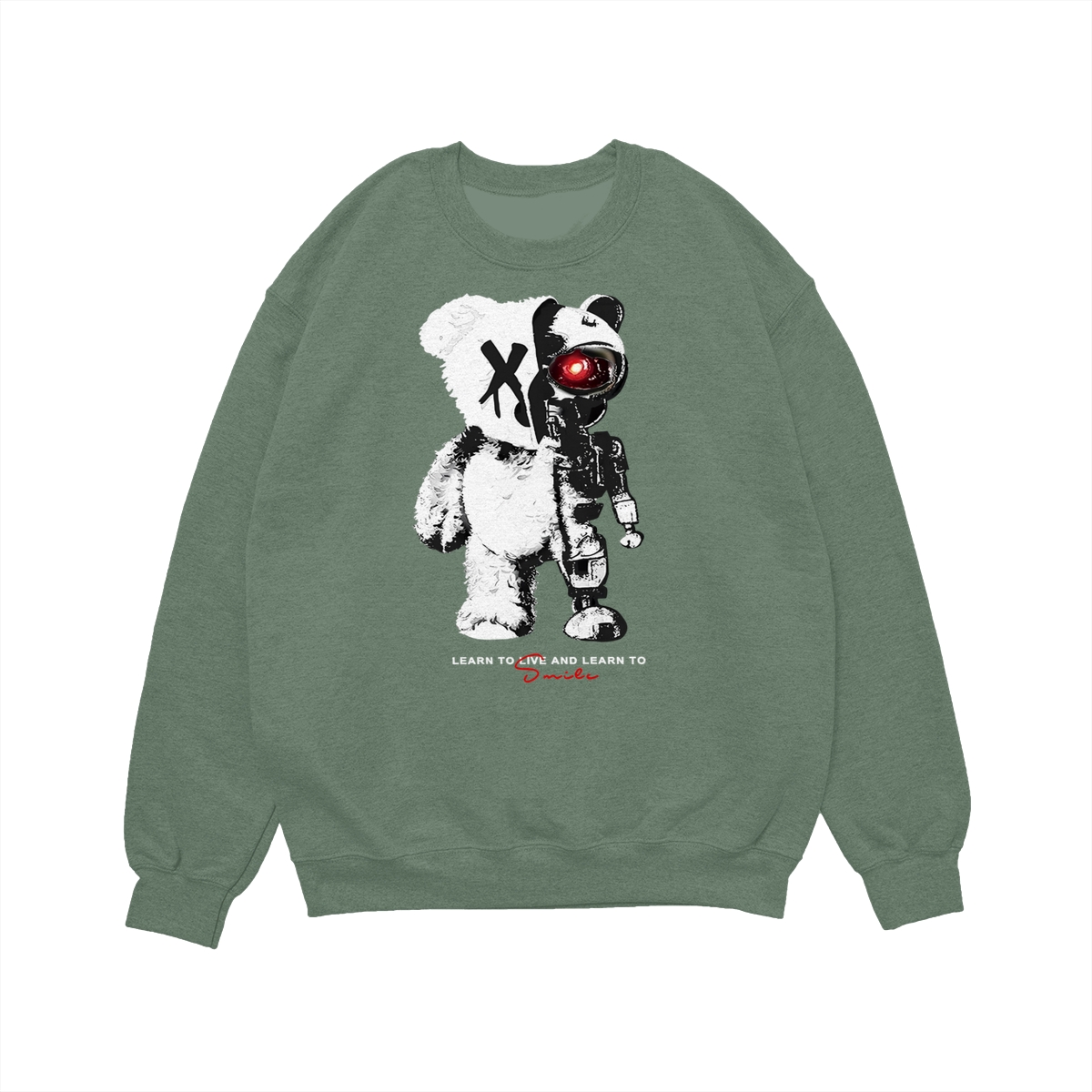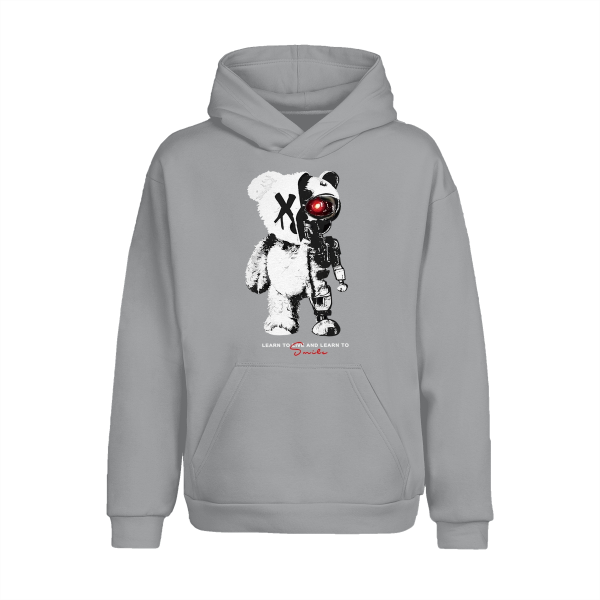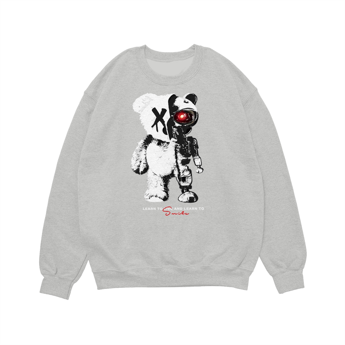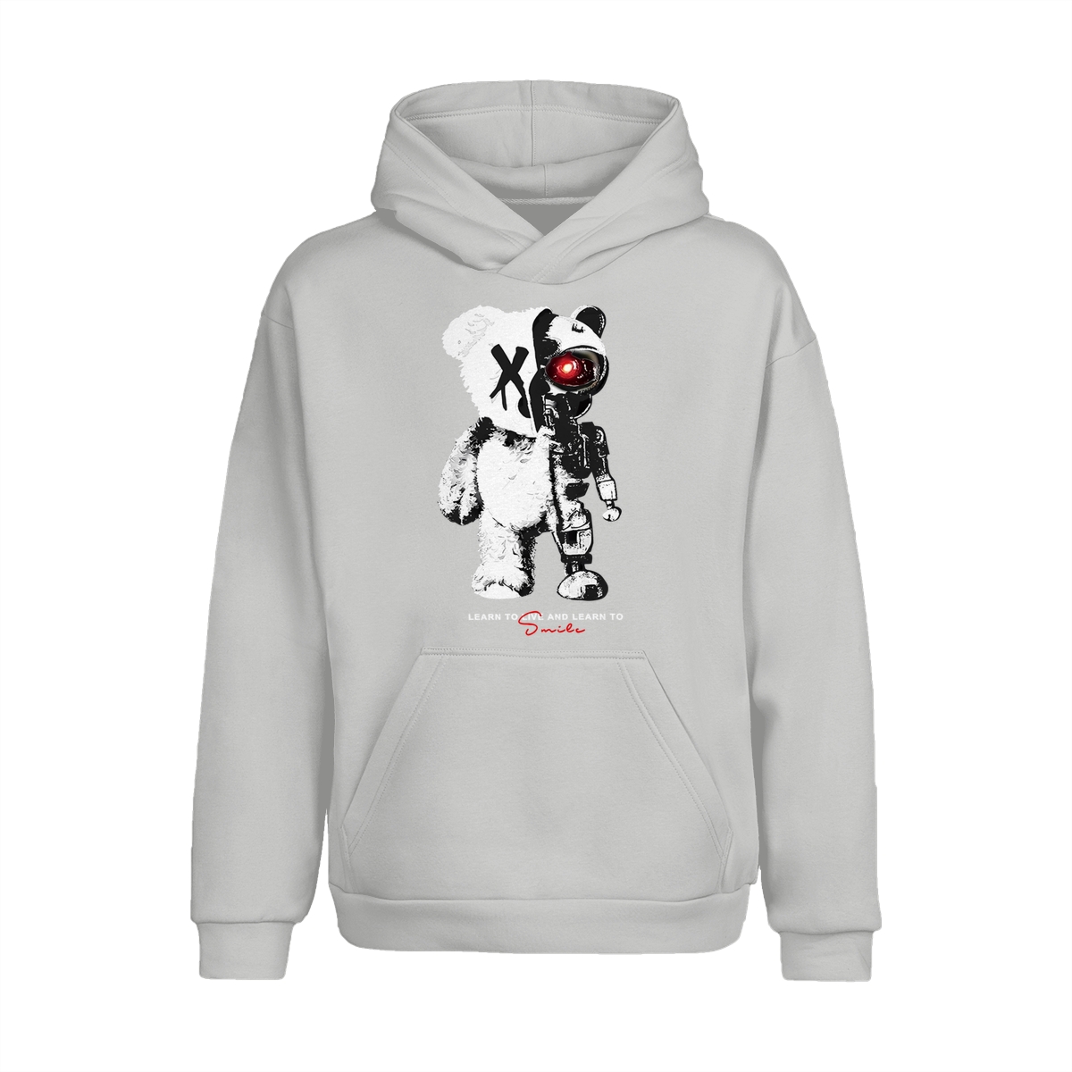 KingZlia Big Cream Tshirt, ‘Cyborg Bear’ Graphic with Red Eye, Streetwear Tee for Men’s T Shirts & Western Wear for Men