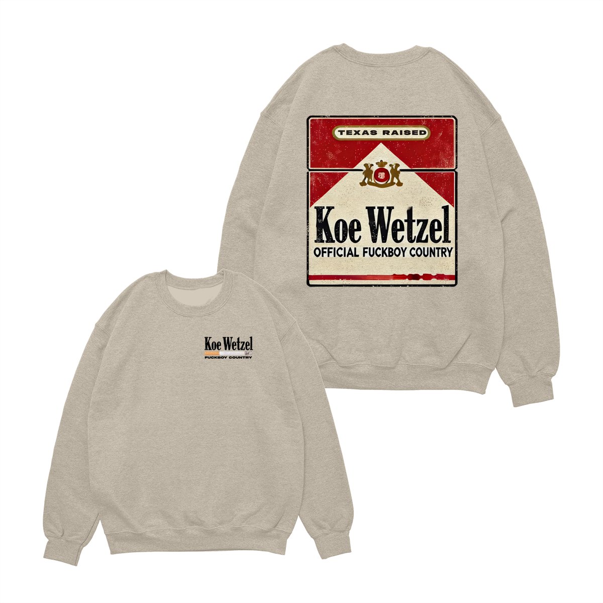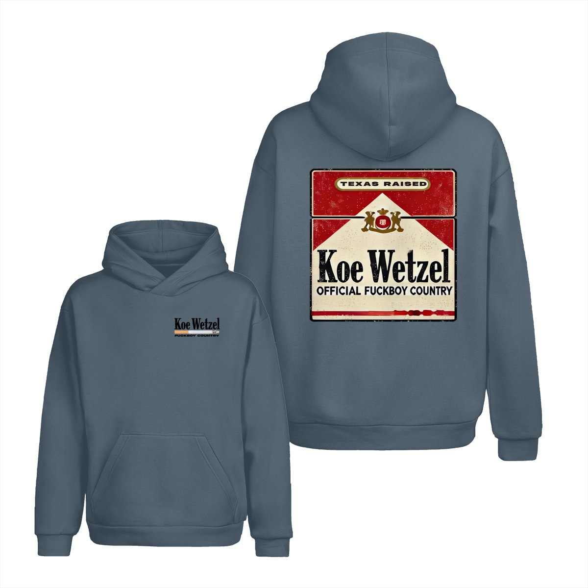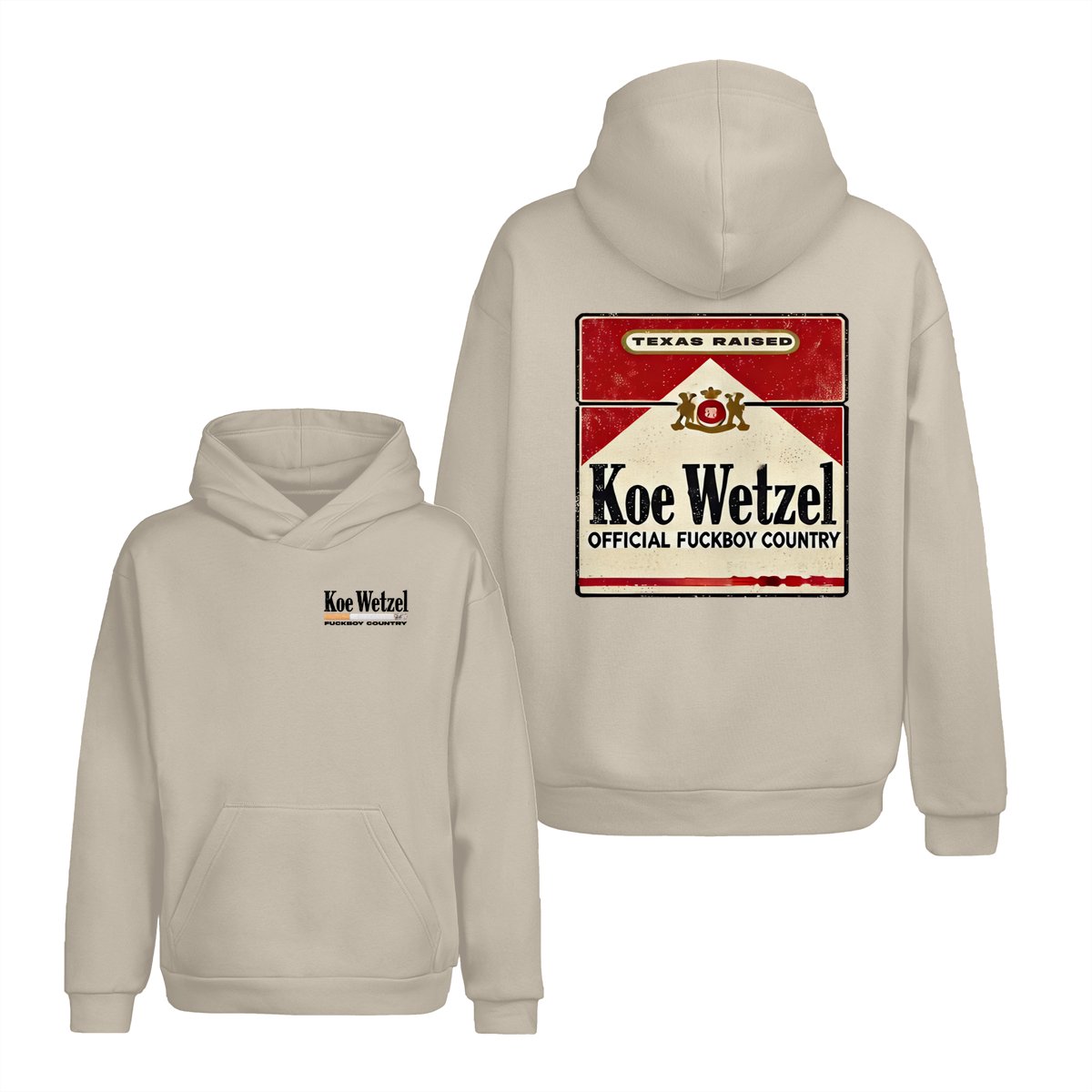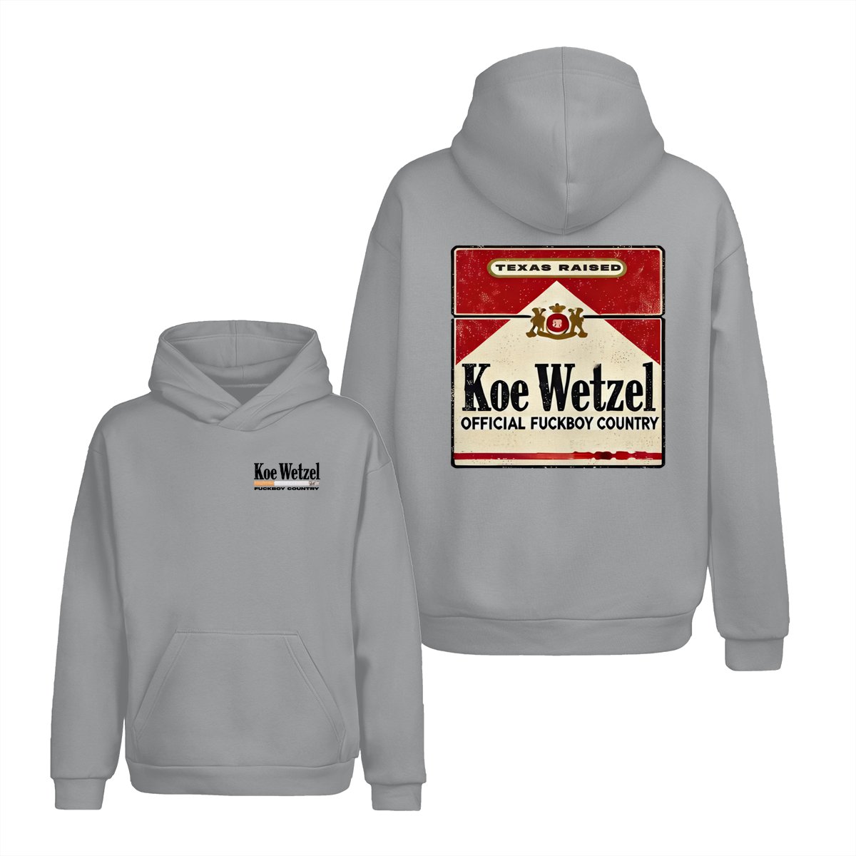 Koe Wetzel T-Shirt – Official Texas Raised Graphic with Vintage Cigarette Pack Look – Bold Rebel Tee for Country Rock Fans and Party Kings