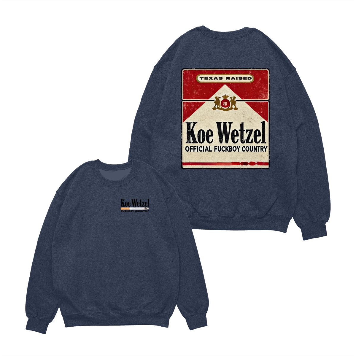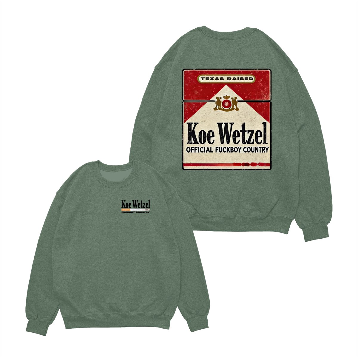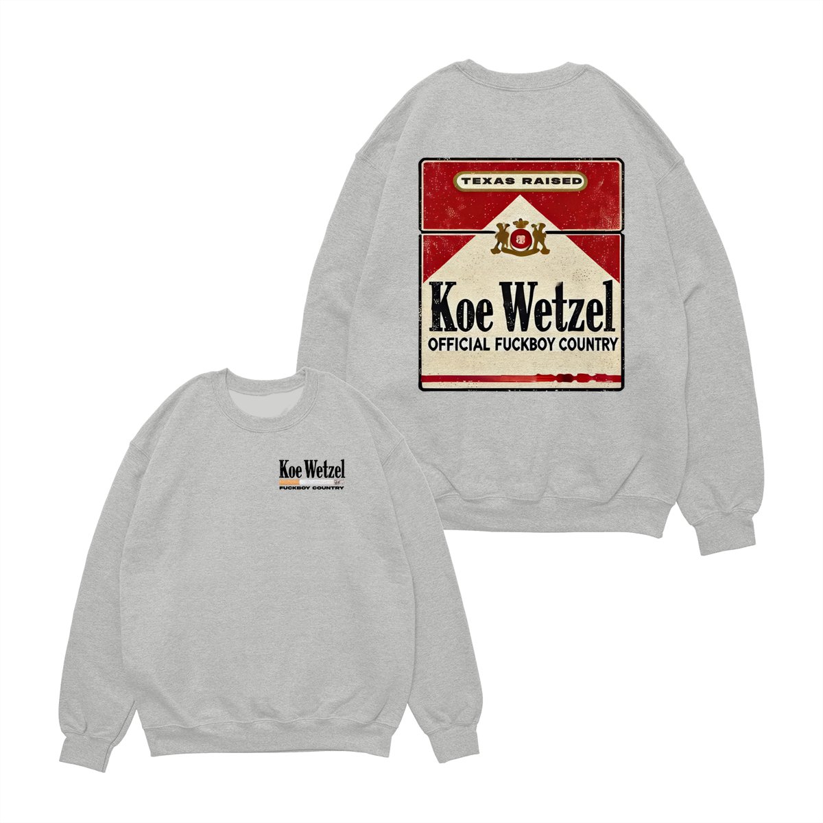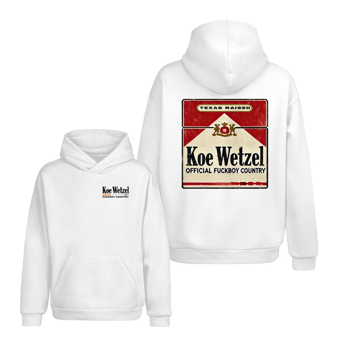 Koe Wetzel T-Shirt – Official Texas Raised Graphic with Vintage Cigarette Pack Look – Bold Rebel Tee for Country Rock Fans and Party Kings