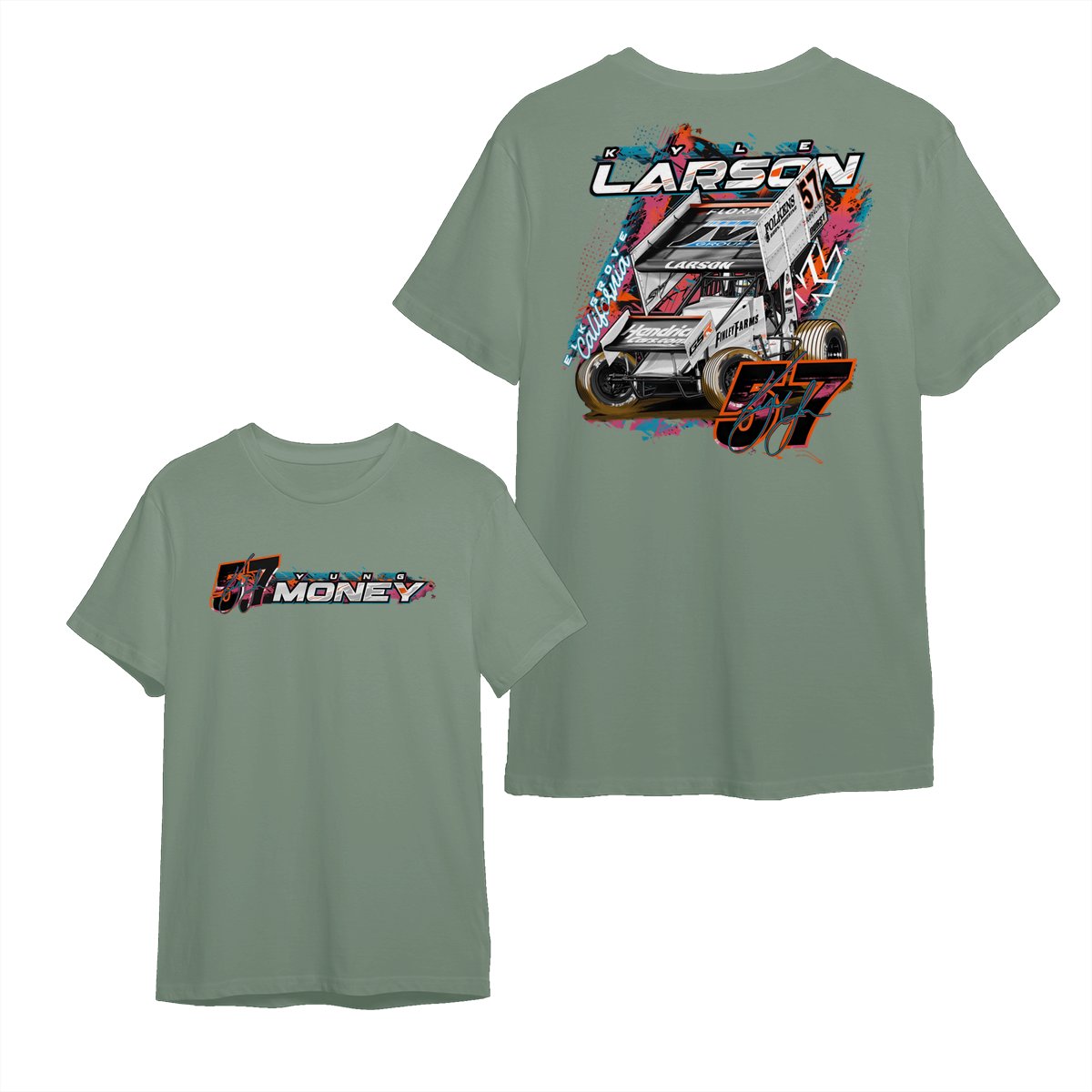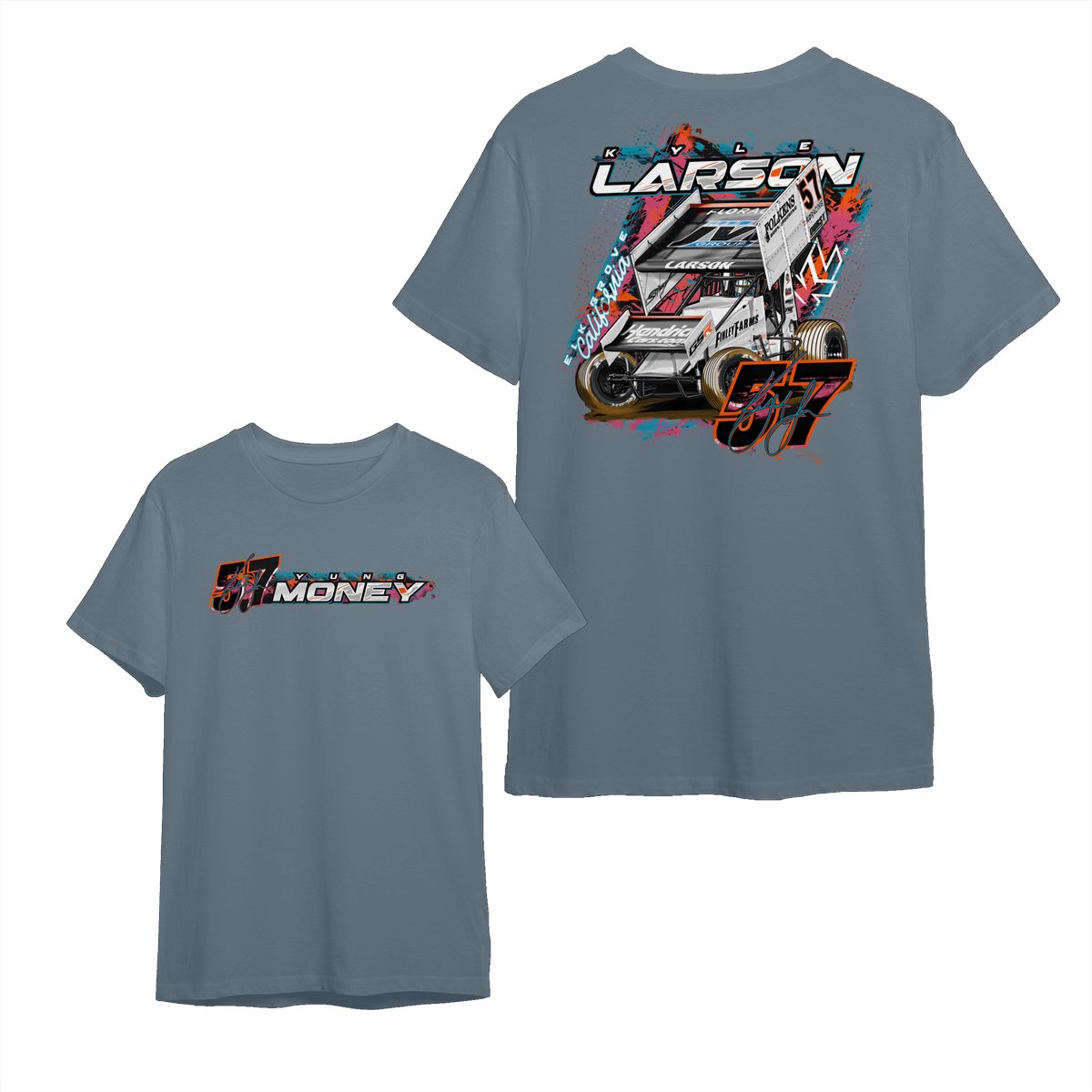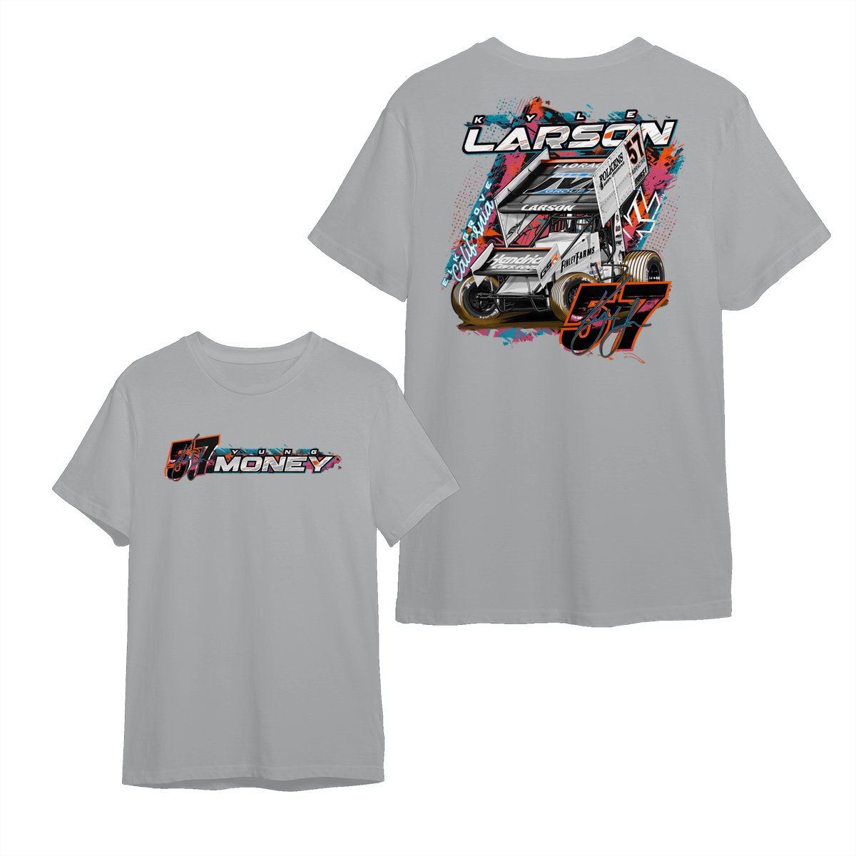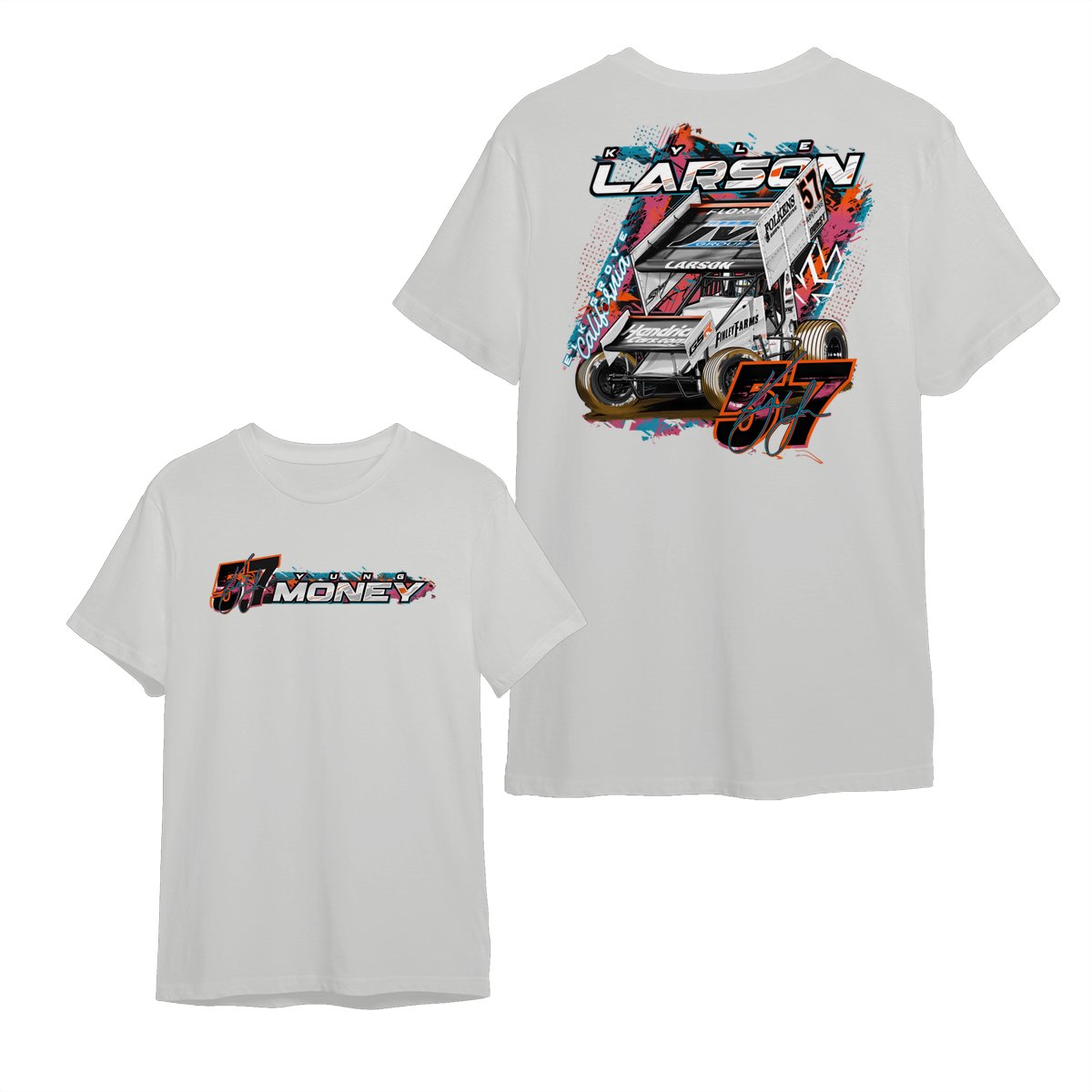 Kyle Larson 57 Dirt Track Racing T-Shirt, Front and Back Graphic Tee for Men, Sprint Car Race Fan Gift, Money Team Motorsport Apparel