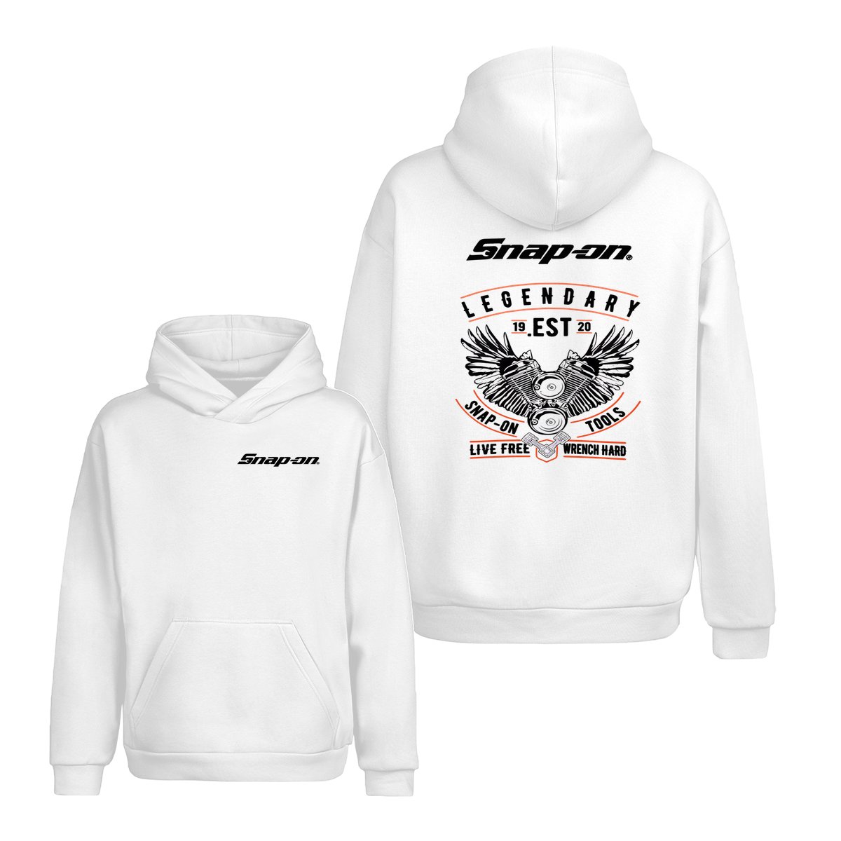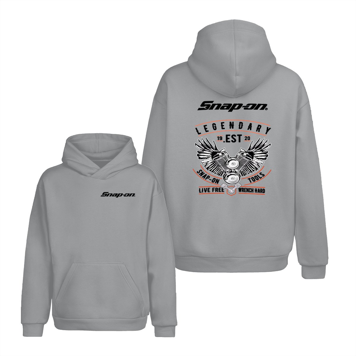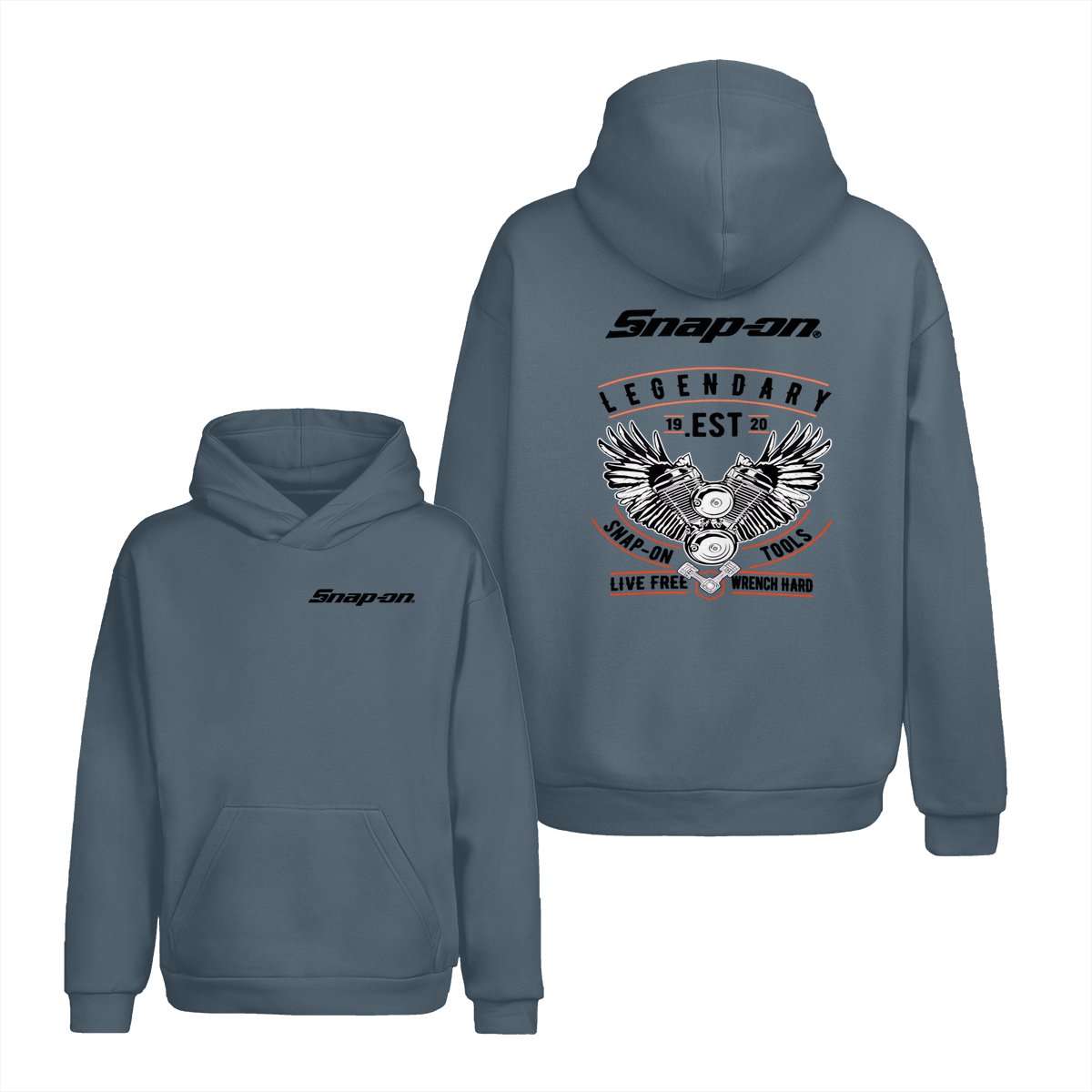 Legendary Garage Shirt – Snap-On Inspired Design with V-Twin Engine and Industrial Heritage, Great for Blue Collar Pride, Unisex Hoodie – Bold Mechanical Style