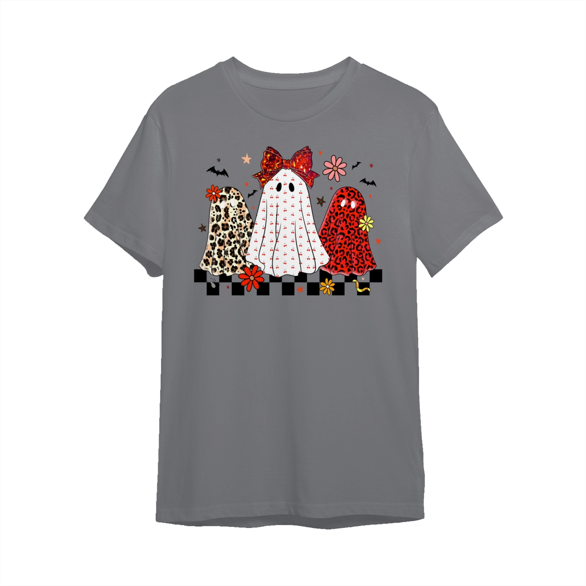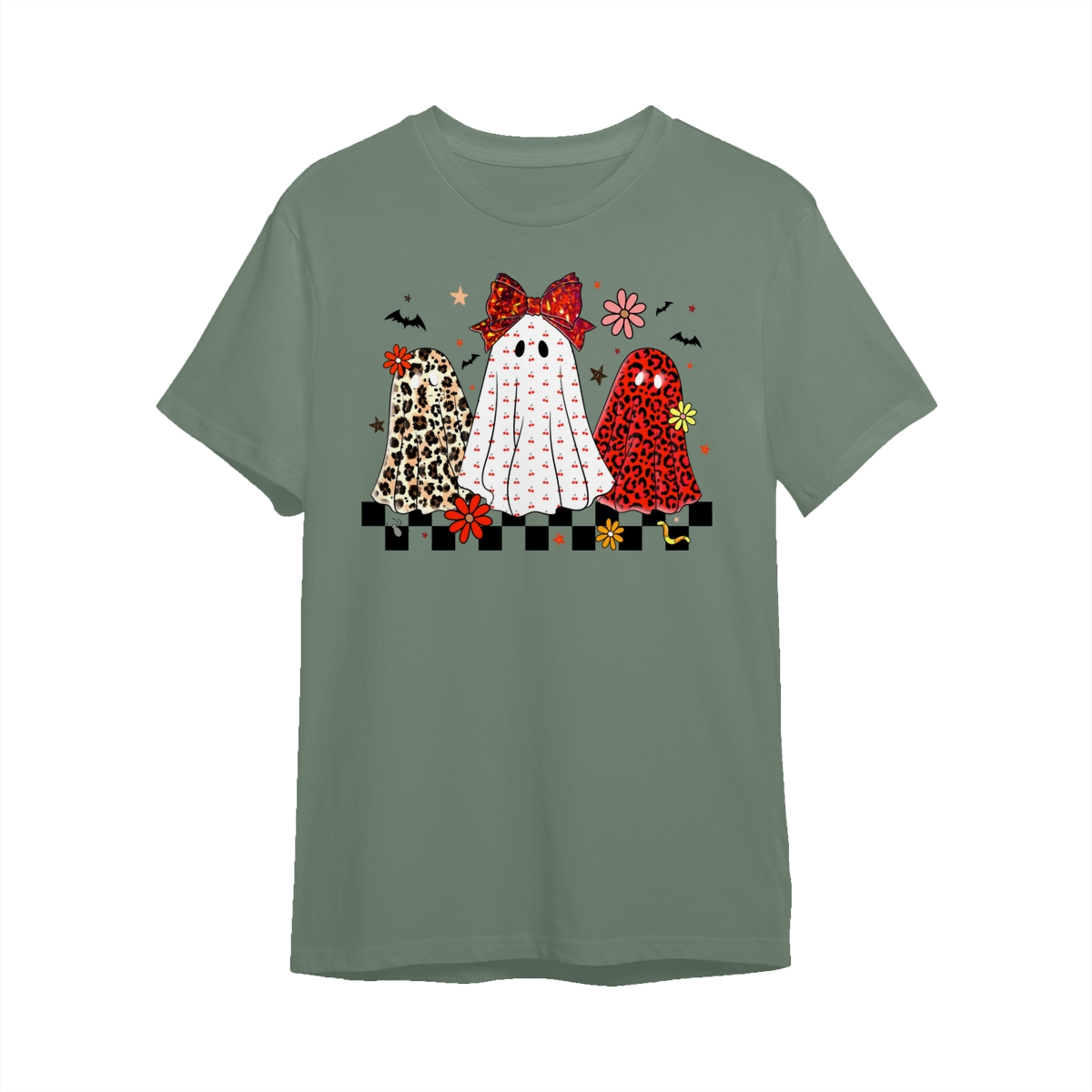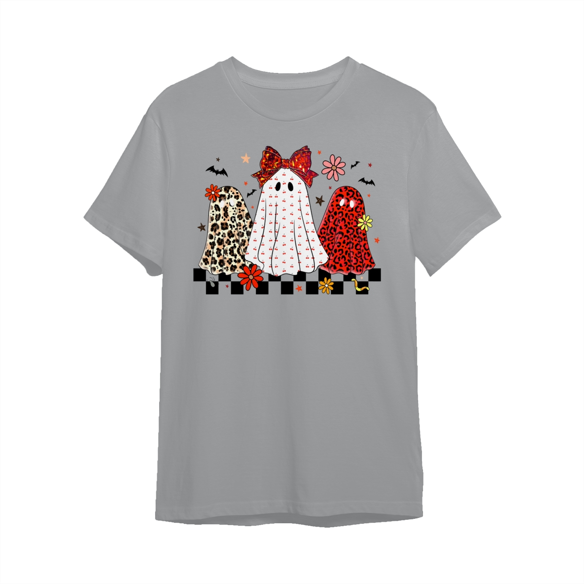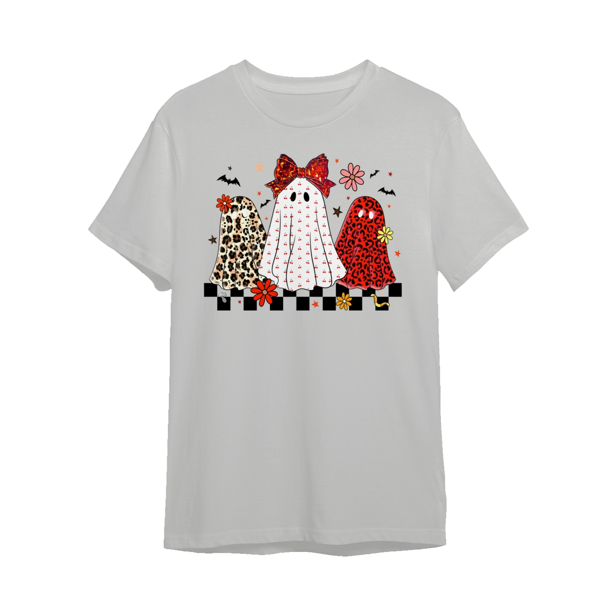 Leopard Checker Spooky T-Shirt, Cute Boo Ghost Coquette Tee, Red Ghost Bow Floral Shirt, Checkered Spooky Season Apprel, Gift For Her