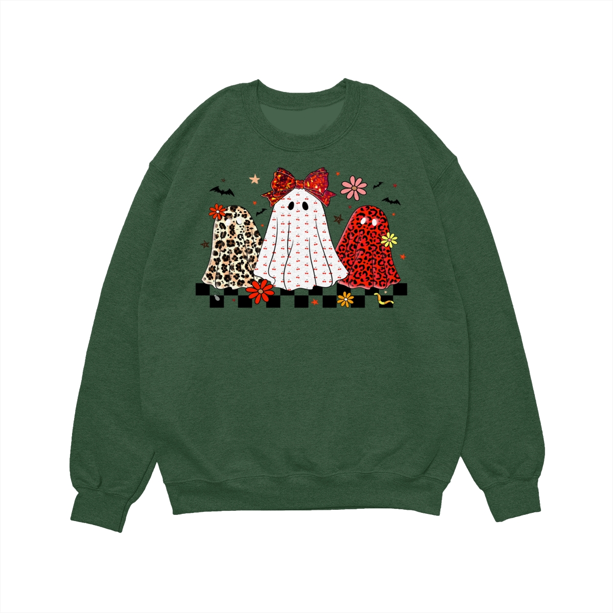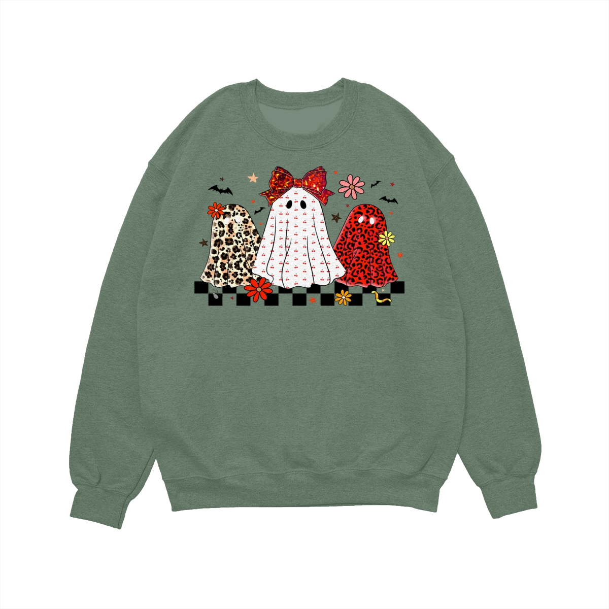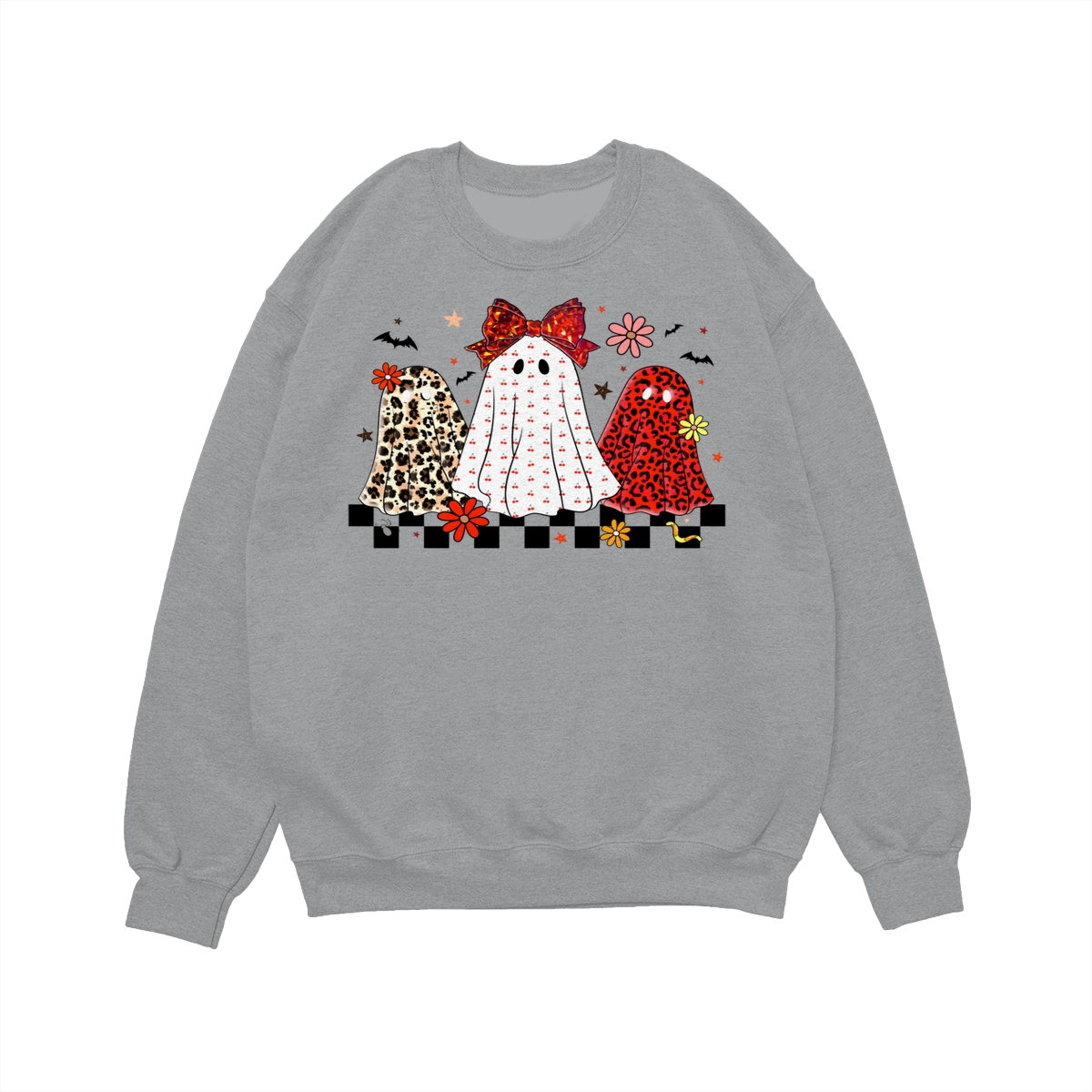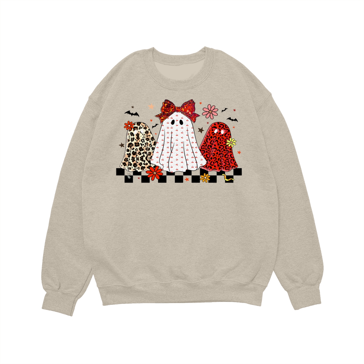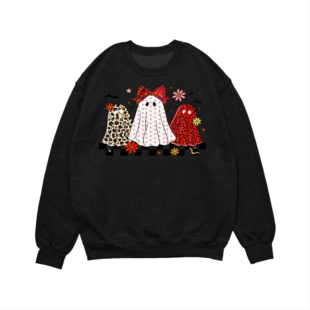 Leopard Checker Spooky T-Shirt, Cute Boo Ghost Coquette Tee, Red Ghost Bow Floral Shirt, Checkered Spooky Season Apprel, Gift For Her