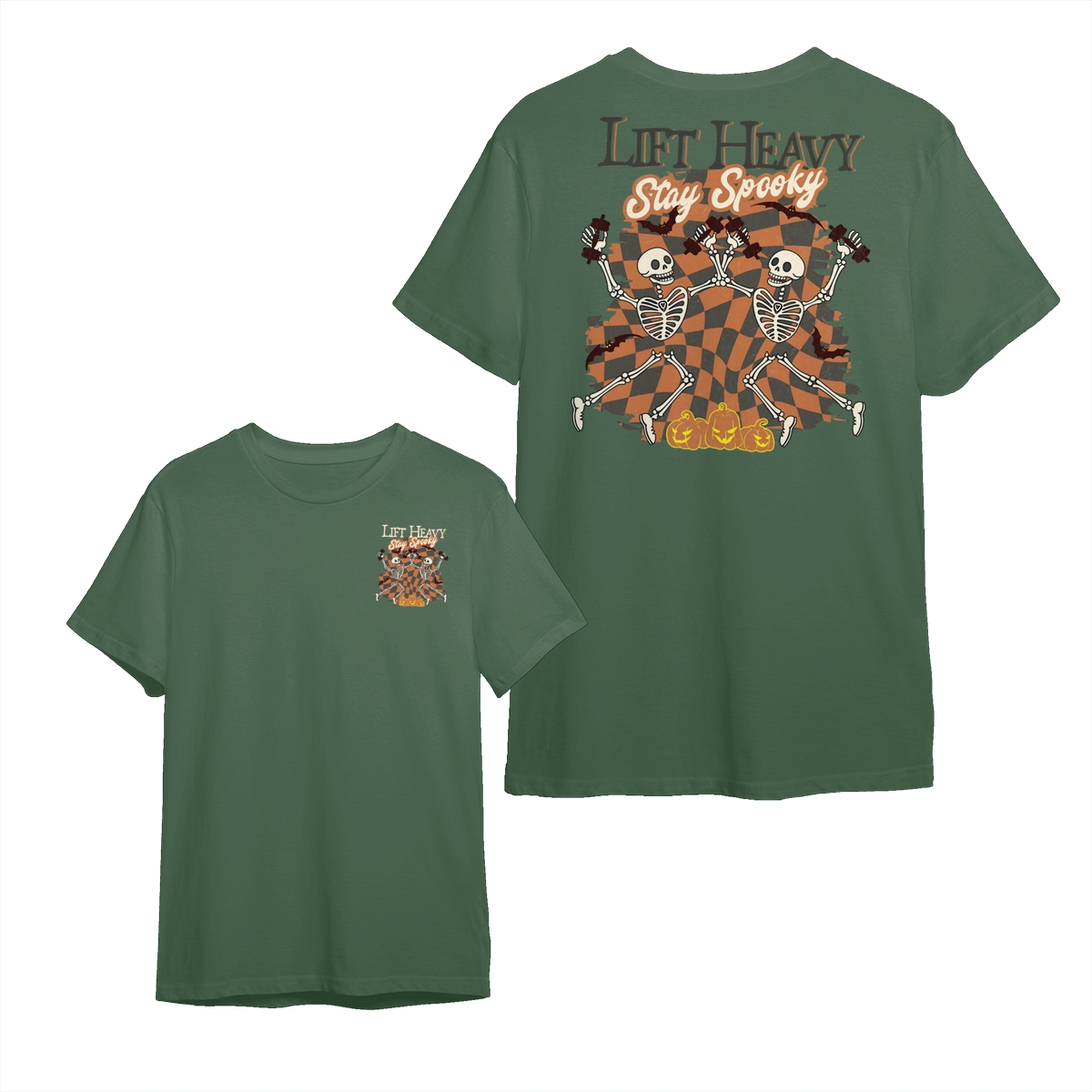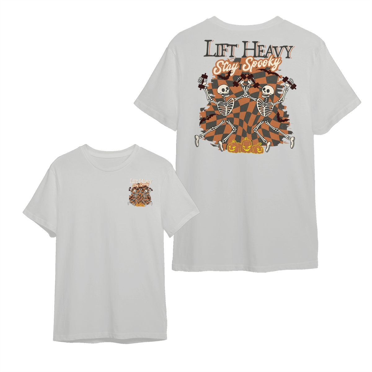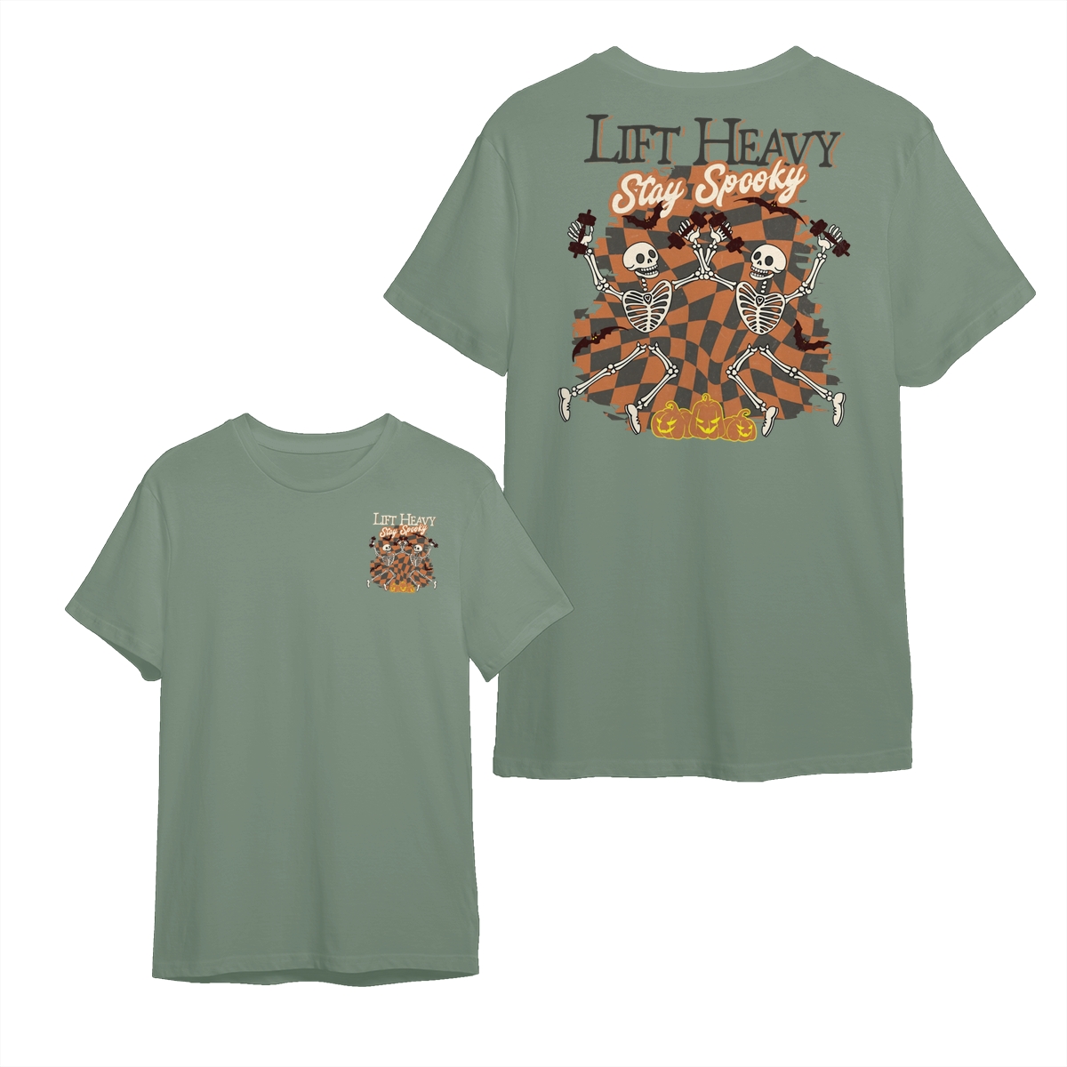 LIFT HEAVY STAY SPOOKY printed Gym Shirt T-Shirt, Gym Shirt, Cute Halloween Sweatshirt, Spooky Gym Ghost, Gym Shirt, Graphic Gym Shirt, Vintage Washed Tee Conton, Gym Shirt Women, For Men, Ful Size
