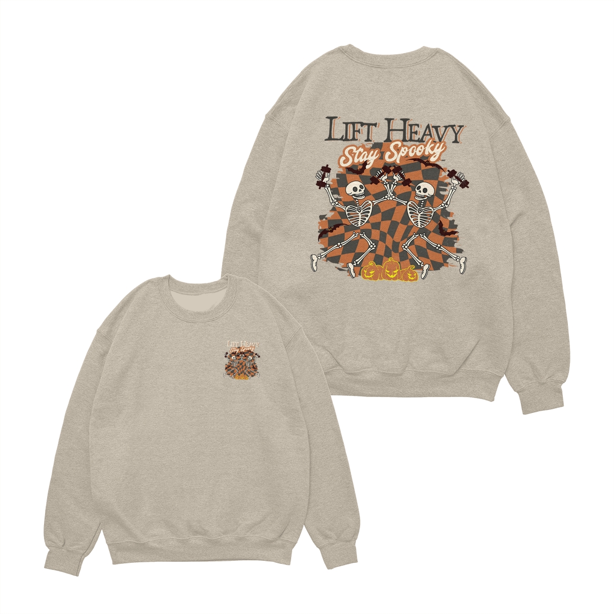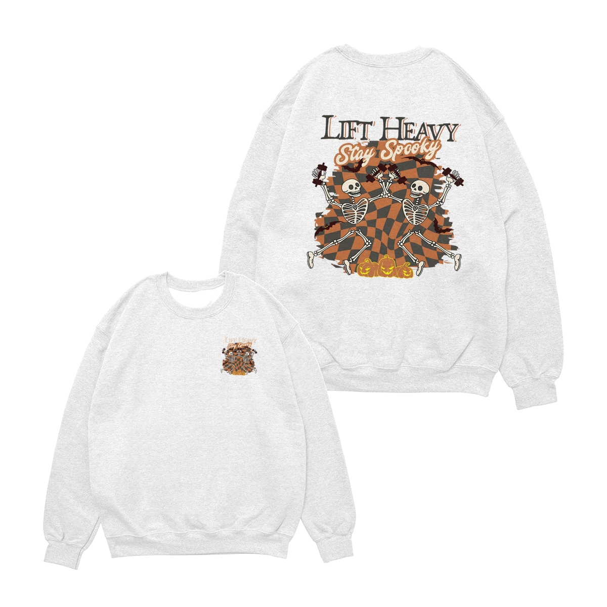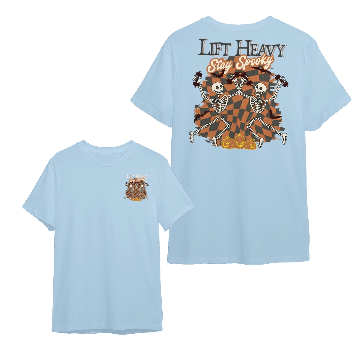 LIFT HEAVY STAY SPOOKY printed Gym Shirt T-Shirt, Gym Shirt, Cute Halloween Sweatshirt, Spooky Gym Ghost, Gym Shirt, Graphic Gym Shirt, Vintage Washed Tee Conton, Gym Shirt Women, For Men, Ful Size